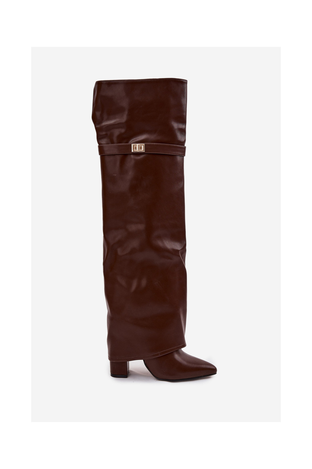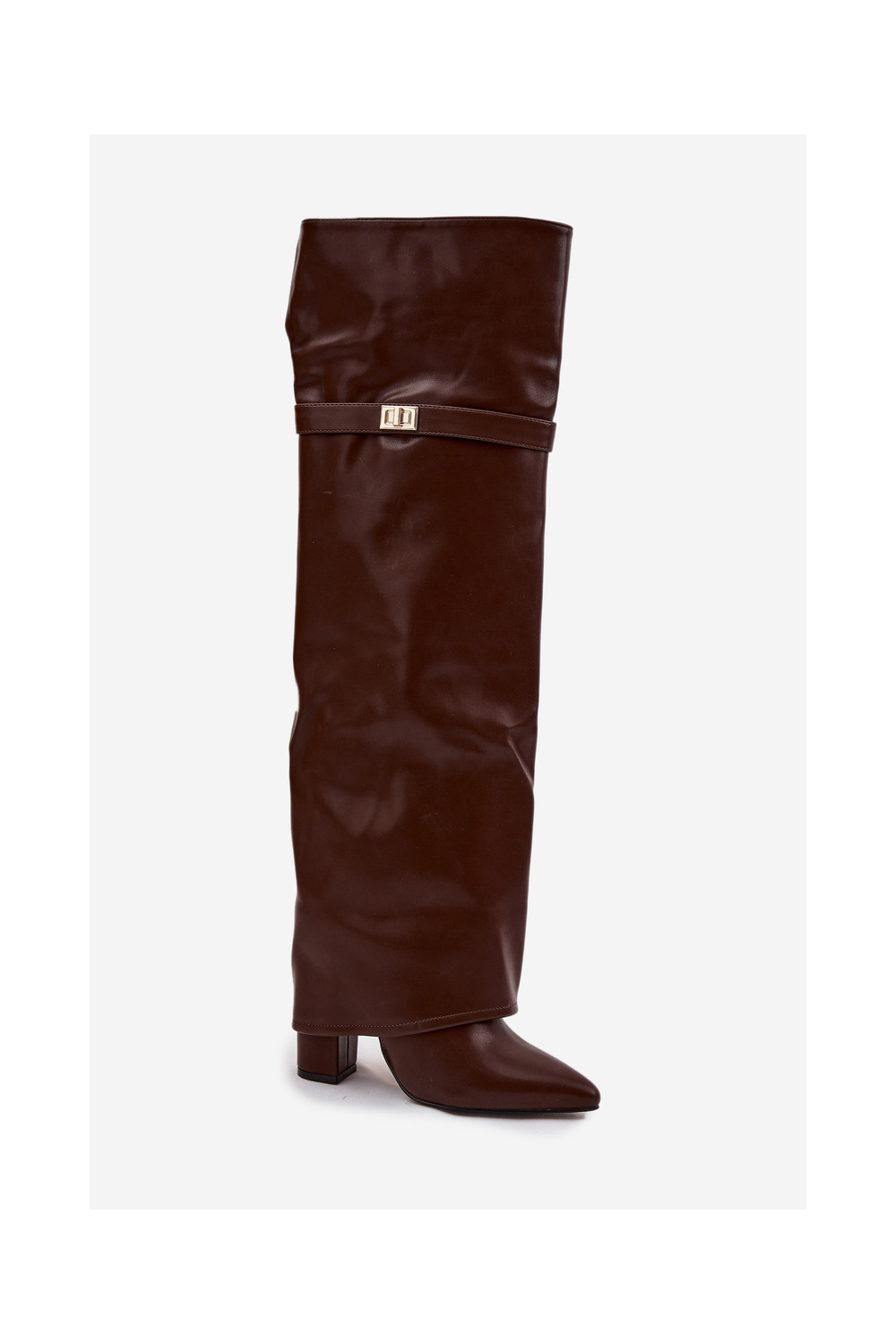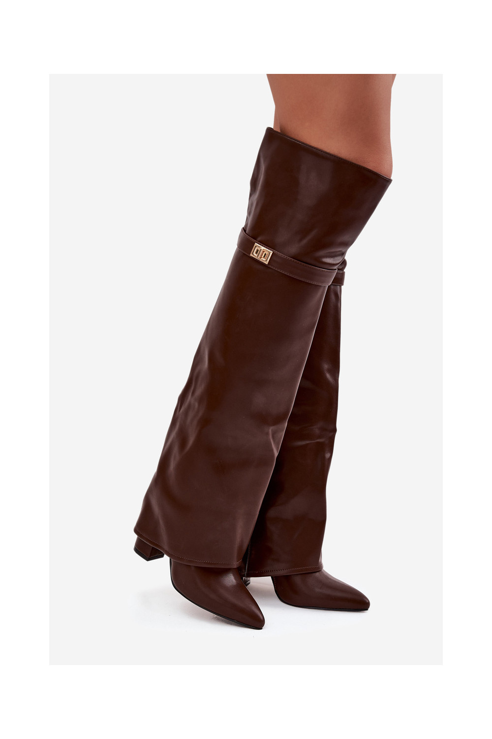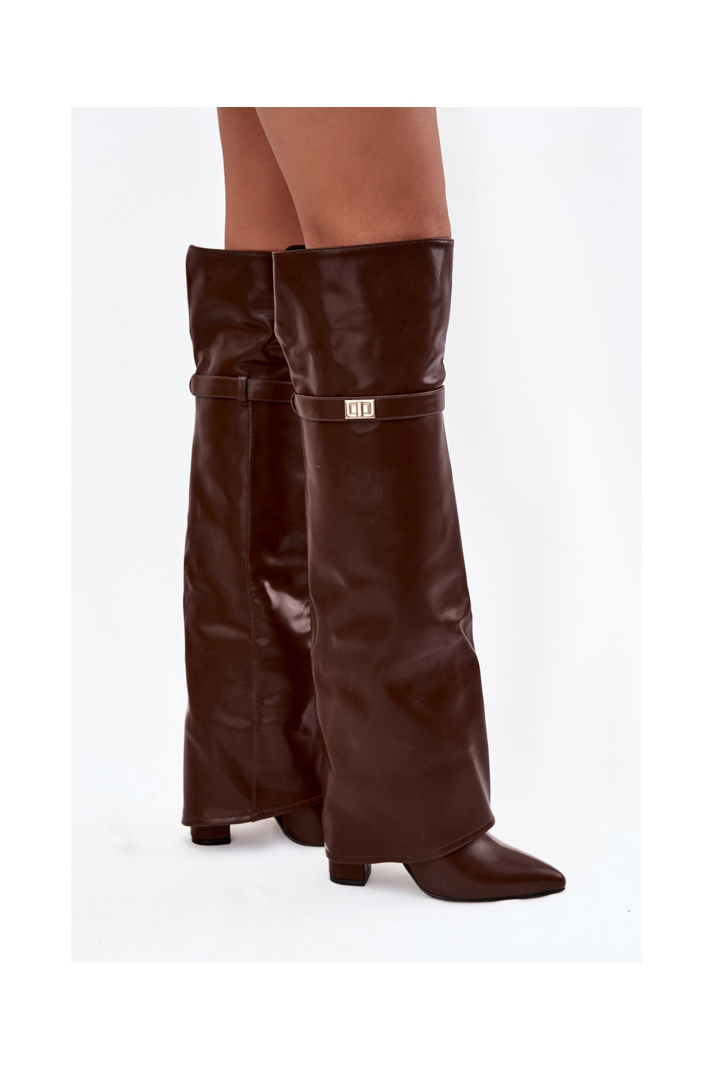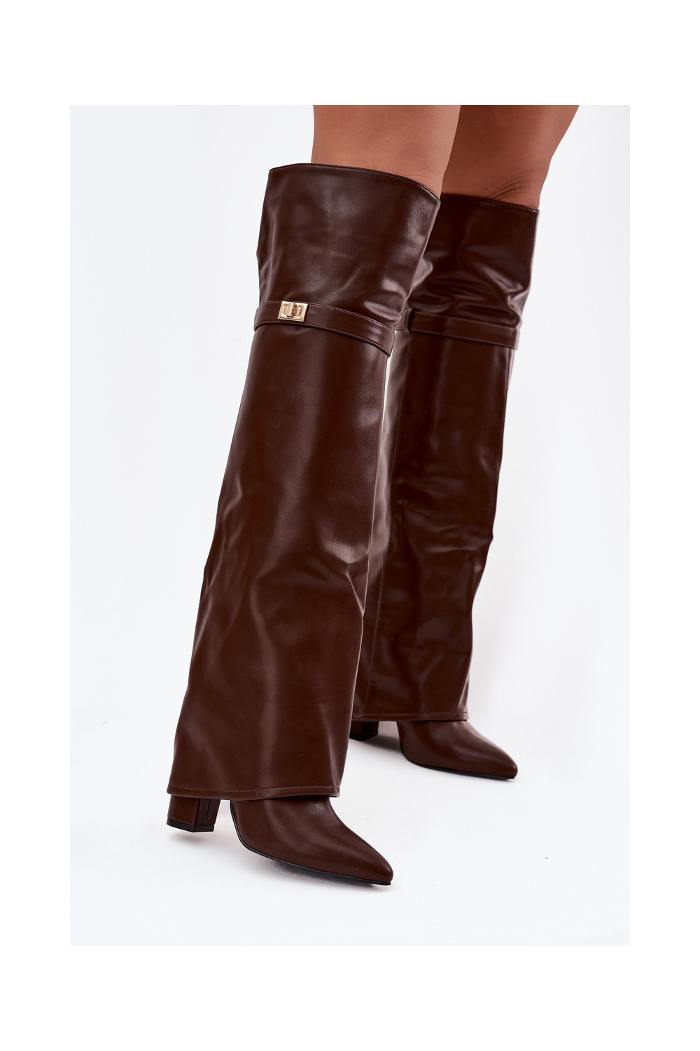 zateplené dlouhé boty Z Wywiniętą Cholewką nad kolena Obcas Słupek hnědá Serelle