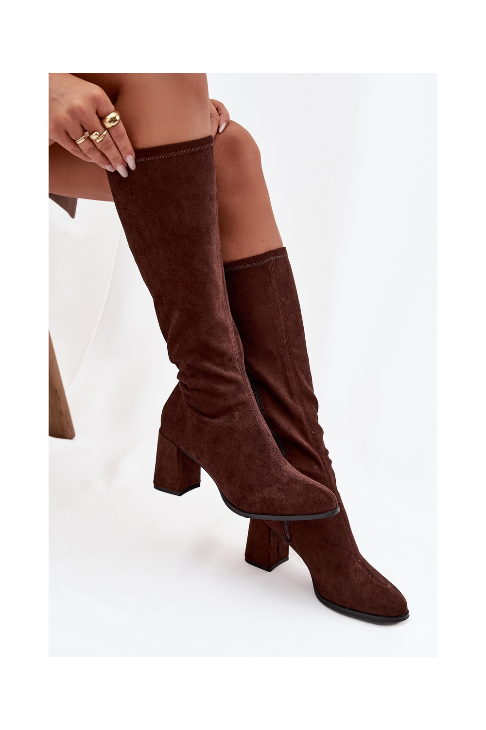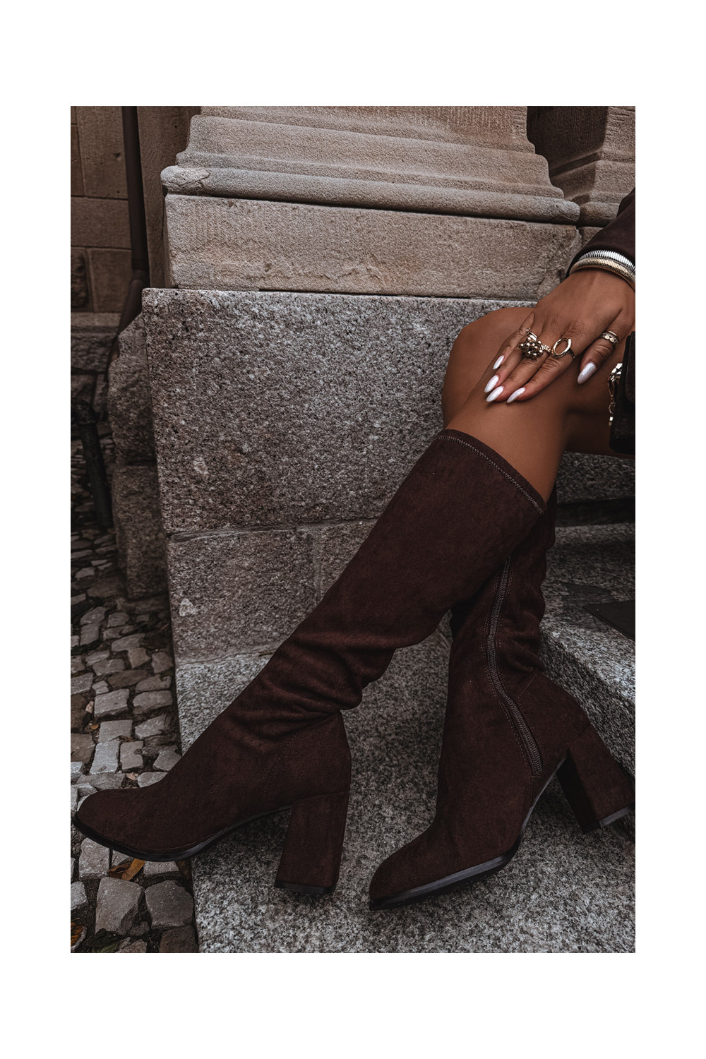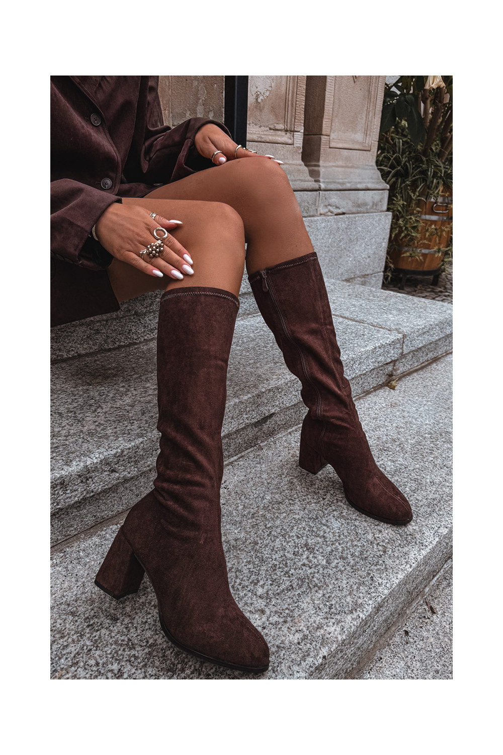 dámské dlouhé boty s podpatky Z z eko semišeu Czekoladowe Yelisse