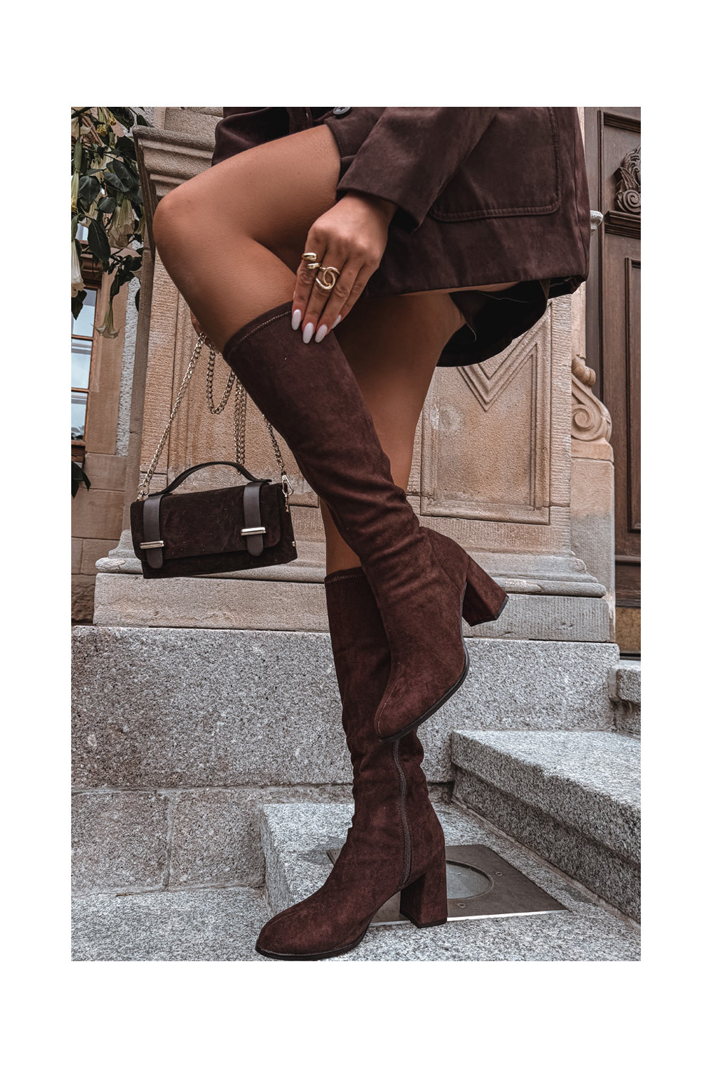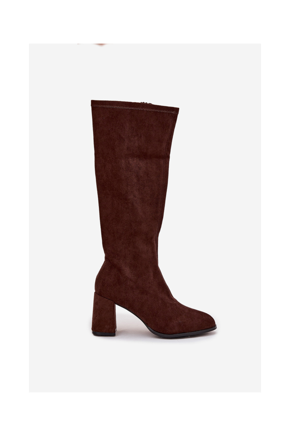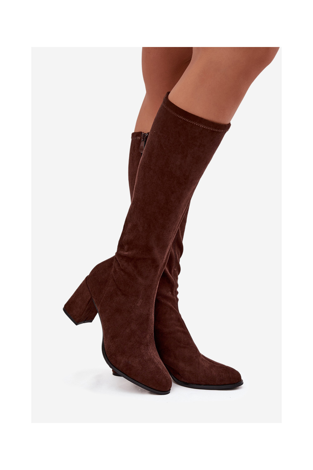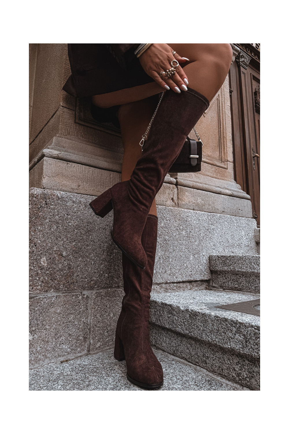 dámské dlouhé boty s podpatky Z z eko semišeu Czekoladowe Yelisse