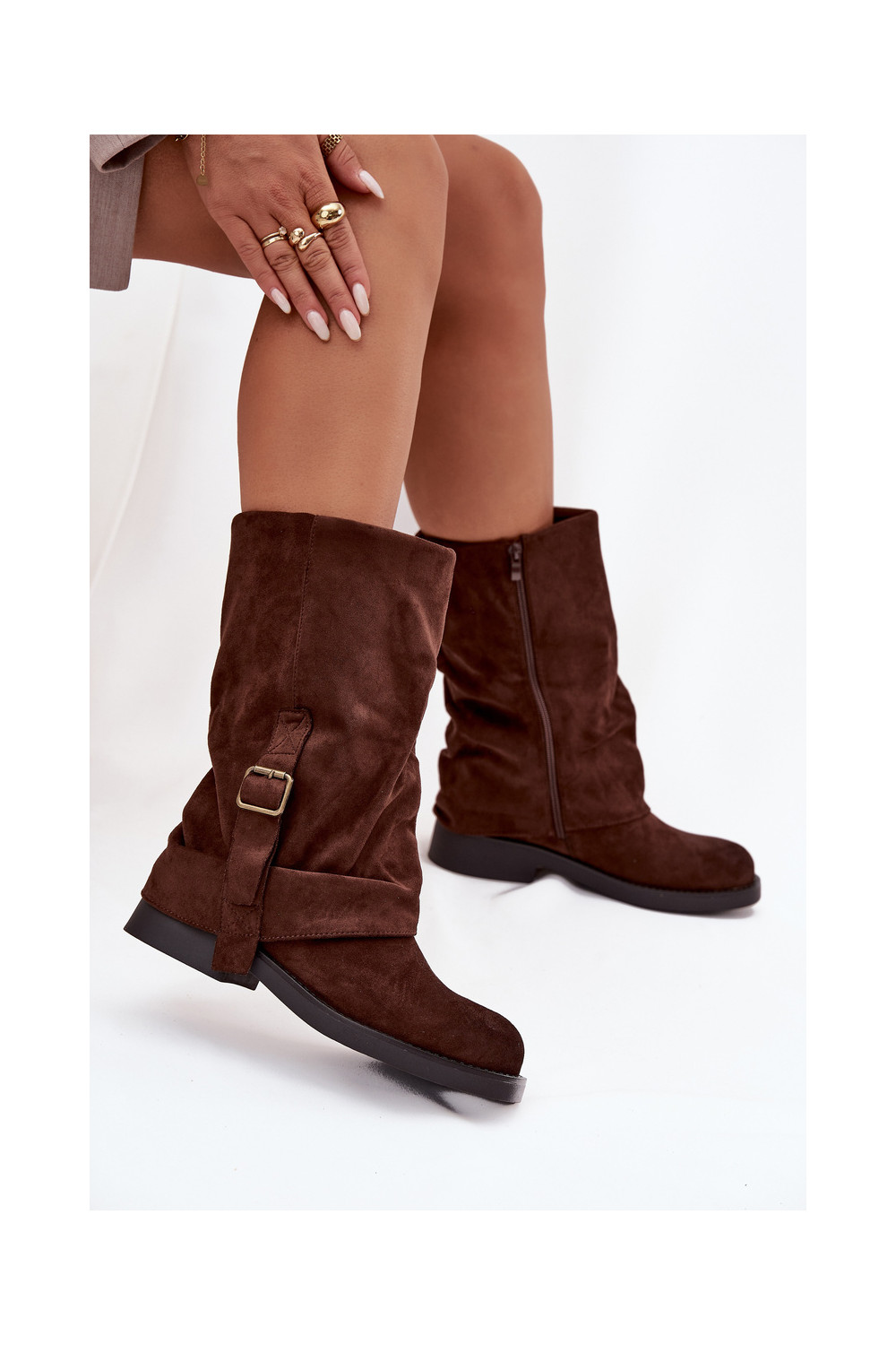 dámské dlouhé boty Z Wywiniętą Cholewką  s přezkami Czekoladowe Minelle
