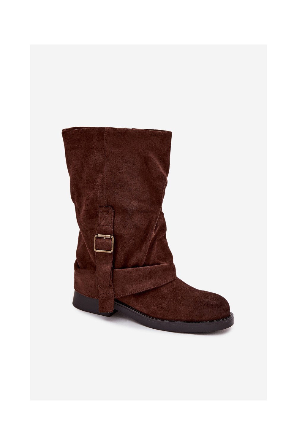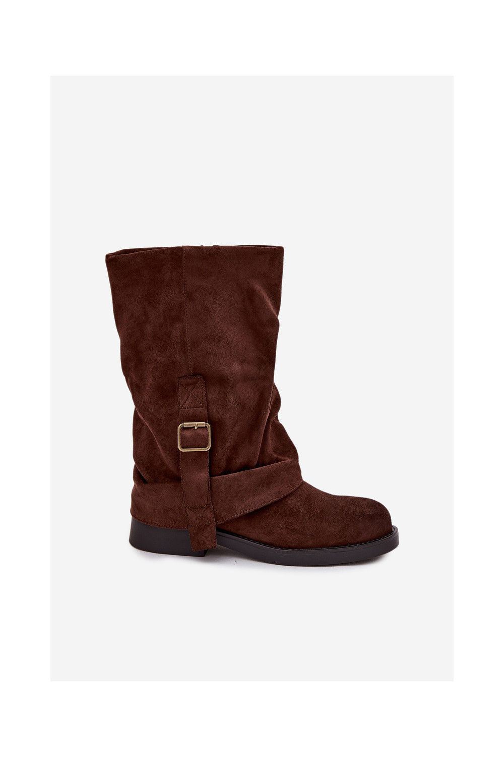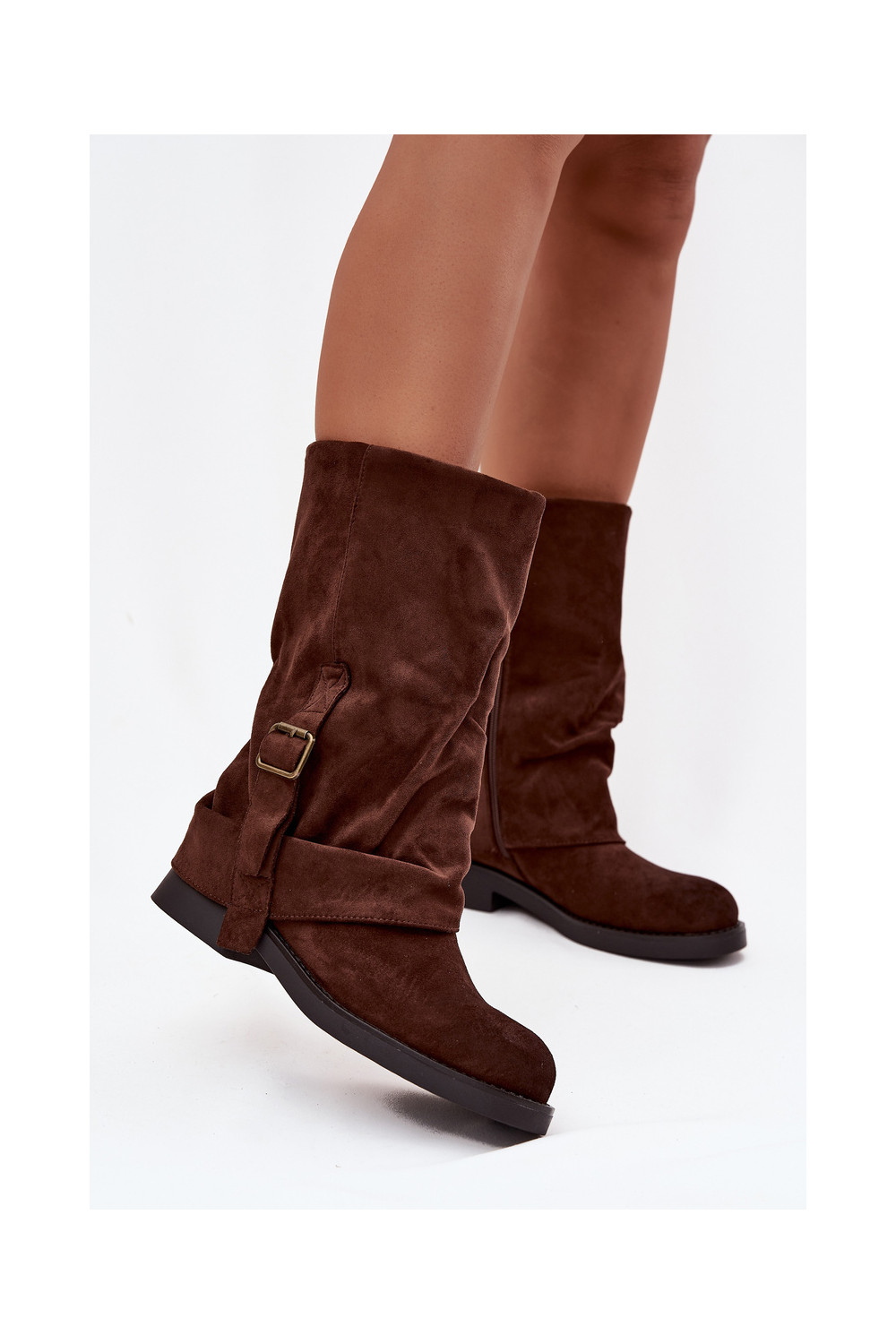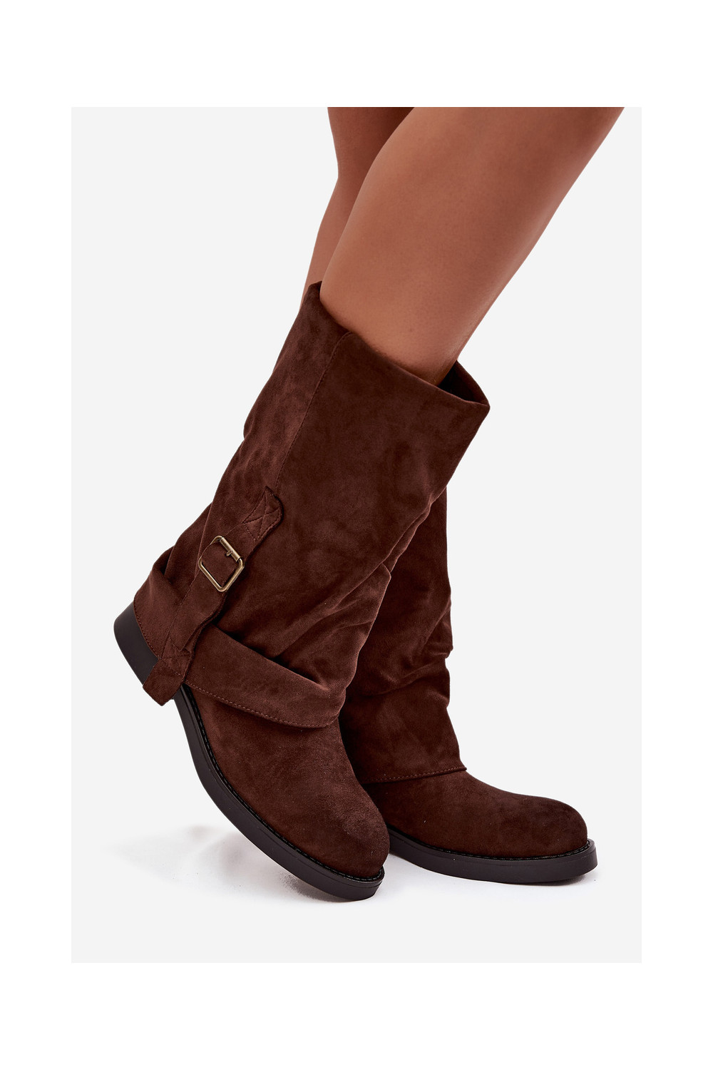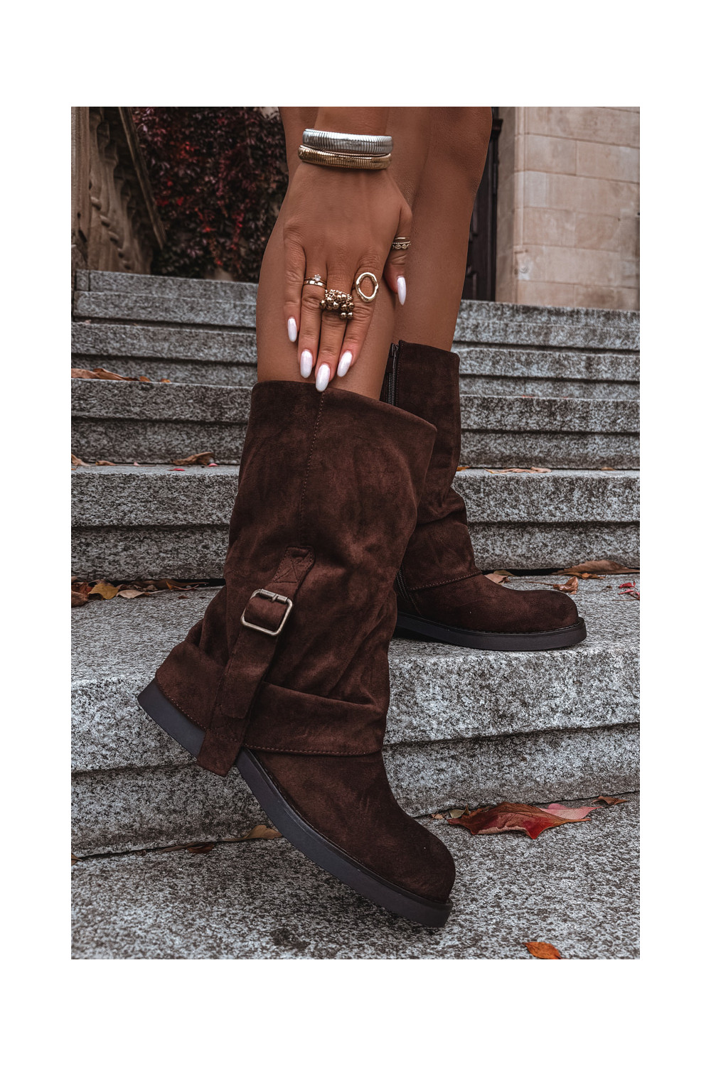 dámské dlouhé boty Z Wywiniętą Cholewką s přezkami Czekoladowe Minelle