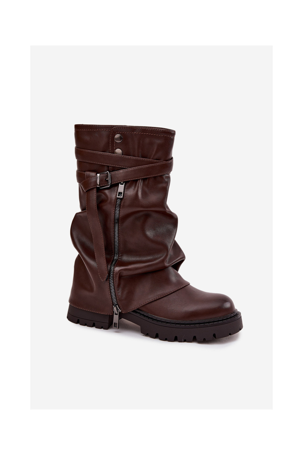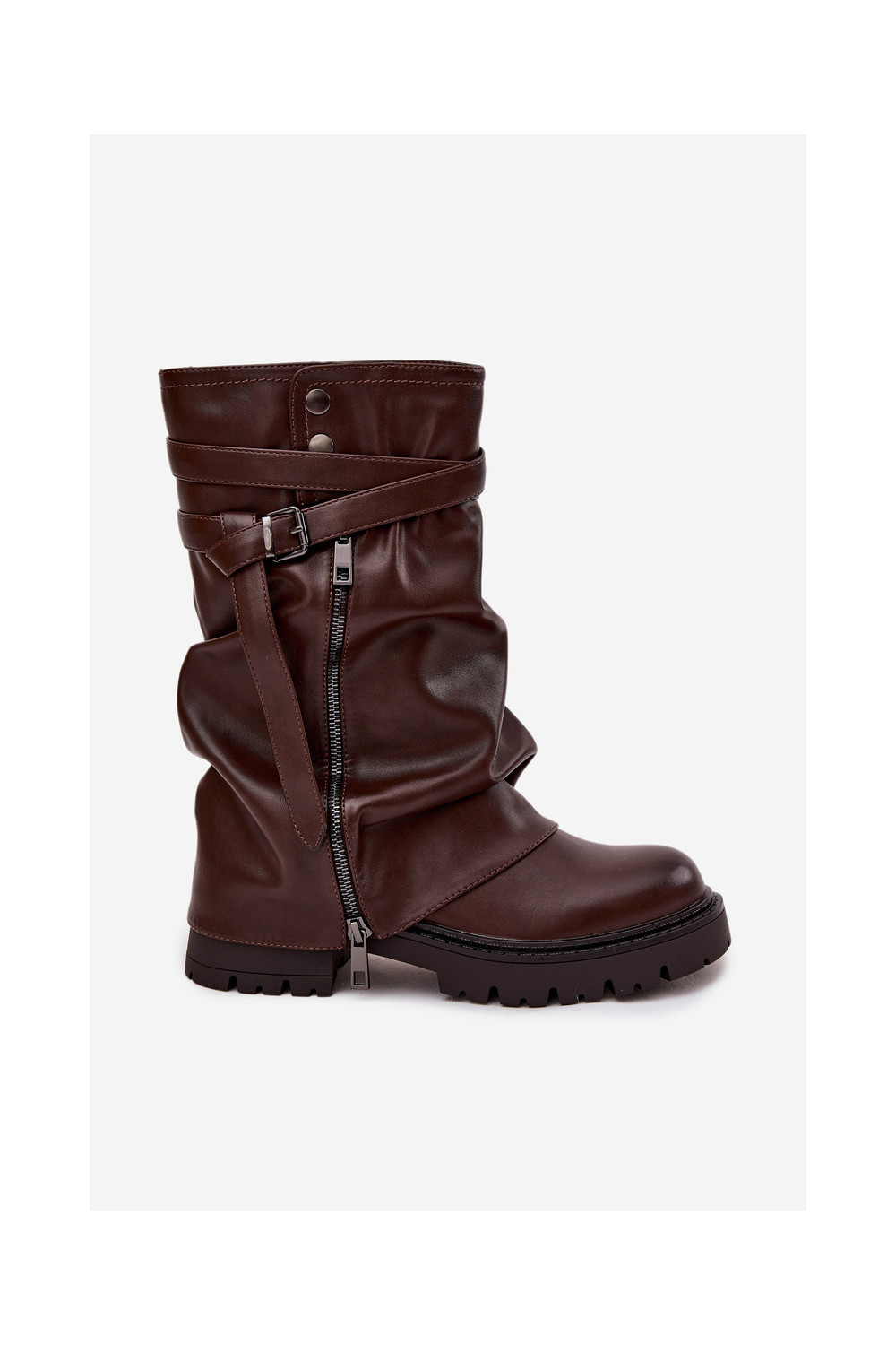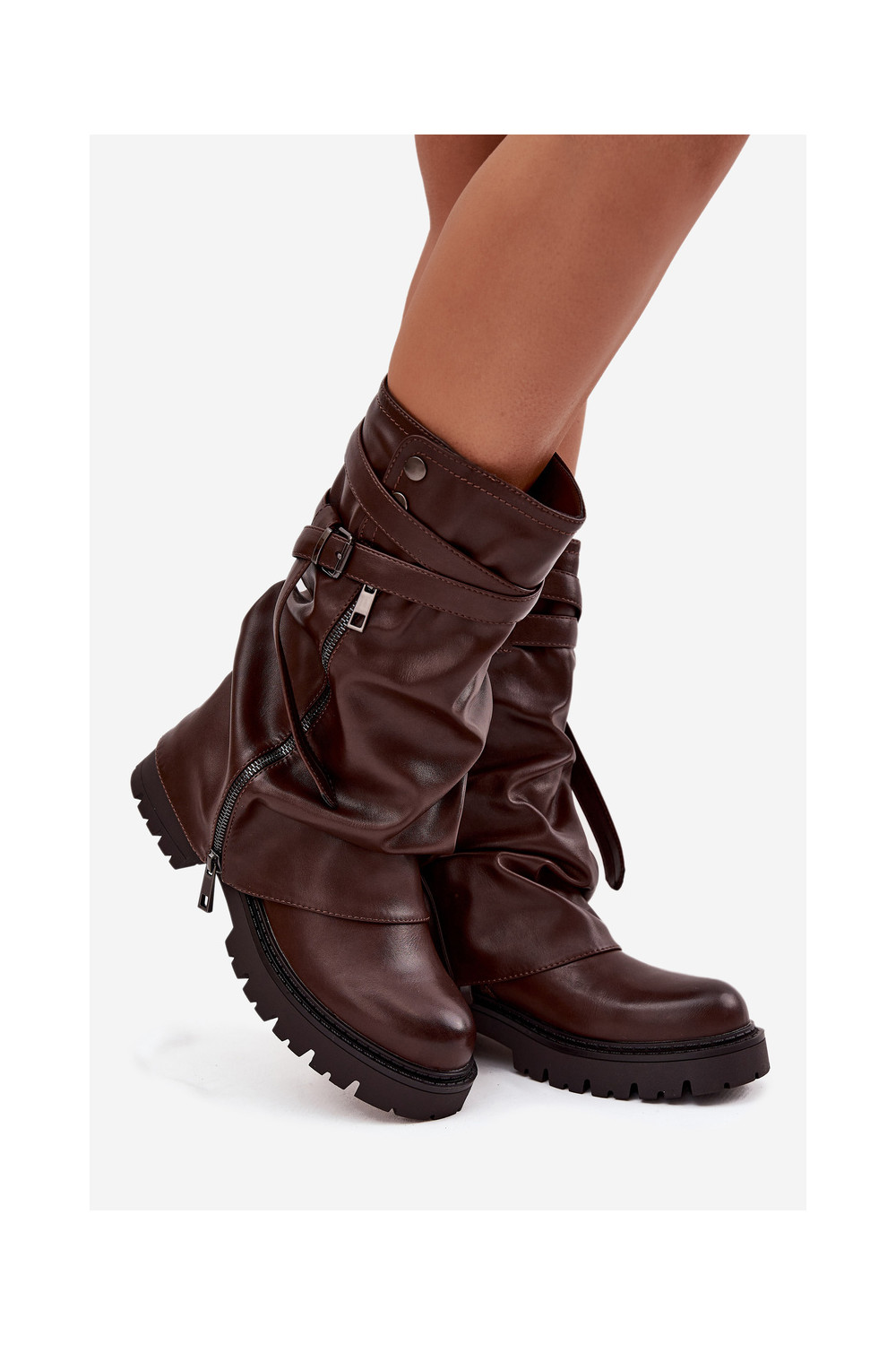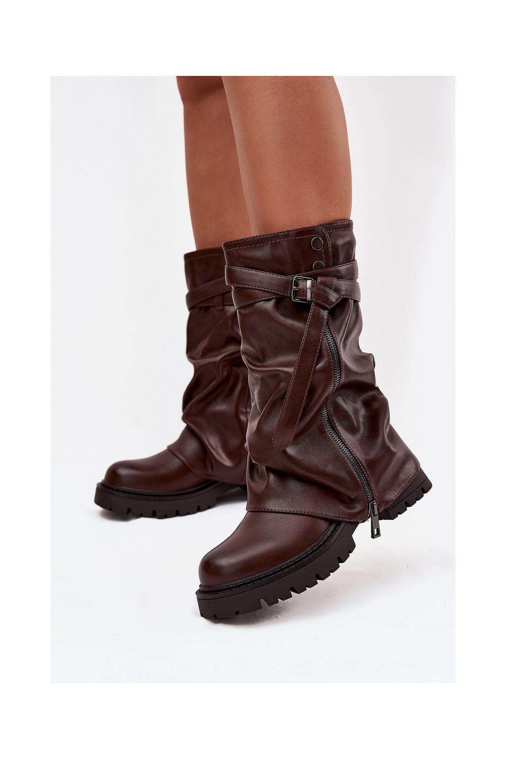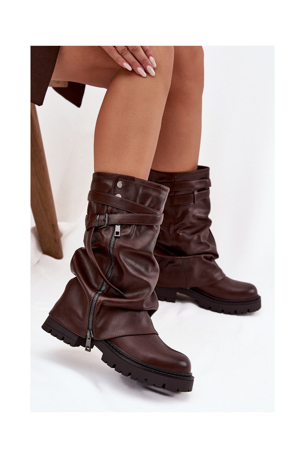 dámské dlouhé boty Z Wywiniętą Cholewką s popruhy Czekoladowe Darisa
