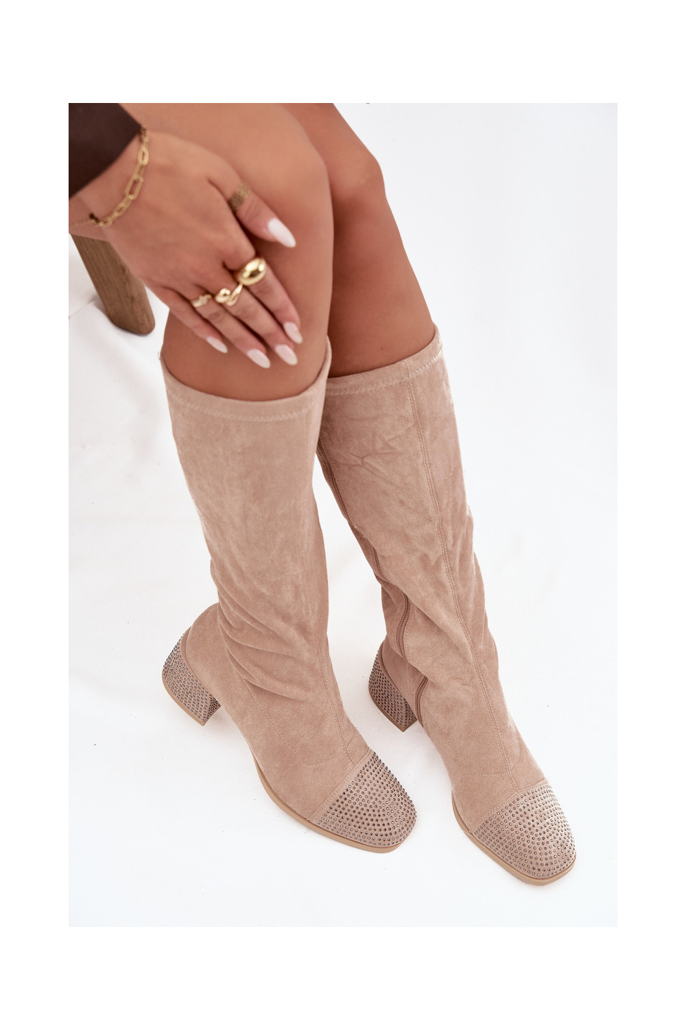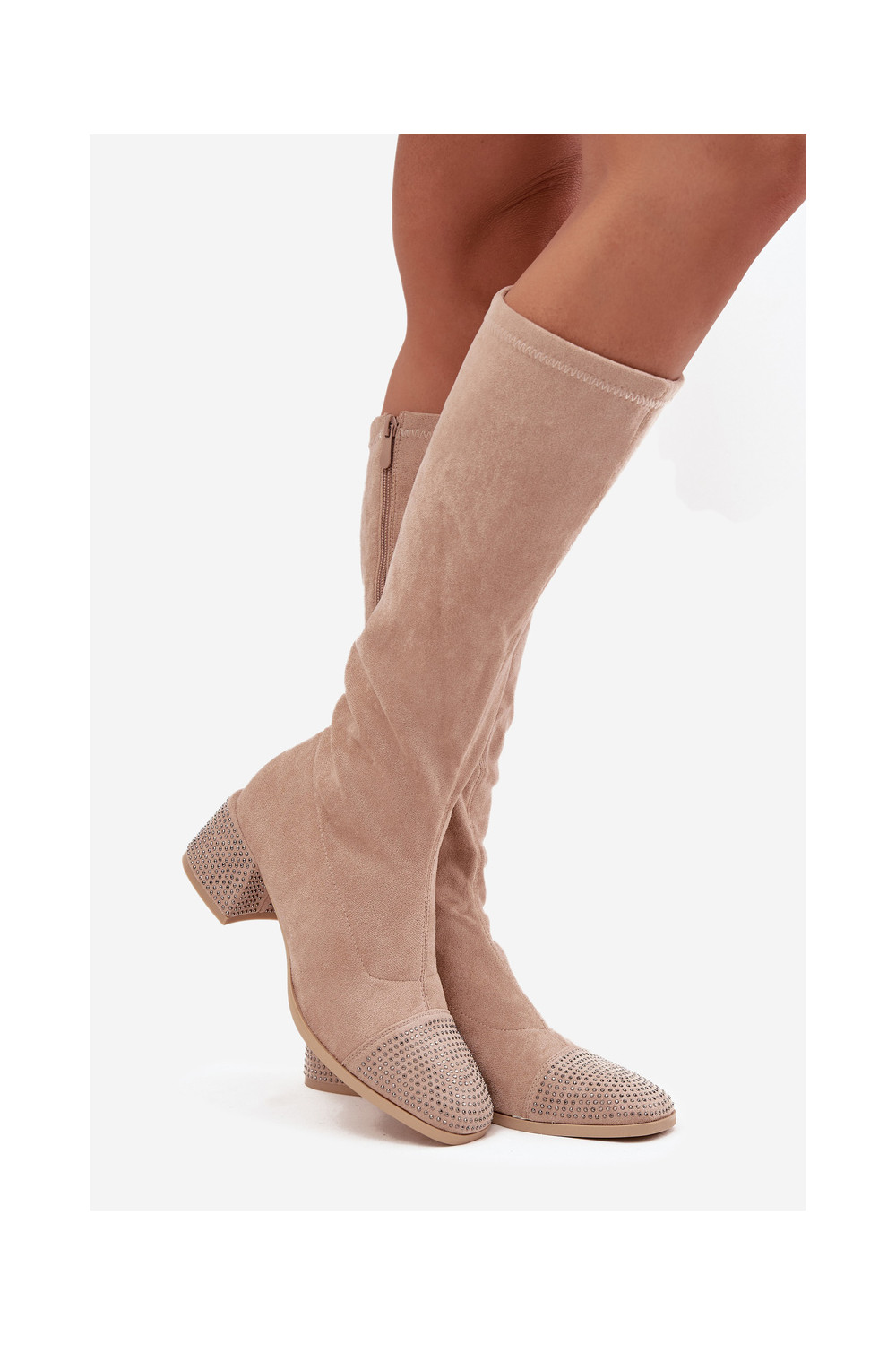 dámské dlouhé boty z eko semišeowe béžové Ivanna