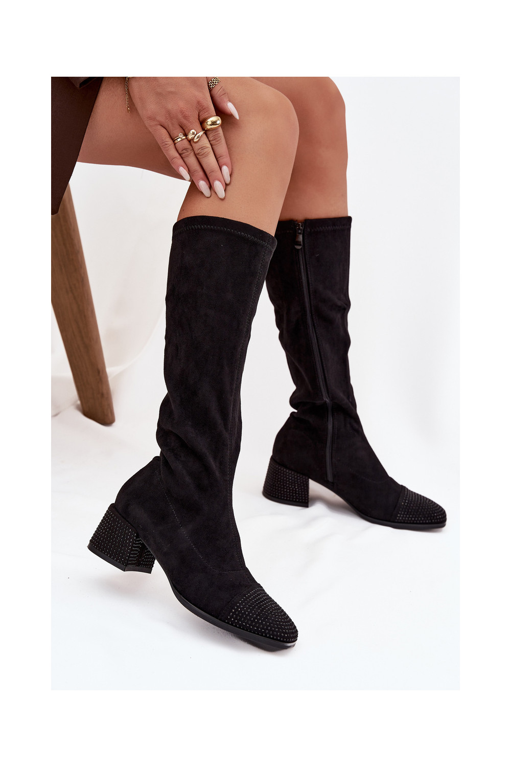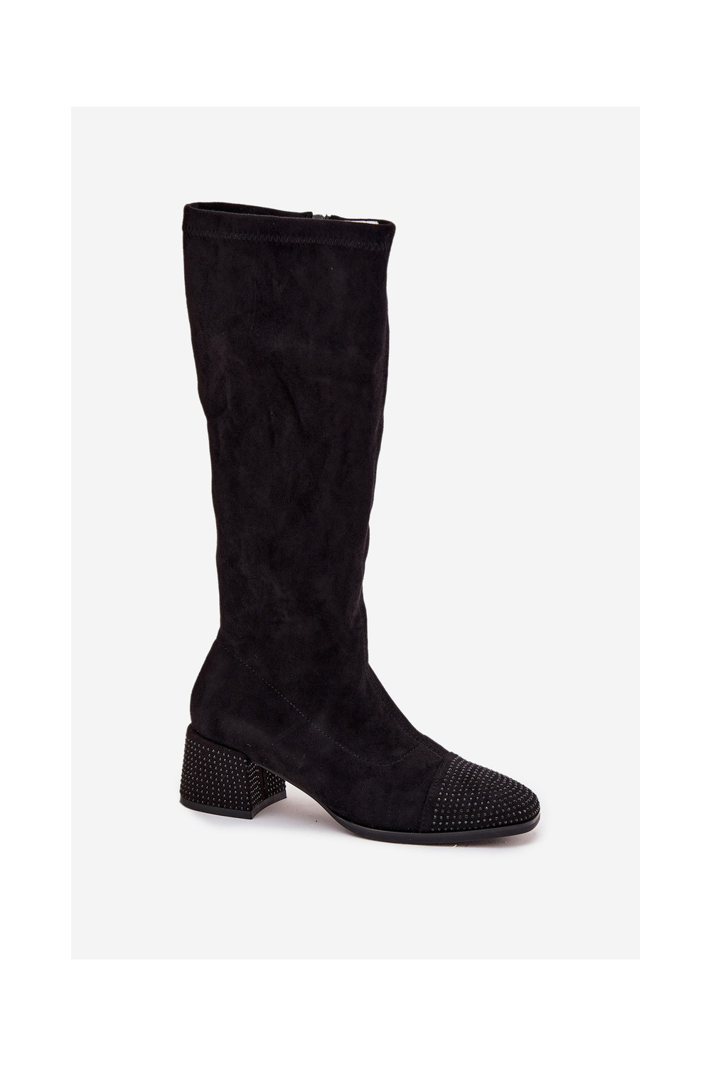 dámské dlouhé boty z eko semišeowe Černé Ivanna