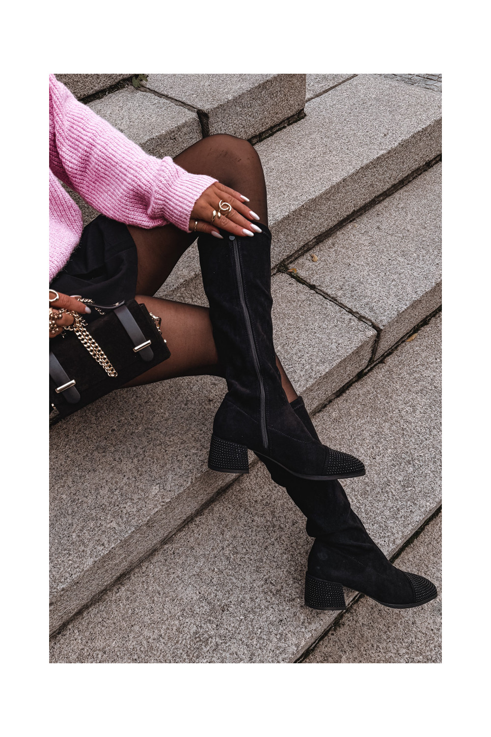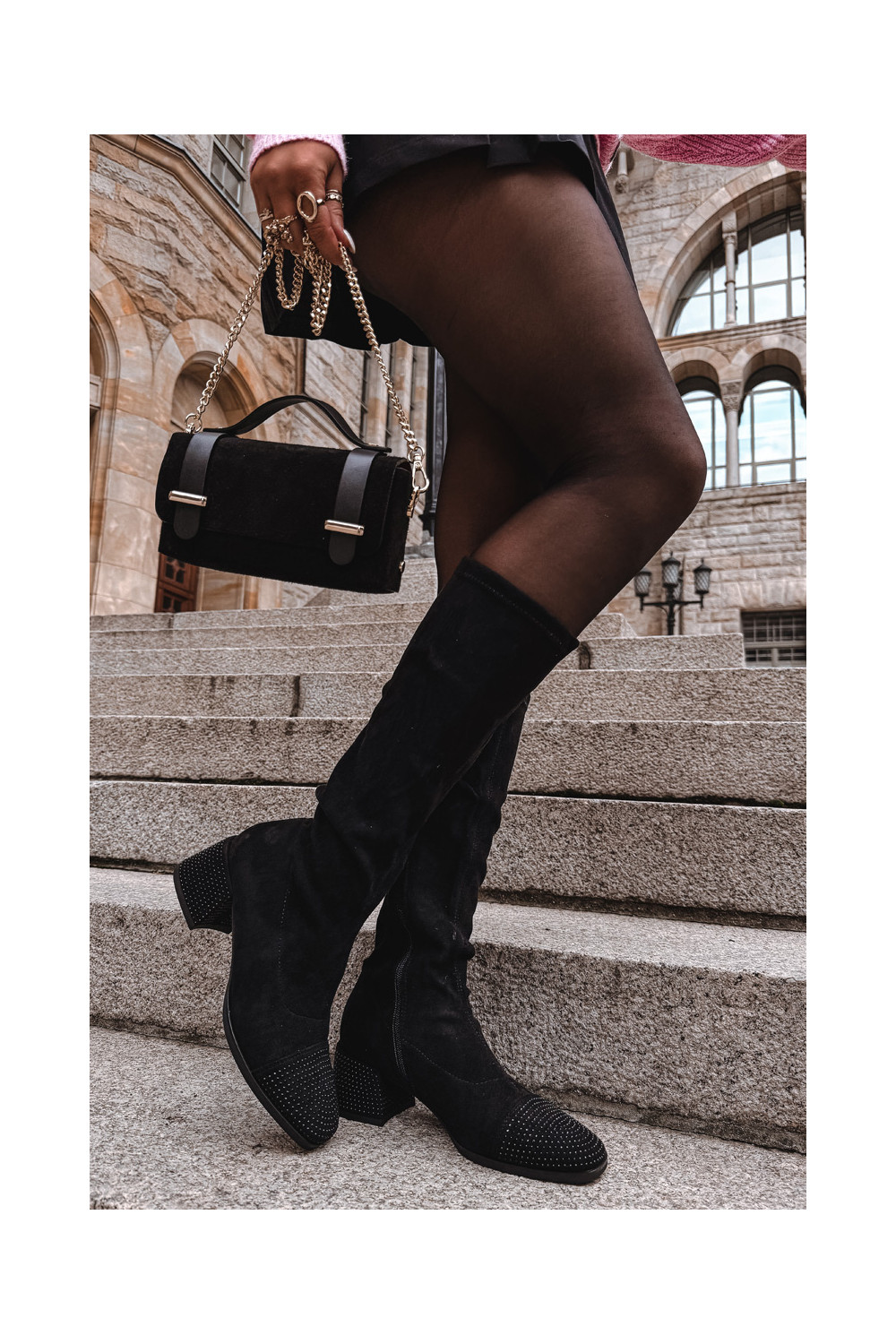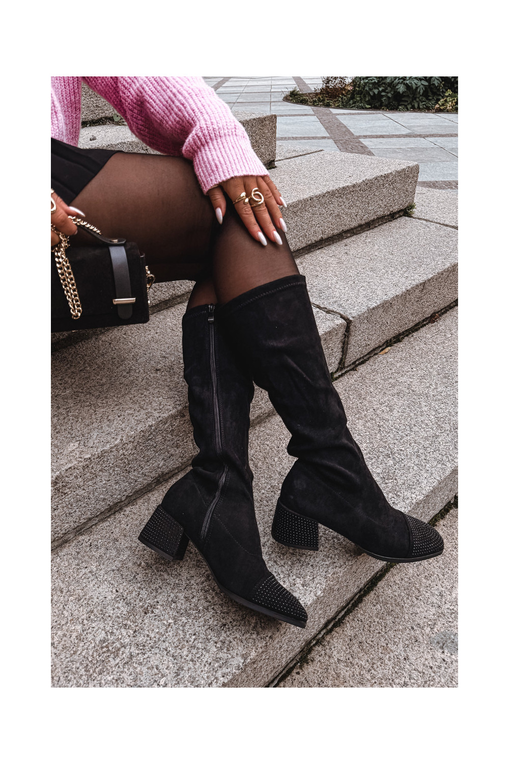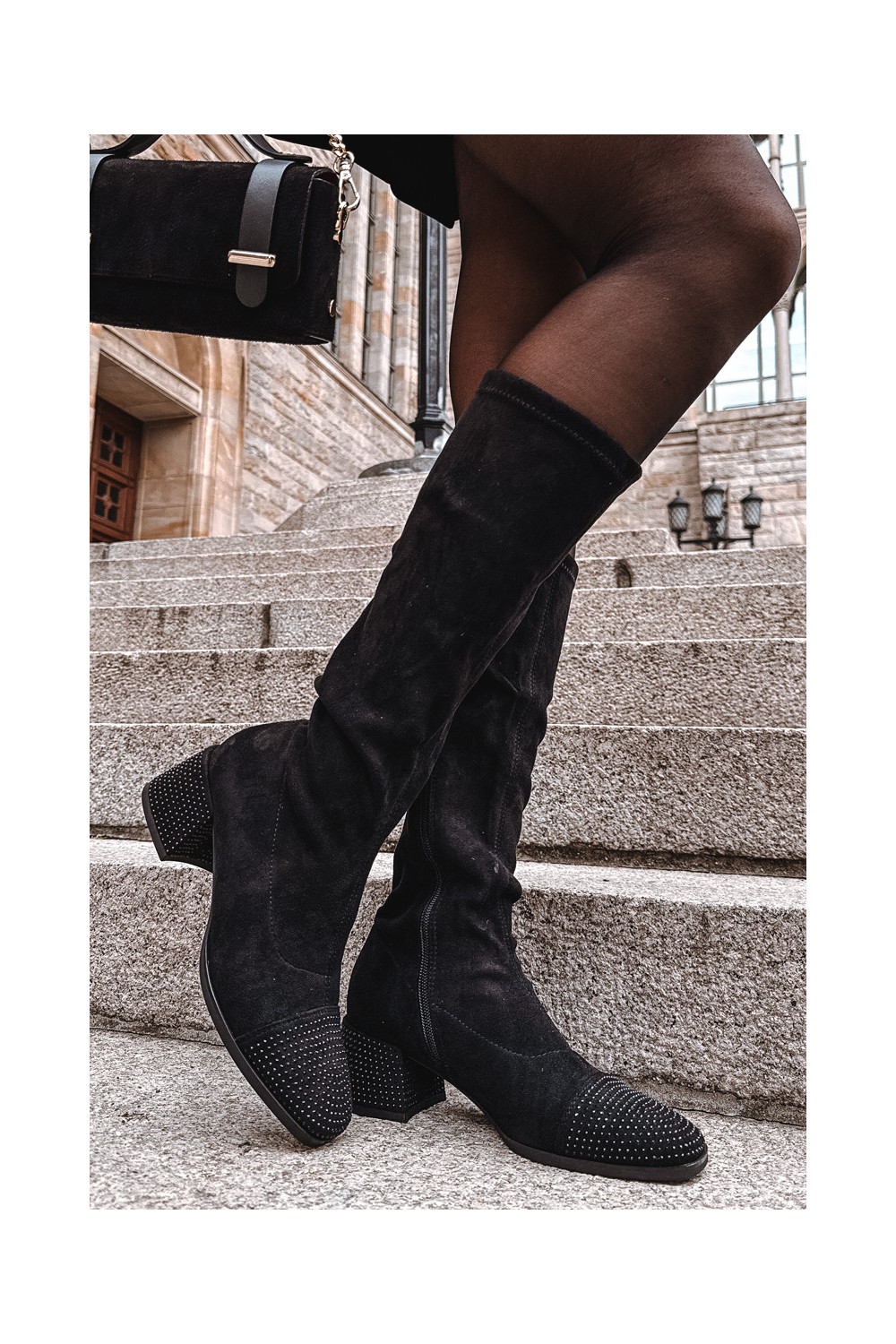 dámské dlouhé boty z eko semišeowe Černé Ivanna