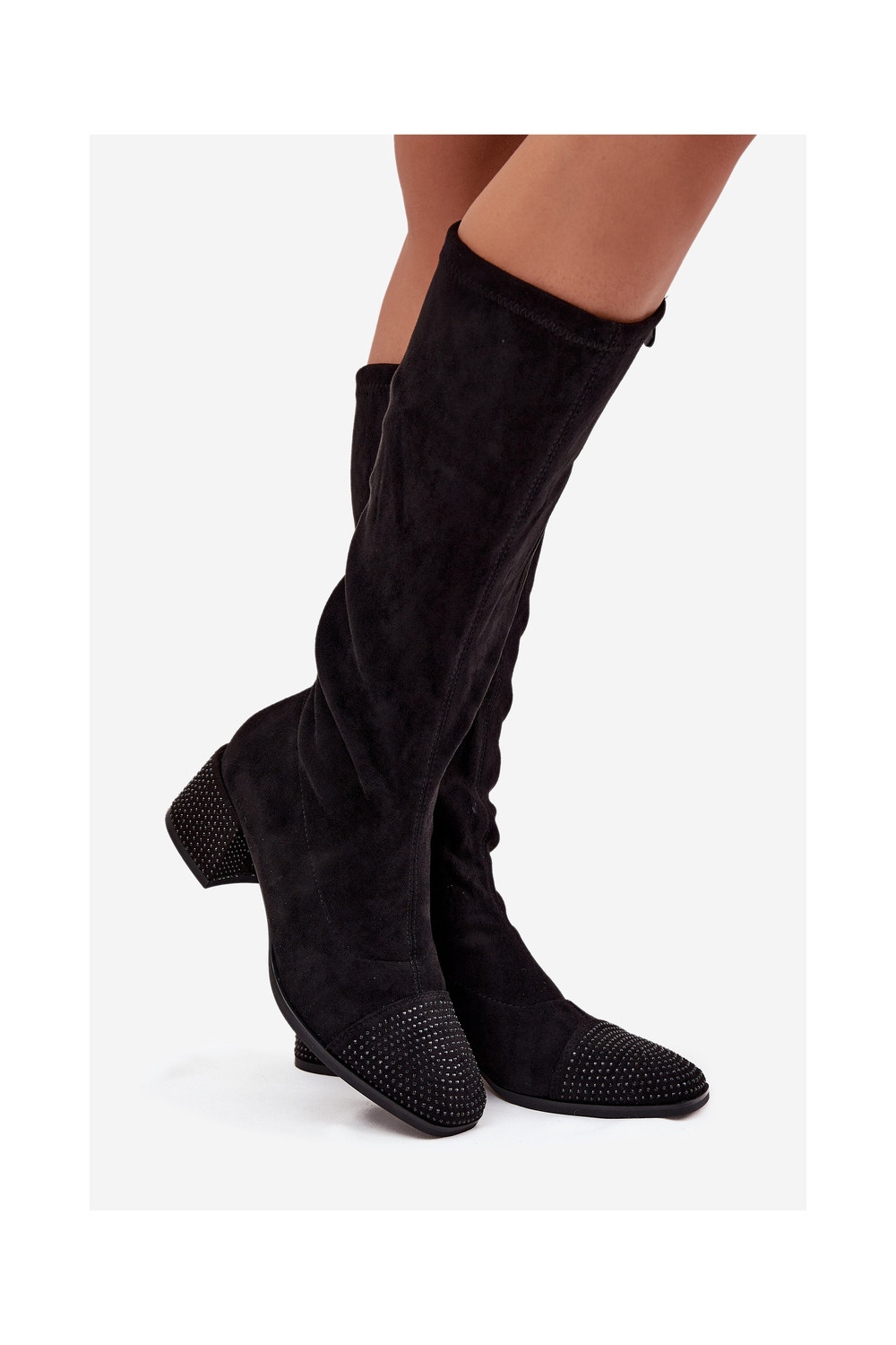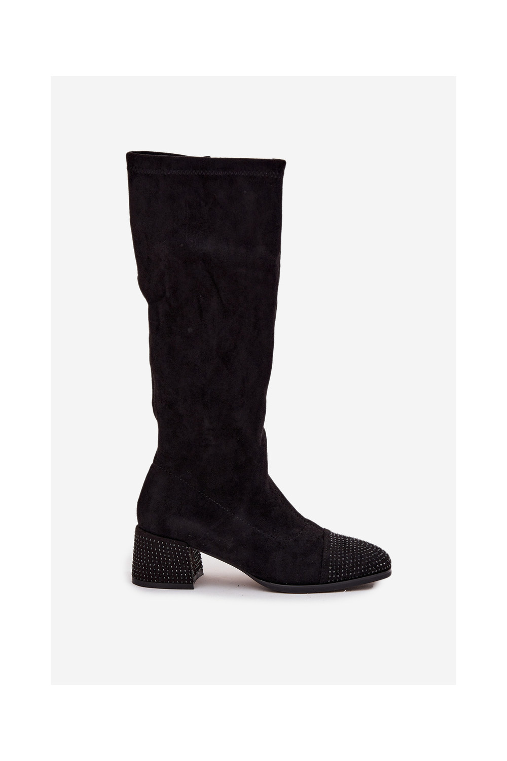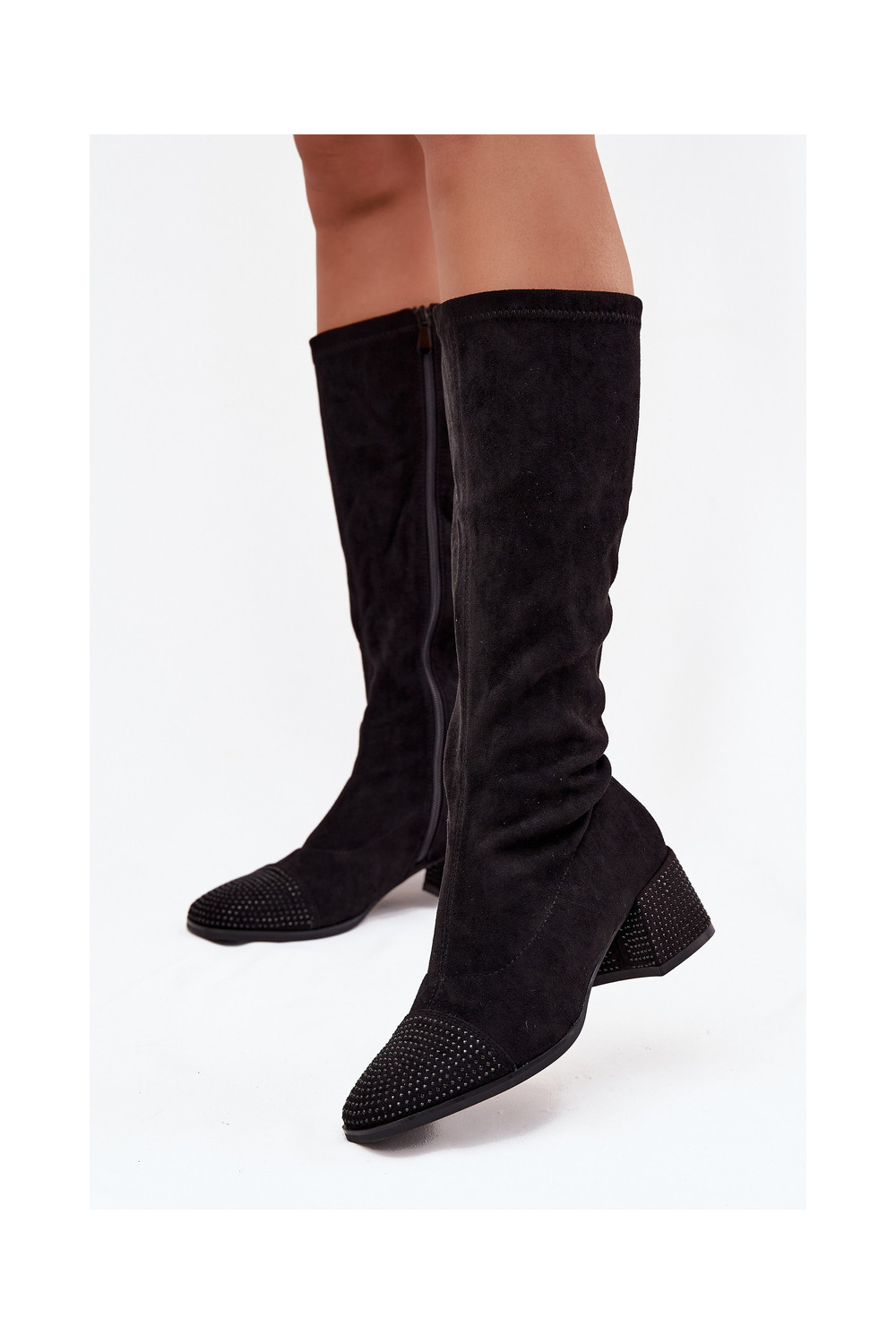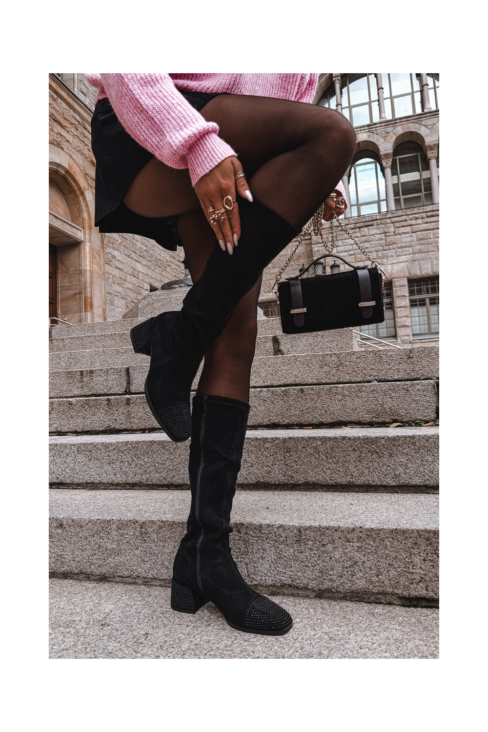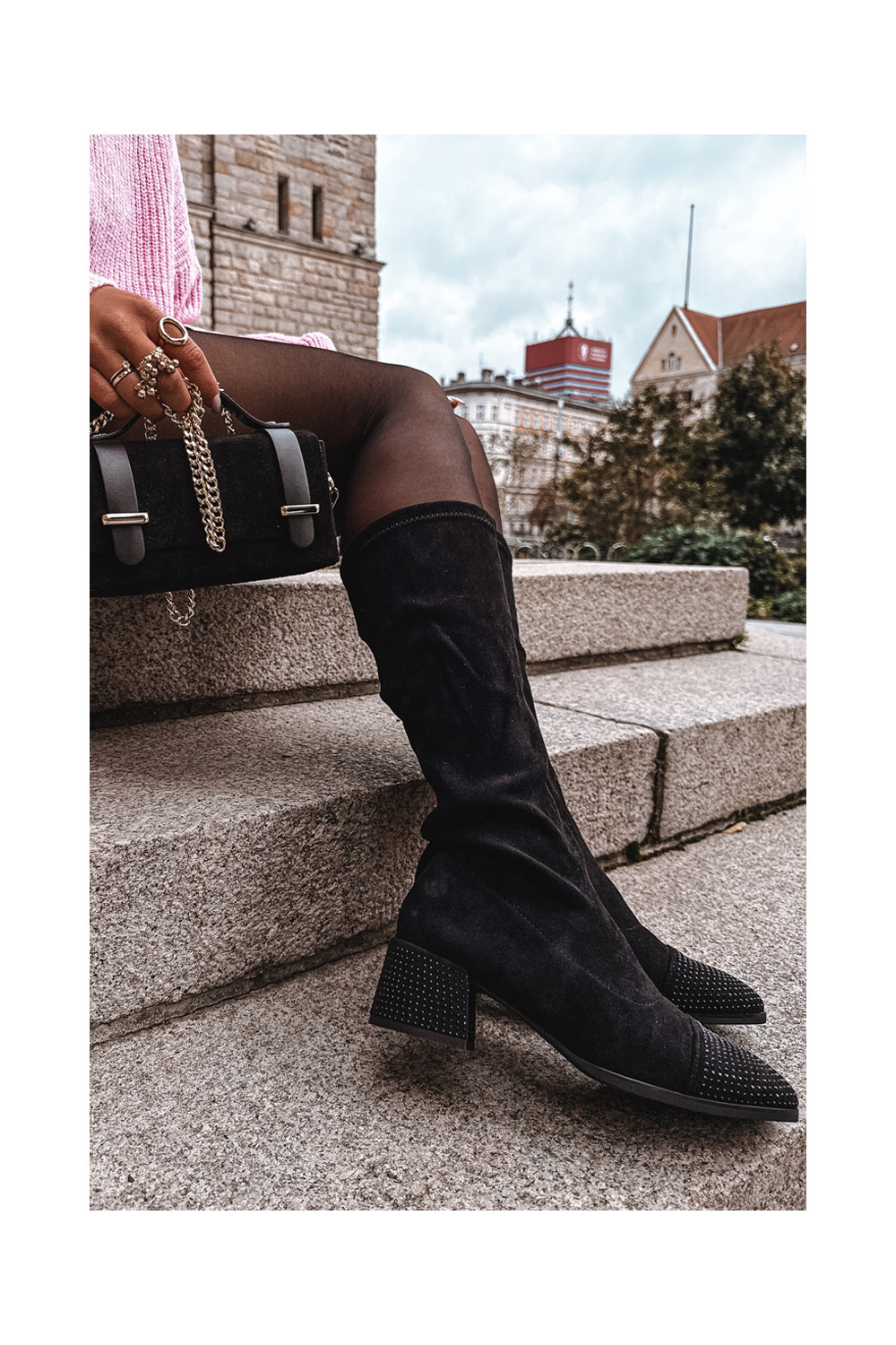 dámské dlouhé boty z eko semišeowe Černé Ivanna