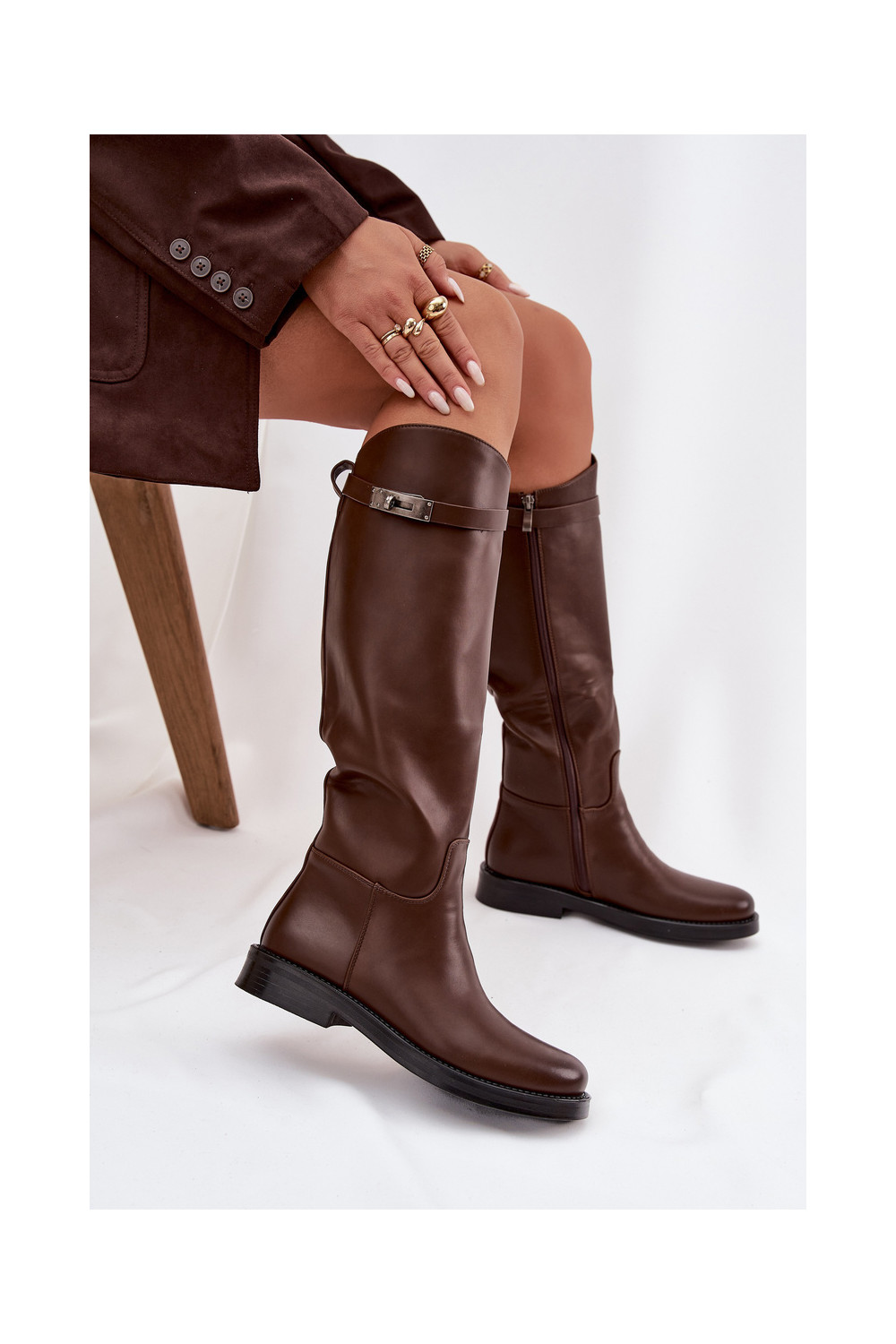 dámské dlouhé boty se zdobenými podpatky Eko Czekoladowe Palisse