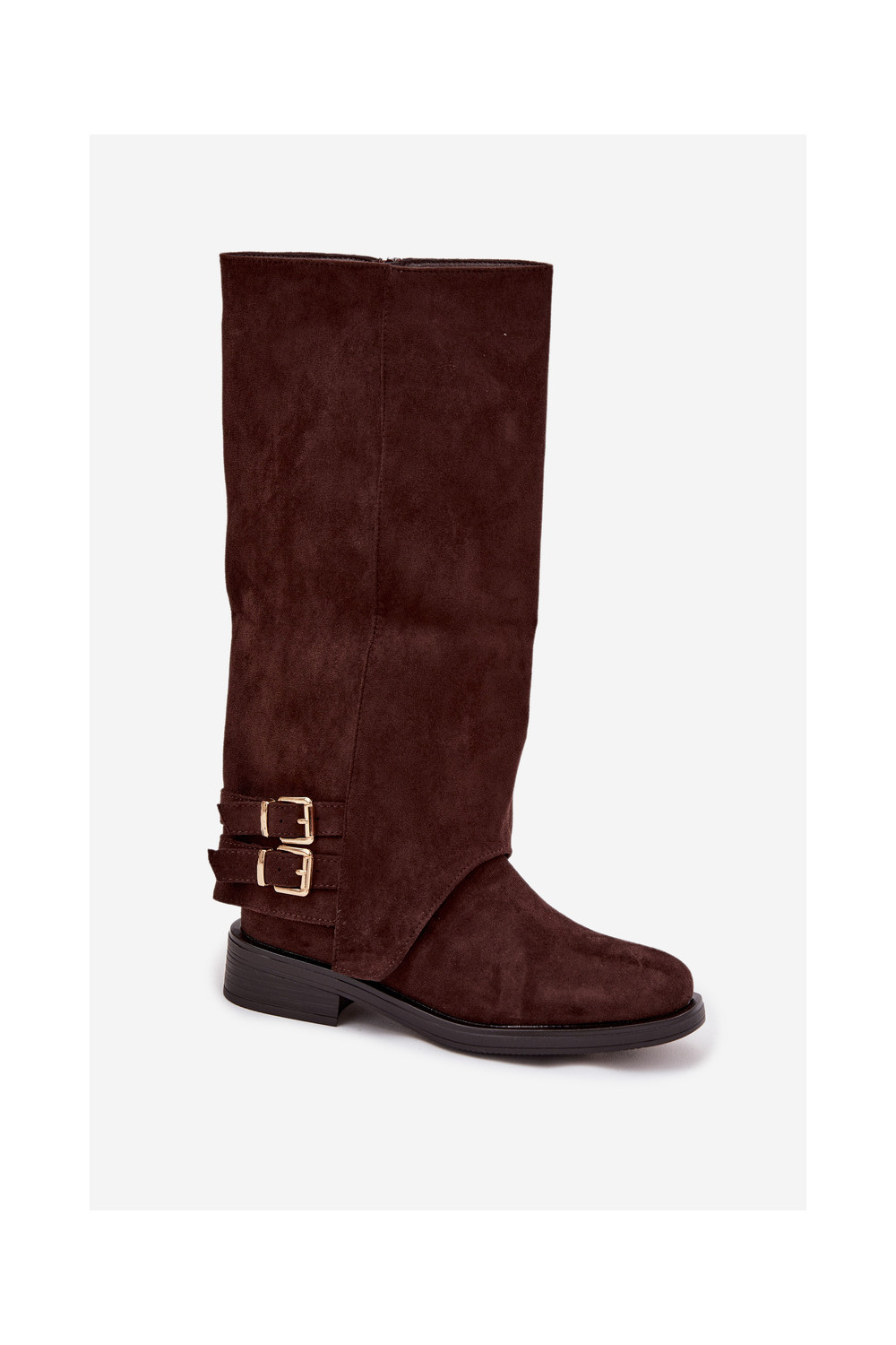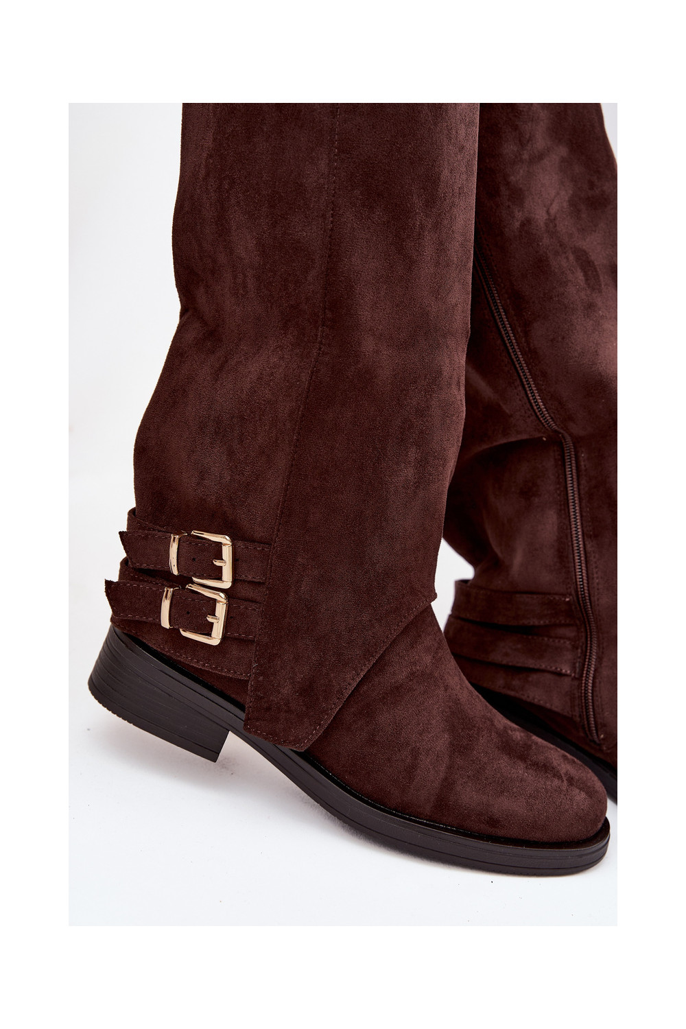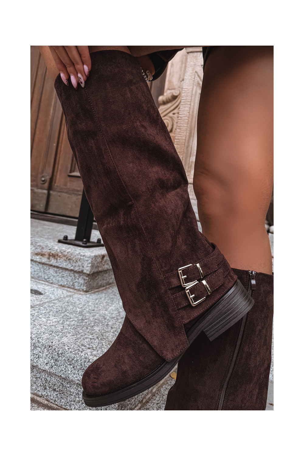zateplené dámské dlouhé boty s přezkami Czekoladowe Umbria