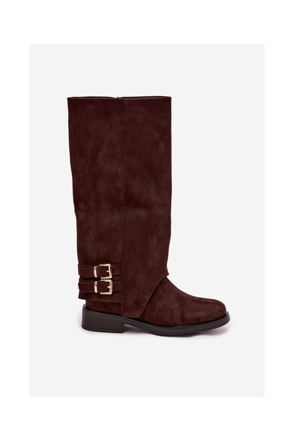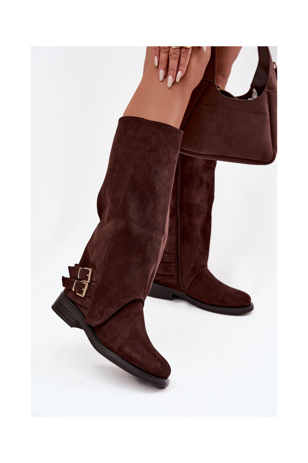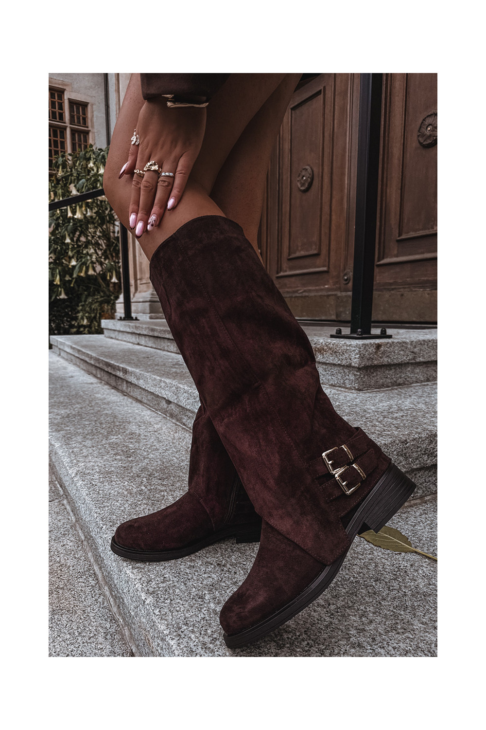 zateplené dámské dlouhé boty s přezkami Czekoladowe Umbria