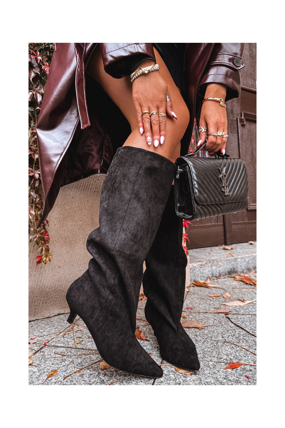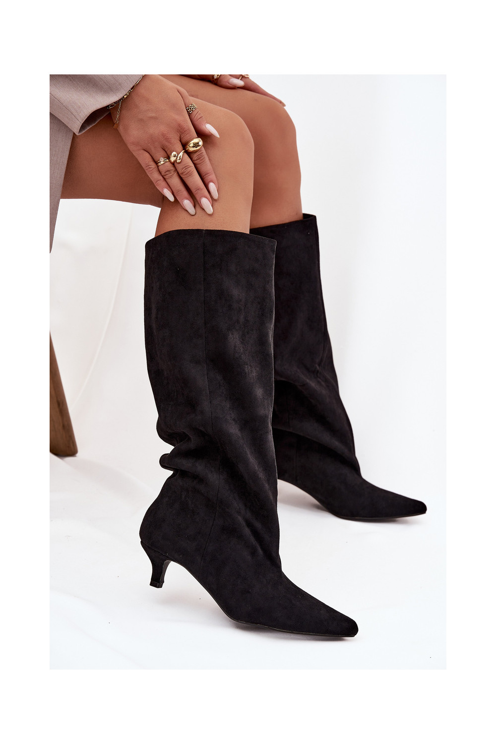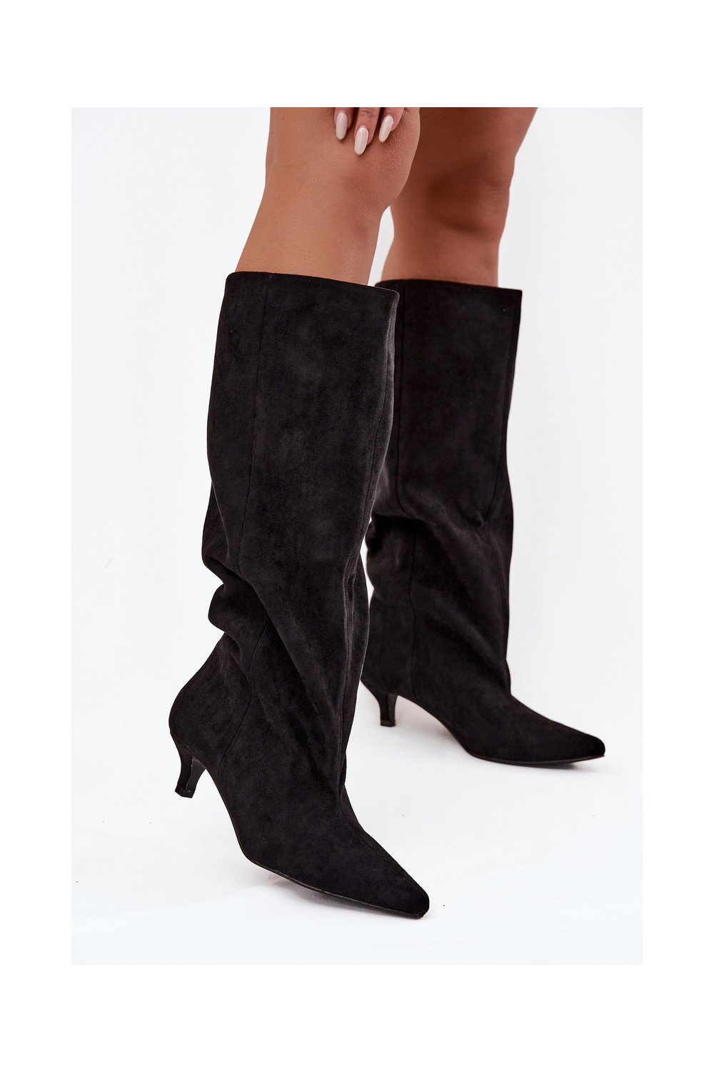 dámské dlouhé boty s podpatky Z z eko semišeu Černé Pheona