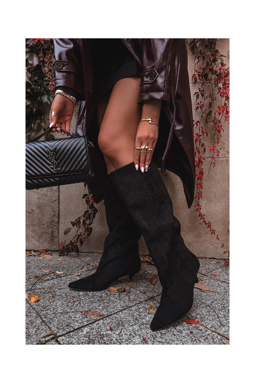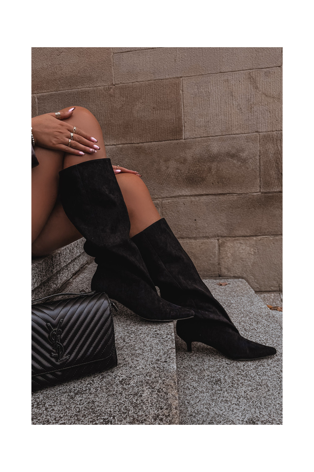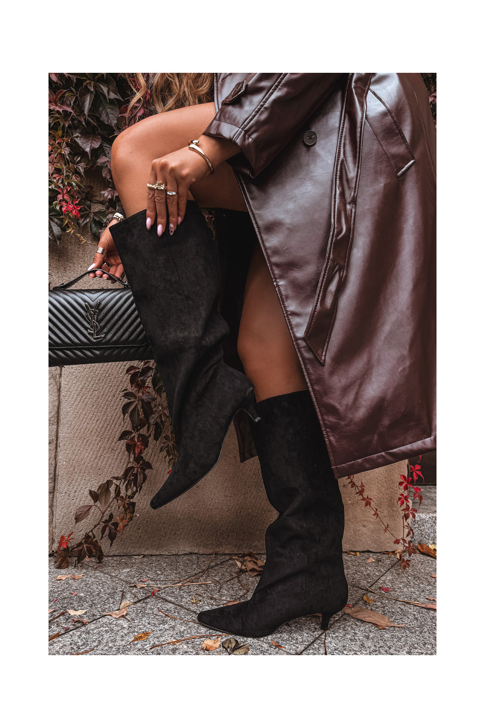 dámské dlouhé boty s podpatky Z z eko semišeu Černé Pheona
