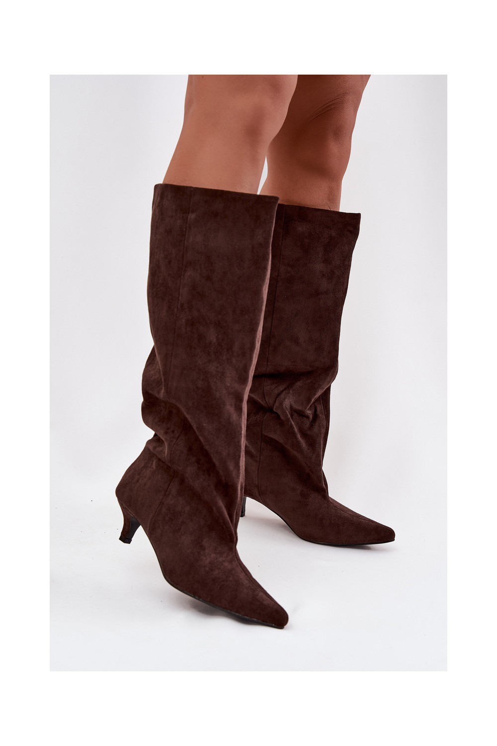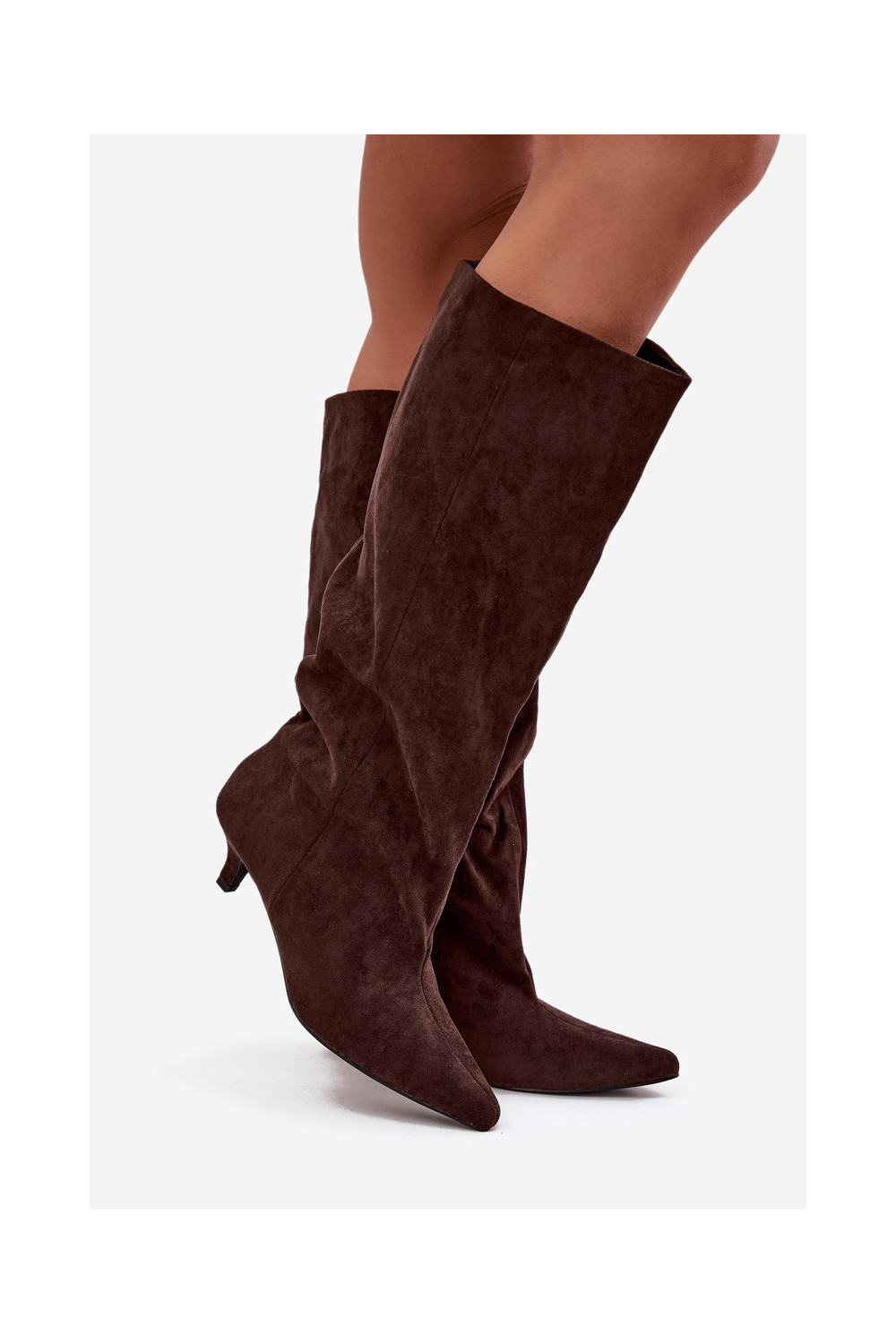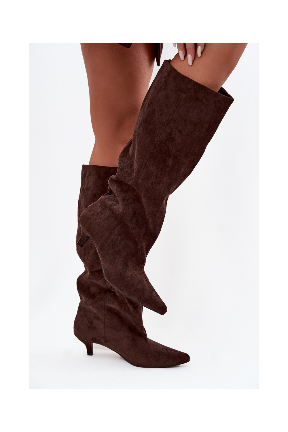 dámské dlouhé boty s podpatky Z z eko semišeu Czekoladowe Pheona