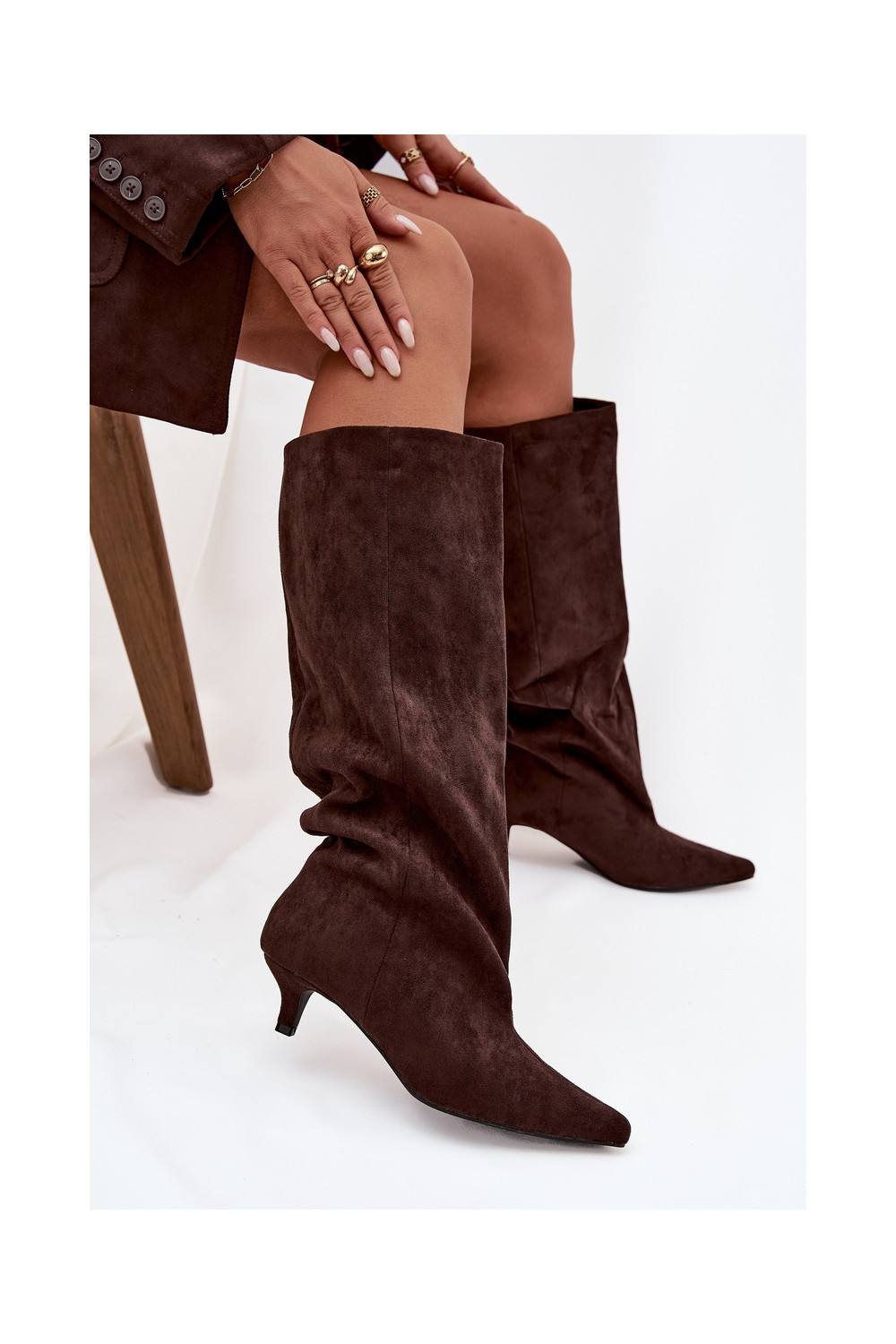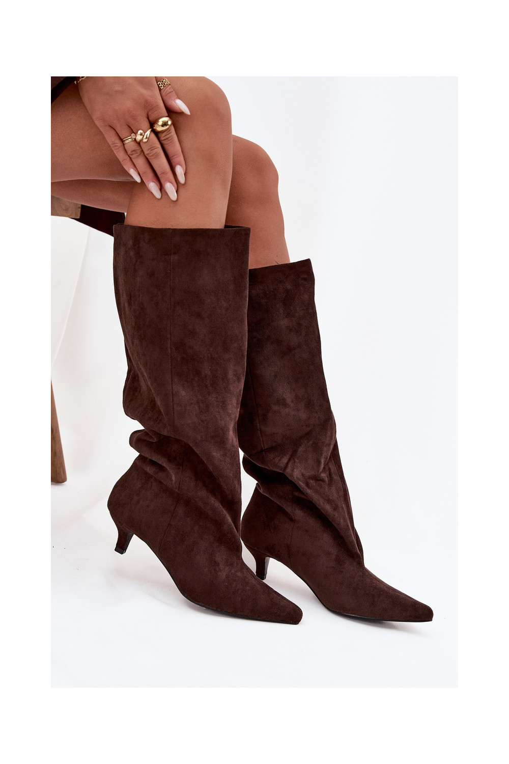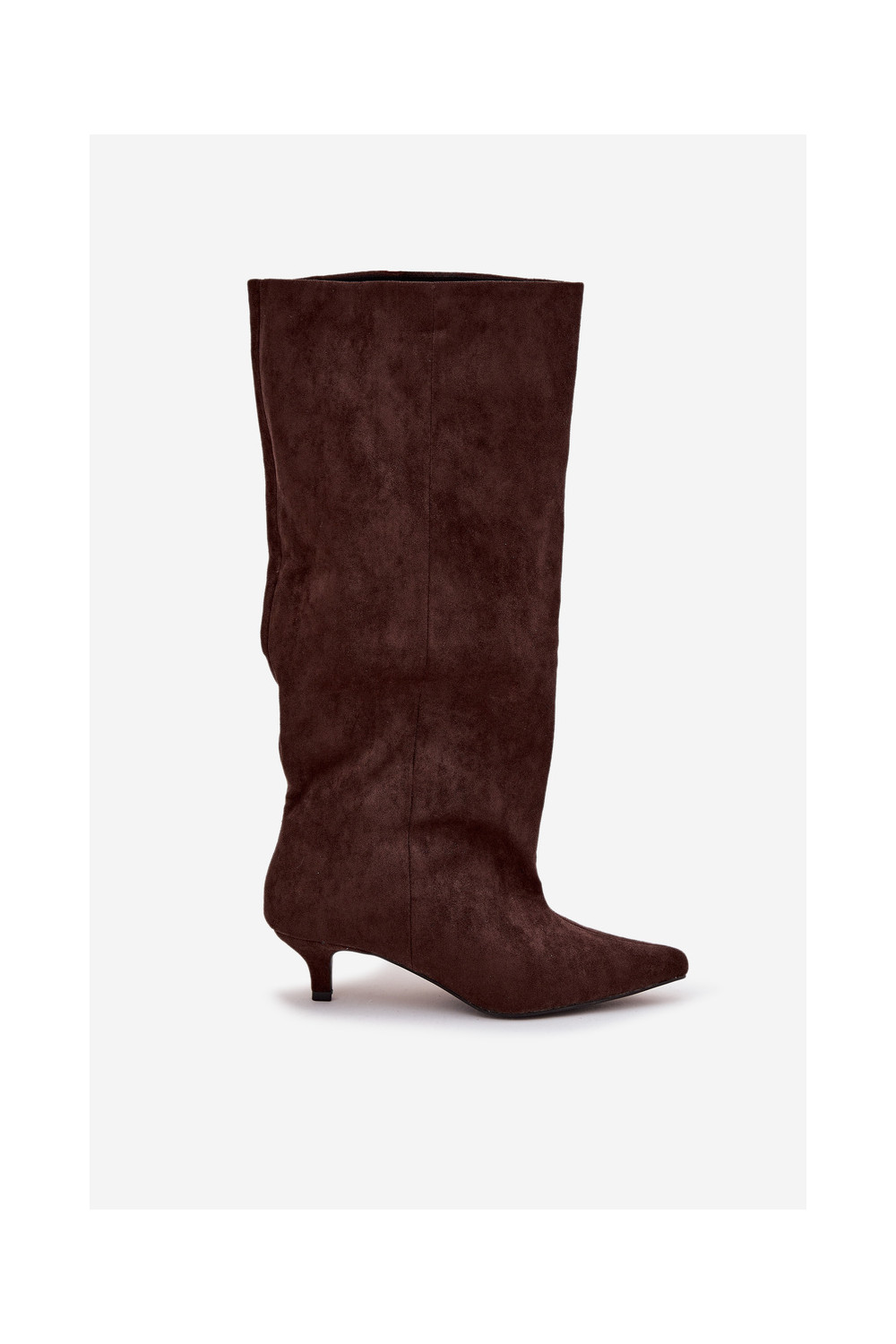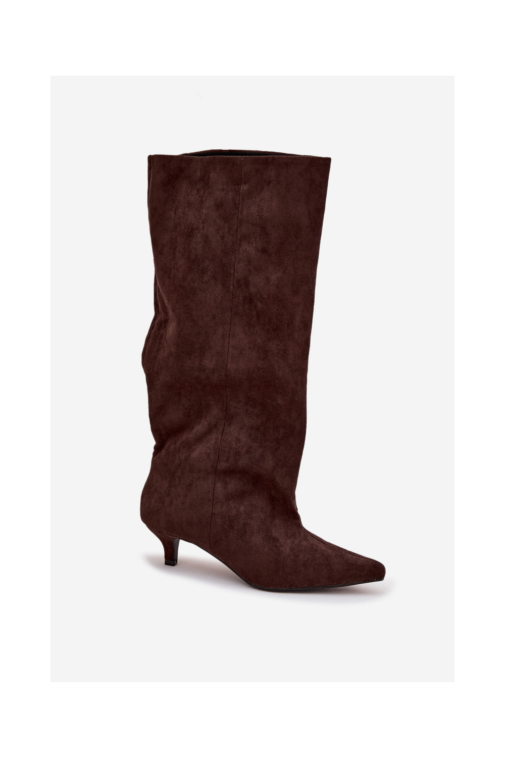 dámské dlouhé boty s podpatky Z z eko semišeu Czekoladowe Pheona