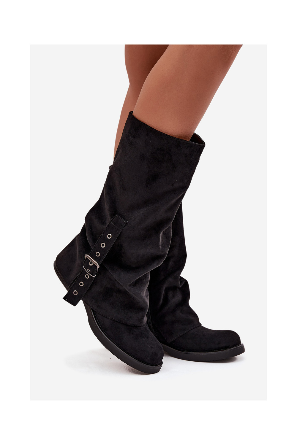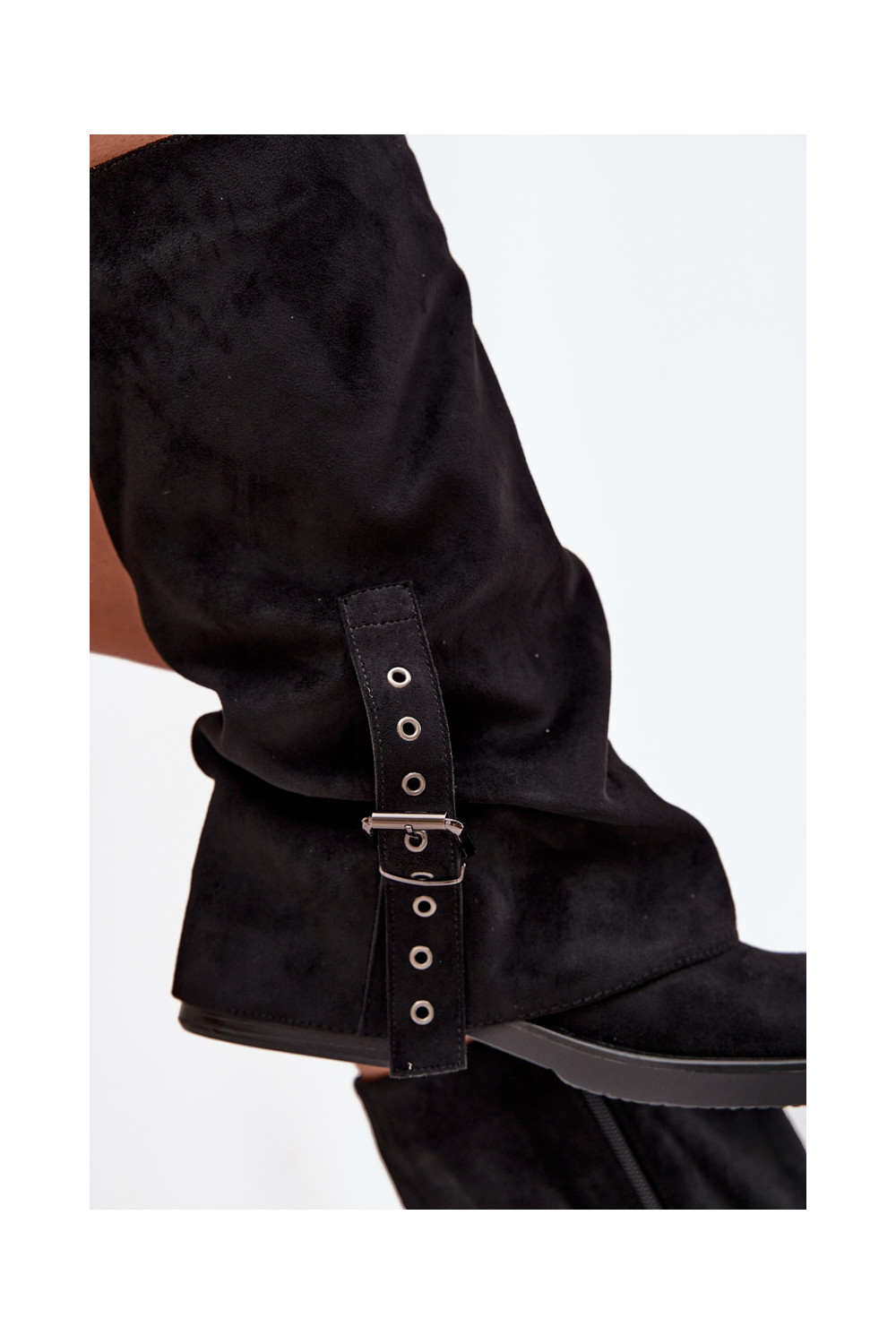 dámské dlouhé boty s vrásčitou podrážkou I s přezkami Černé Ophelis