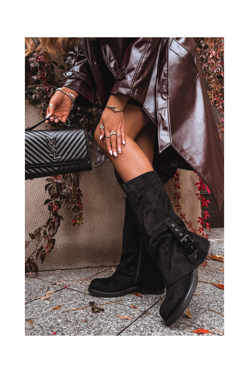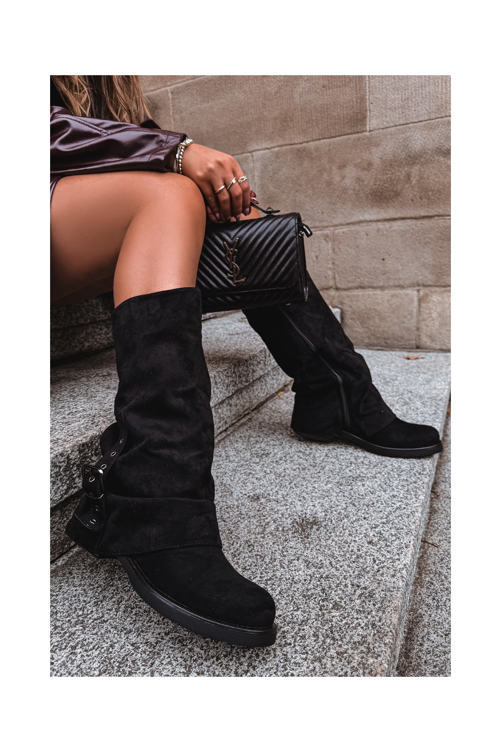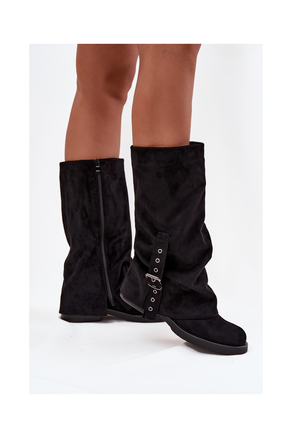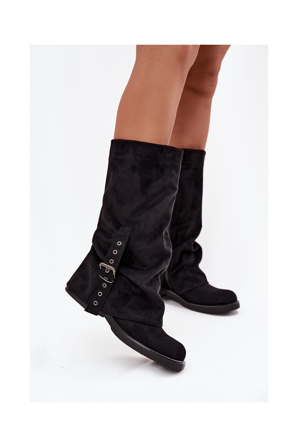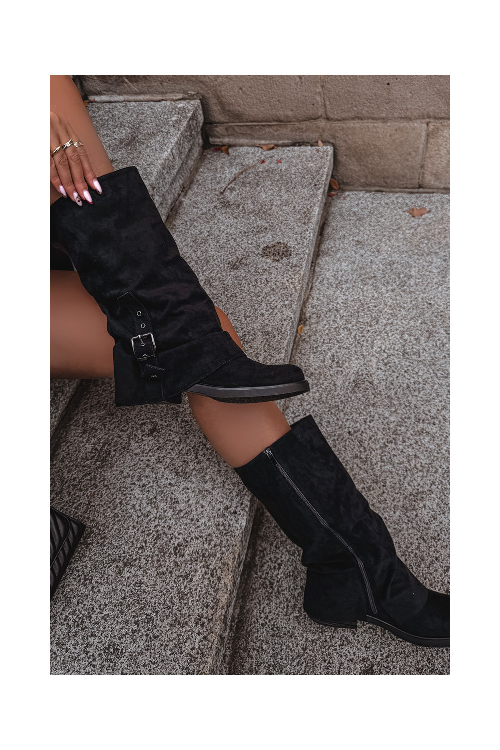 dámské dlouhé boty s vrásčitou podrážkou I s přezkami Černé Ophelis