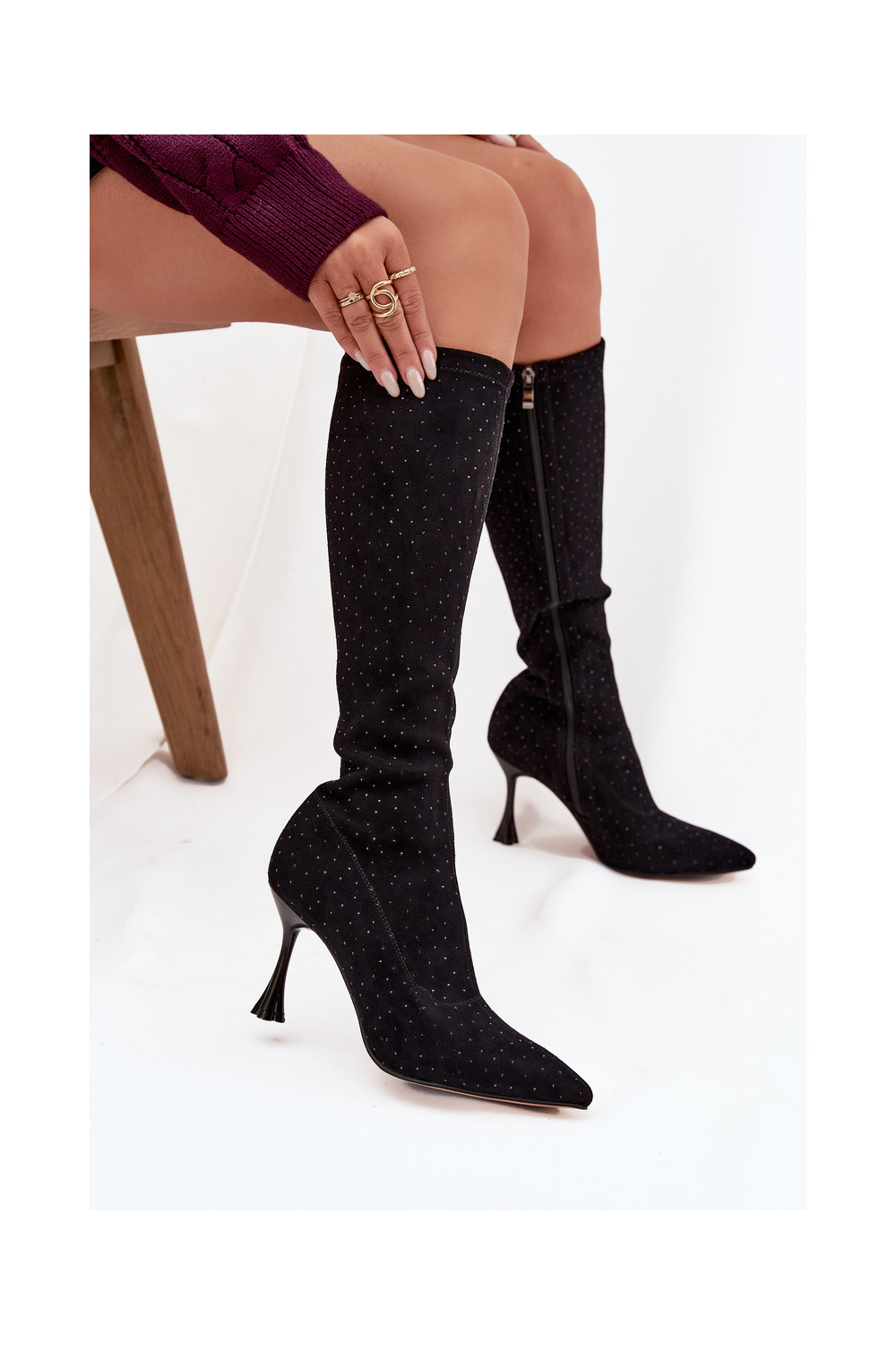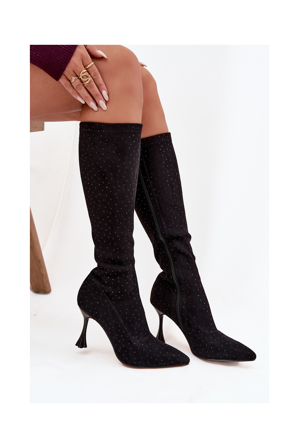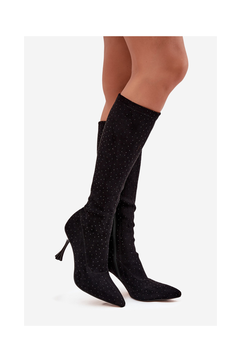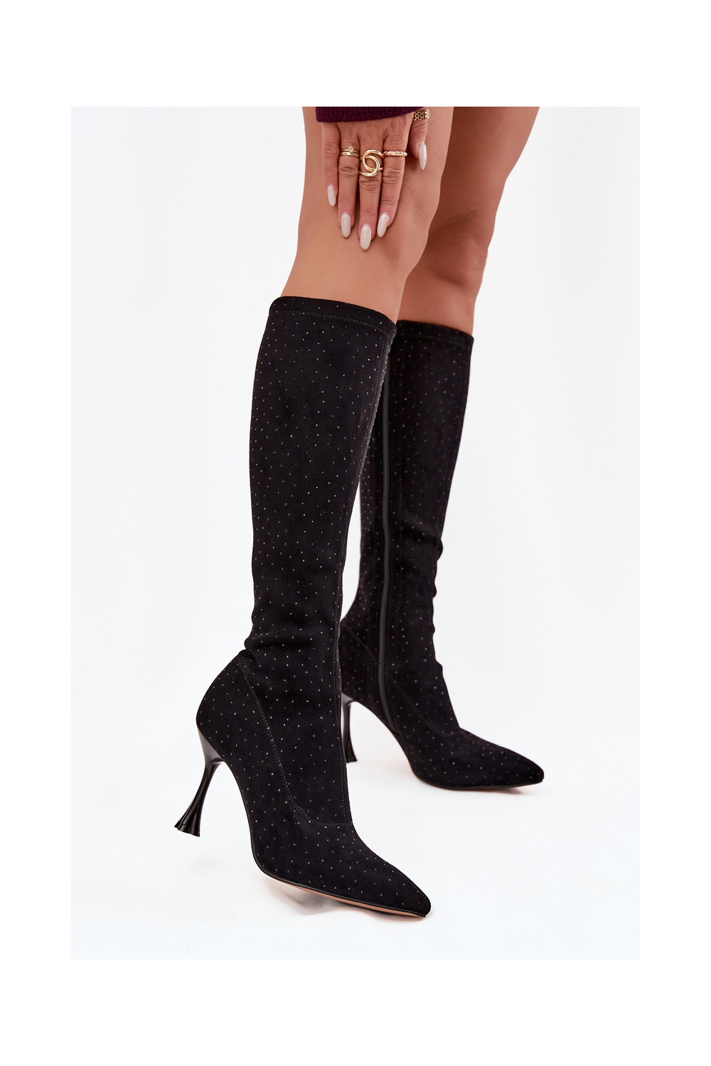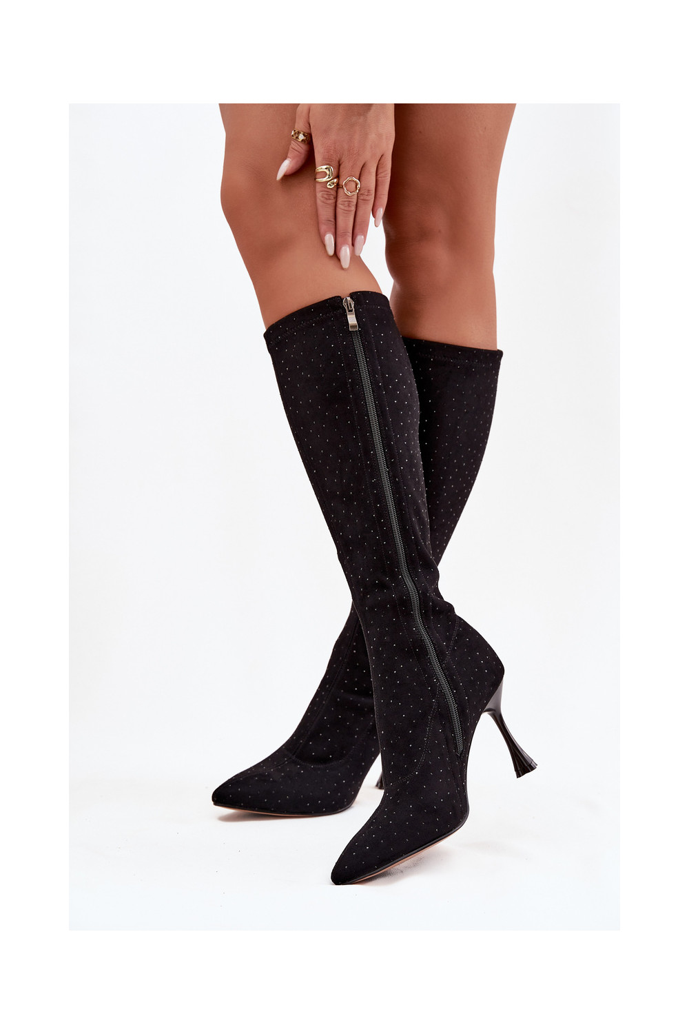 dámské dlouhé boty s tenkými podpatky D&A JC52-883 Černé