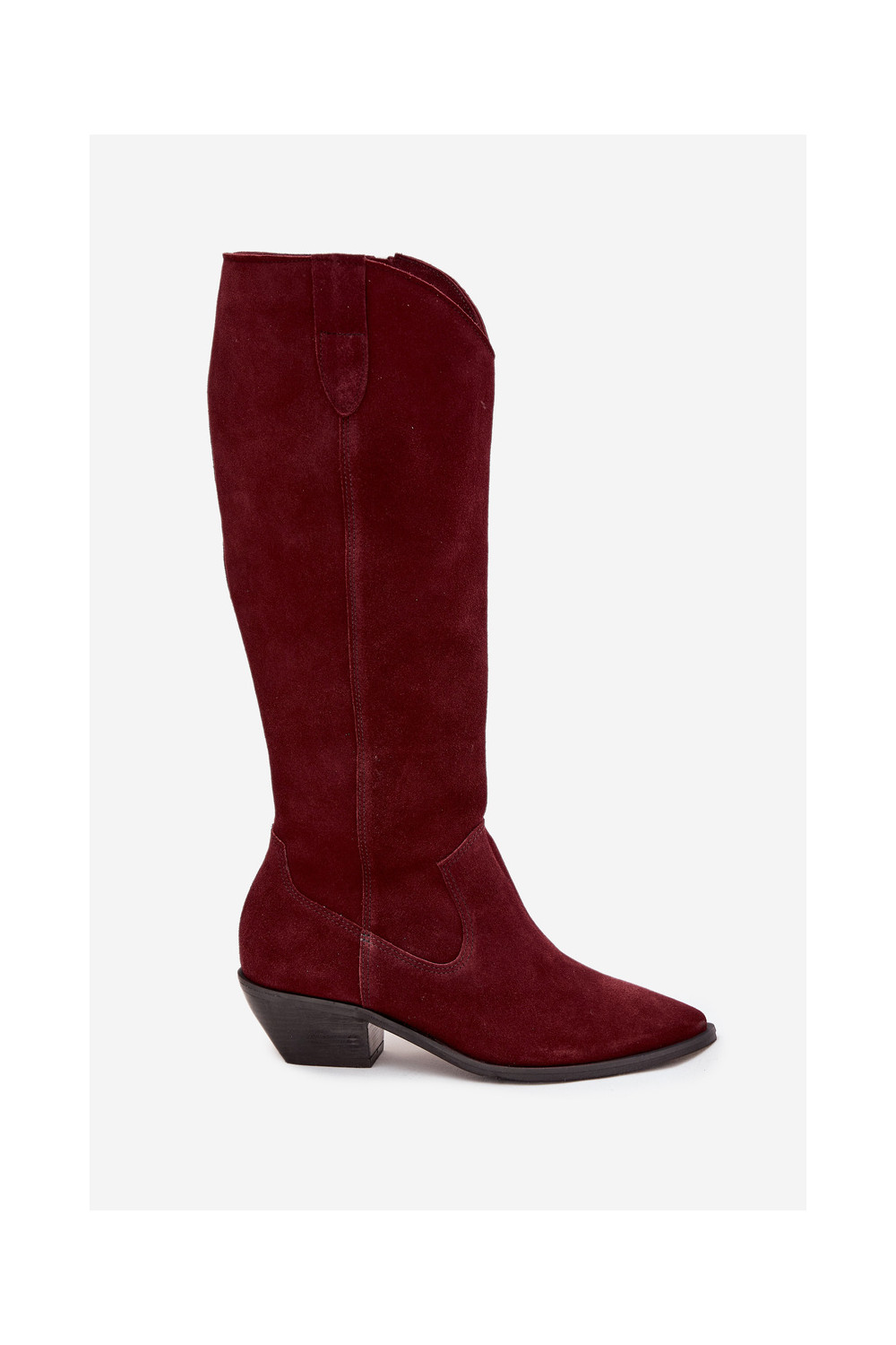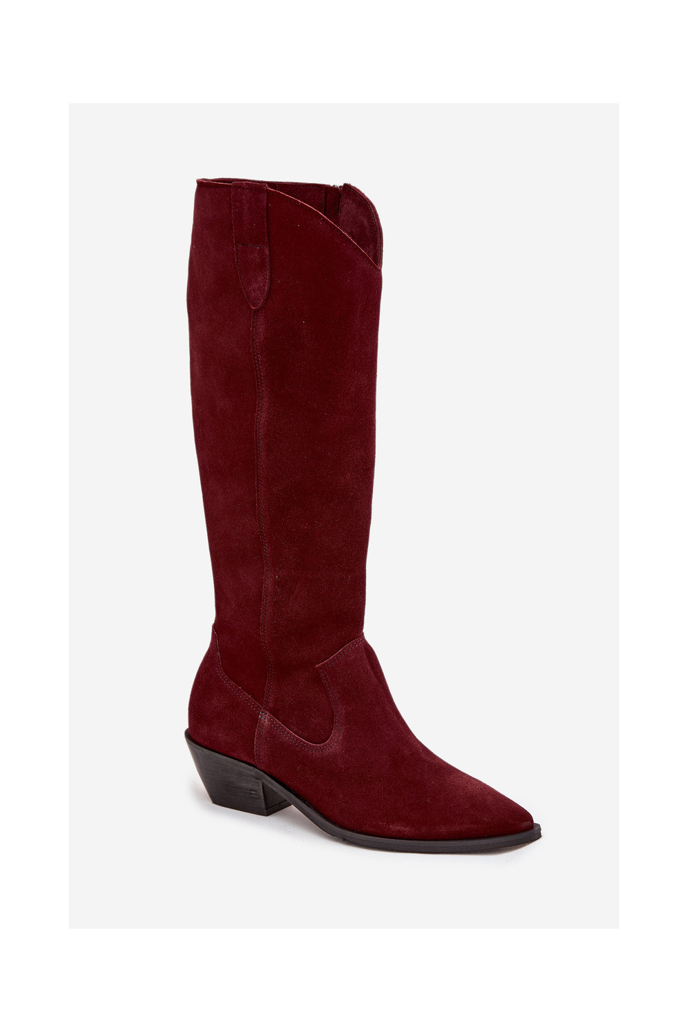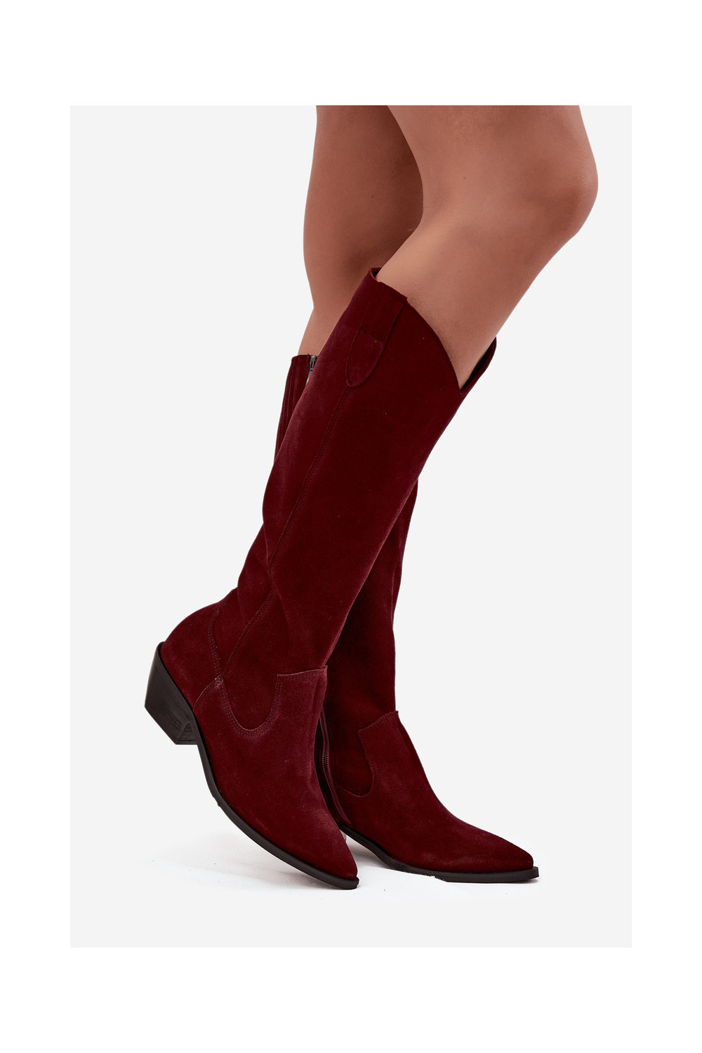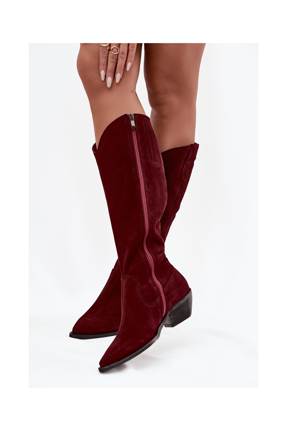 dlouhé boty kovbojský styl Z Naturalnego Zamszu zateplené Zazoo 4225 vínová