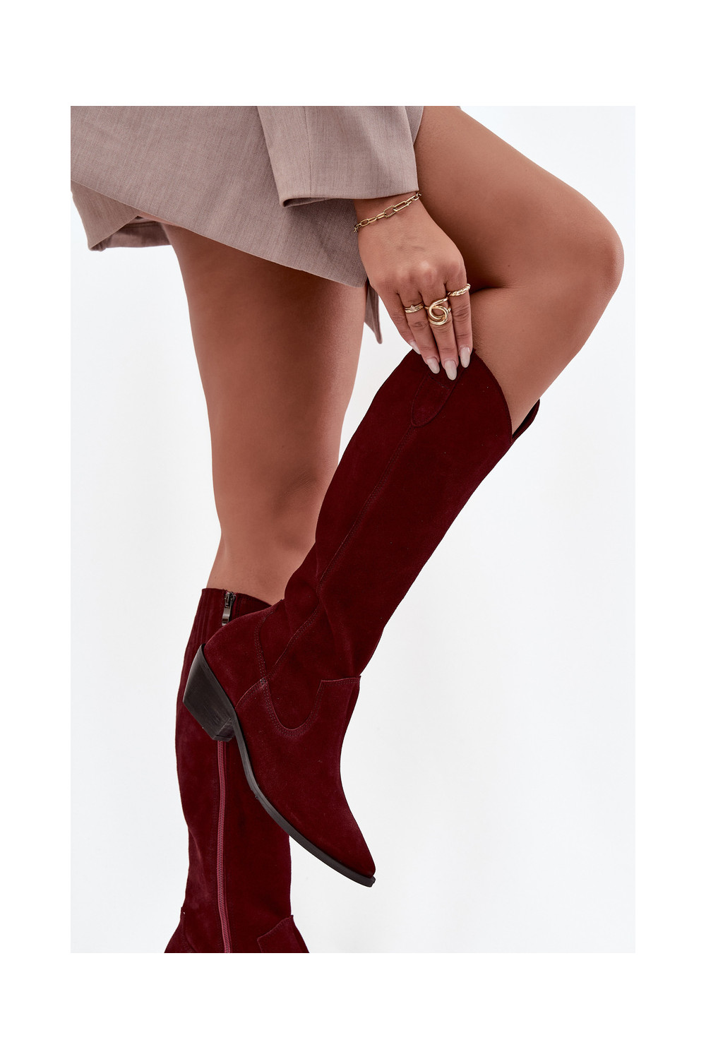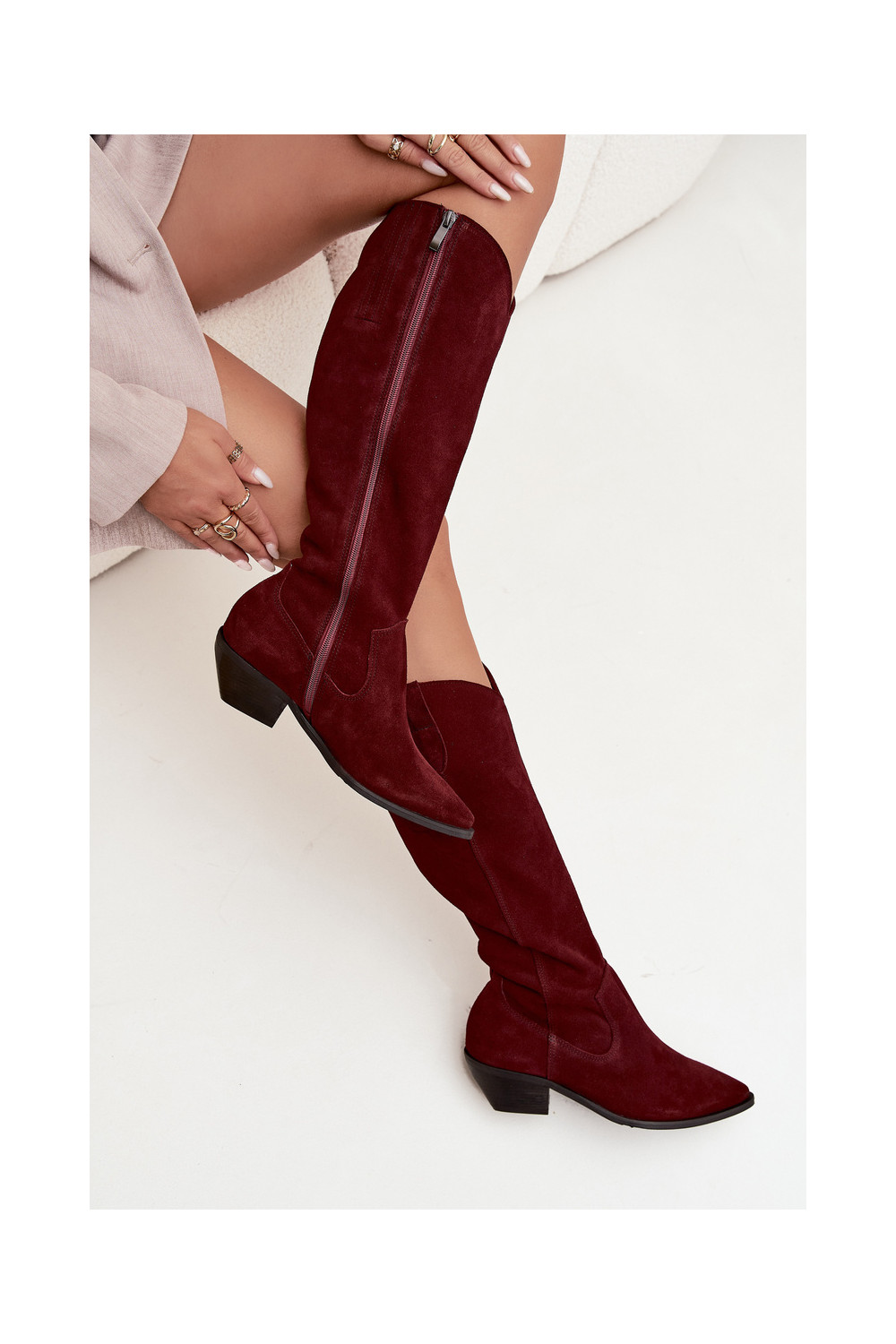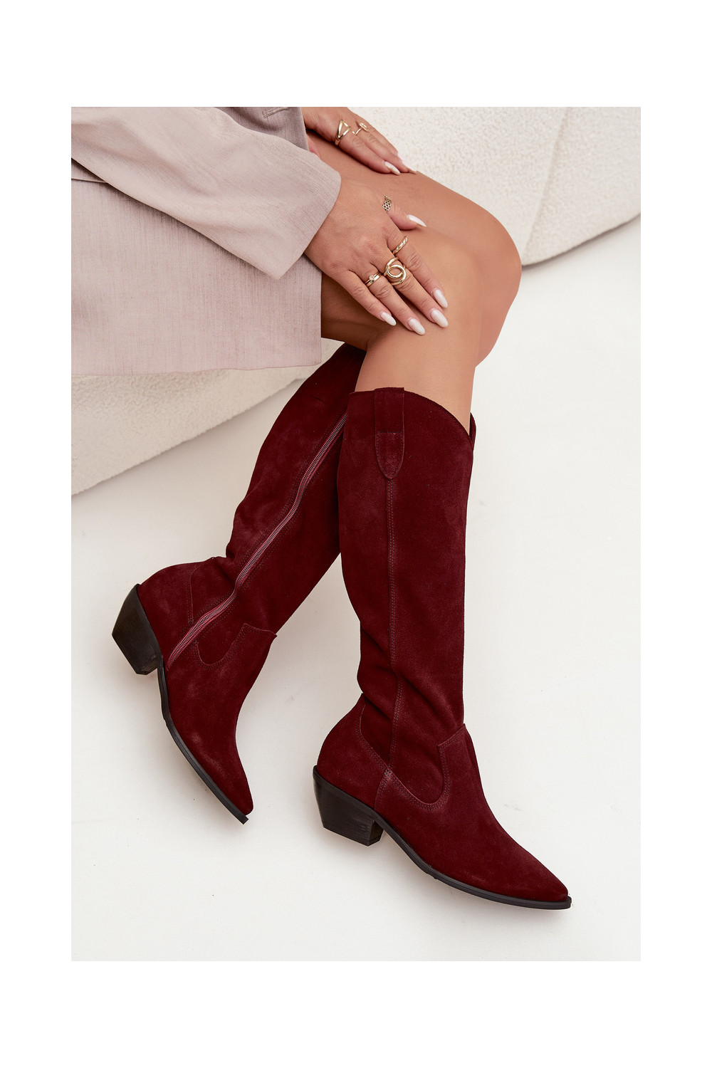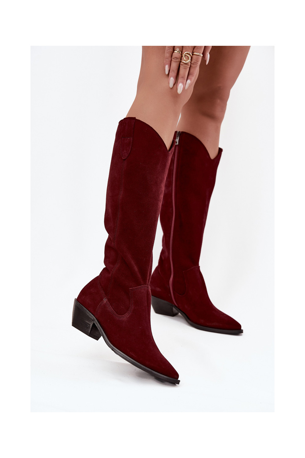 dlouhé boty kovbojský styl Z Naturalnego Zamszu zateplené Zazoo 4225 vínová