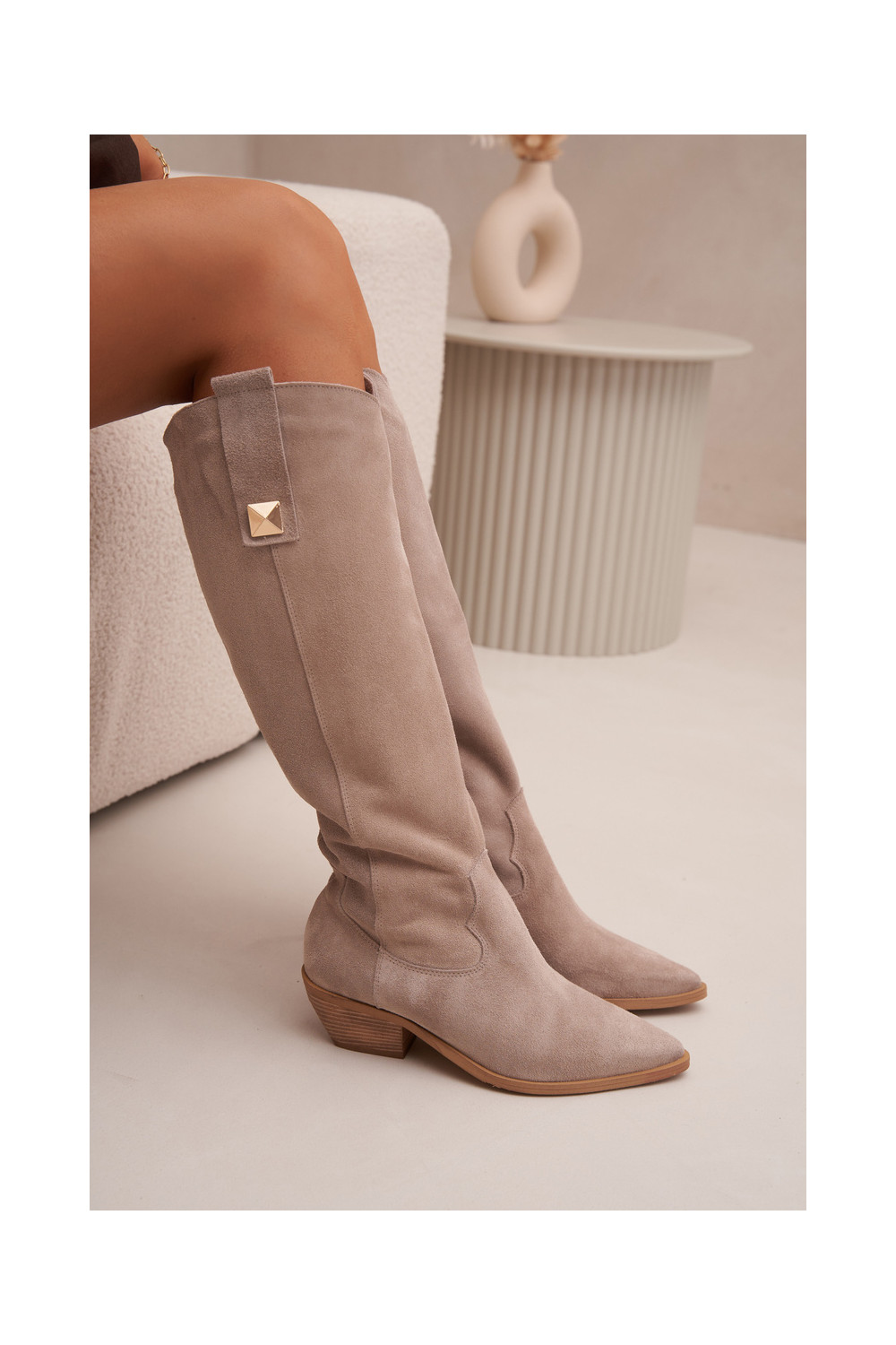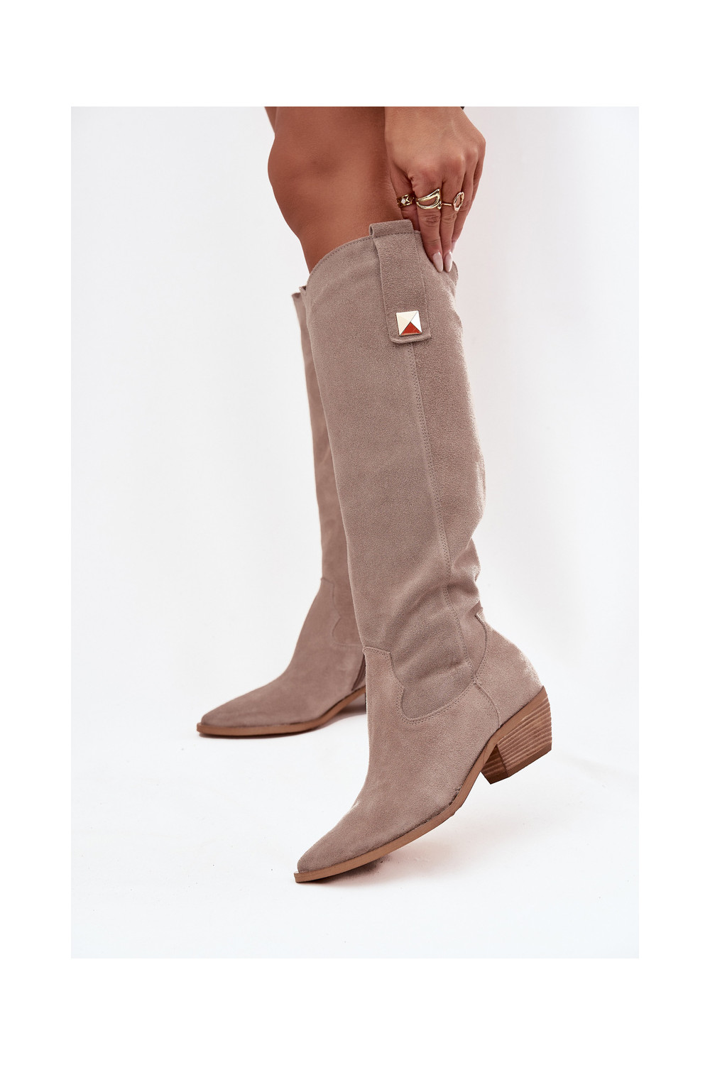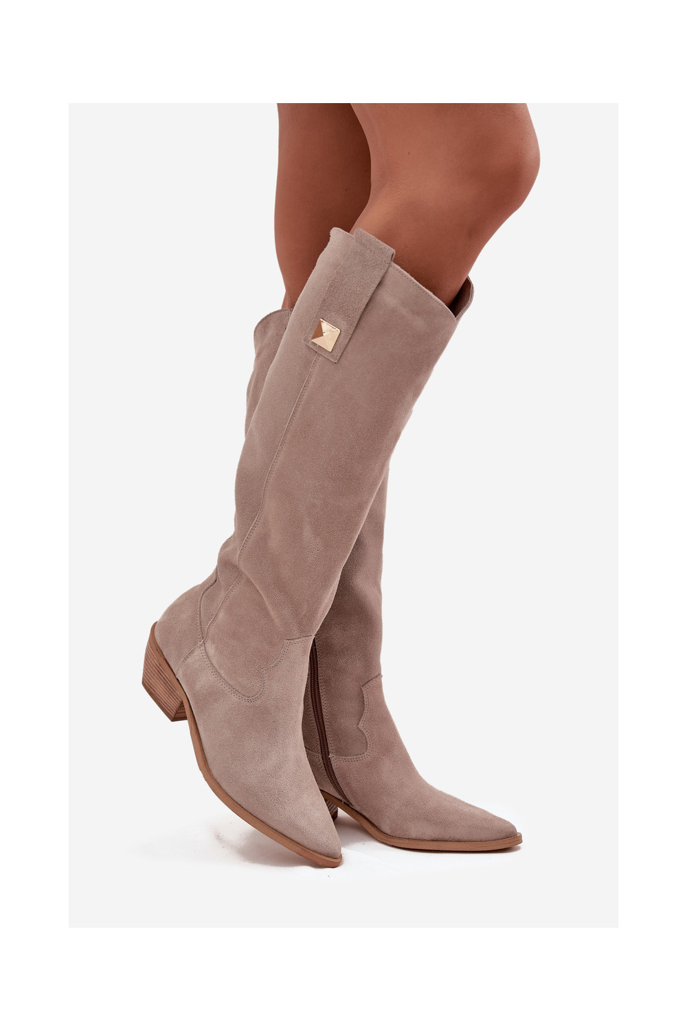 ze semiše dlouhé boty kovbojský styl zateplené Zazoo 4224 cappuccino