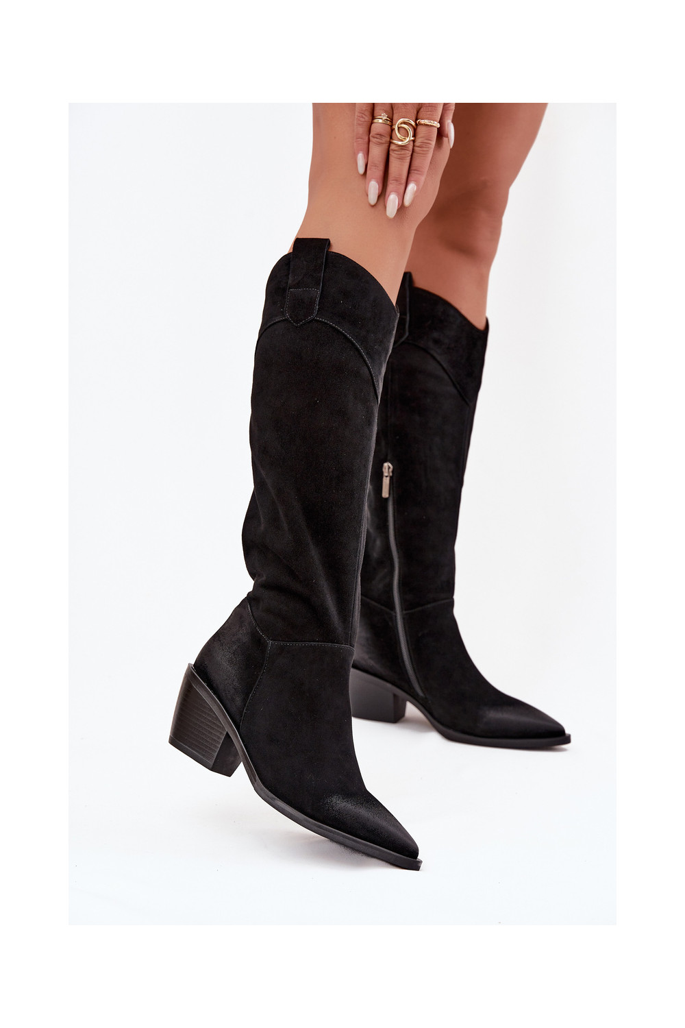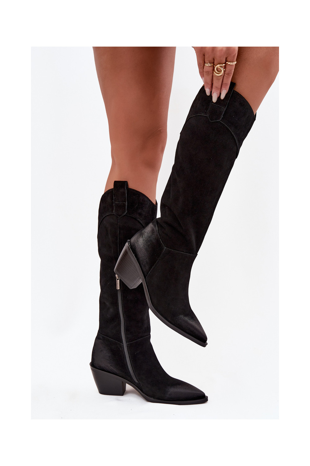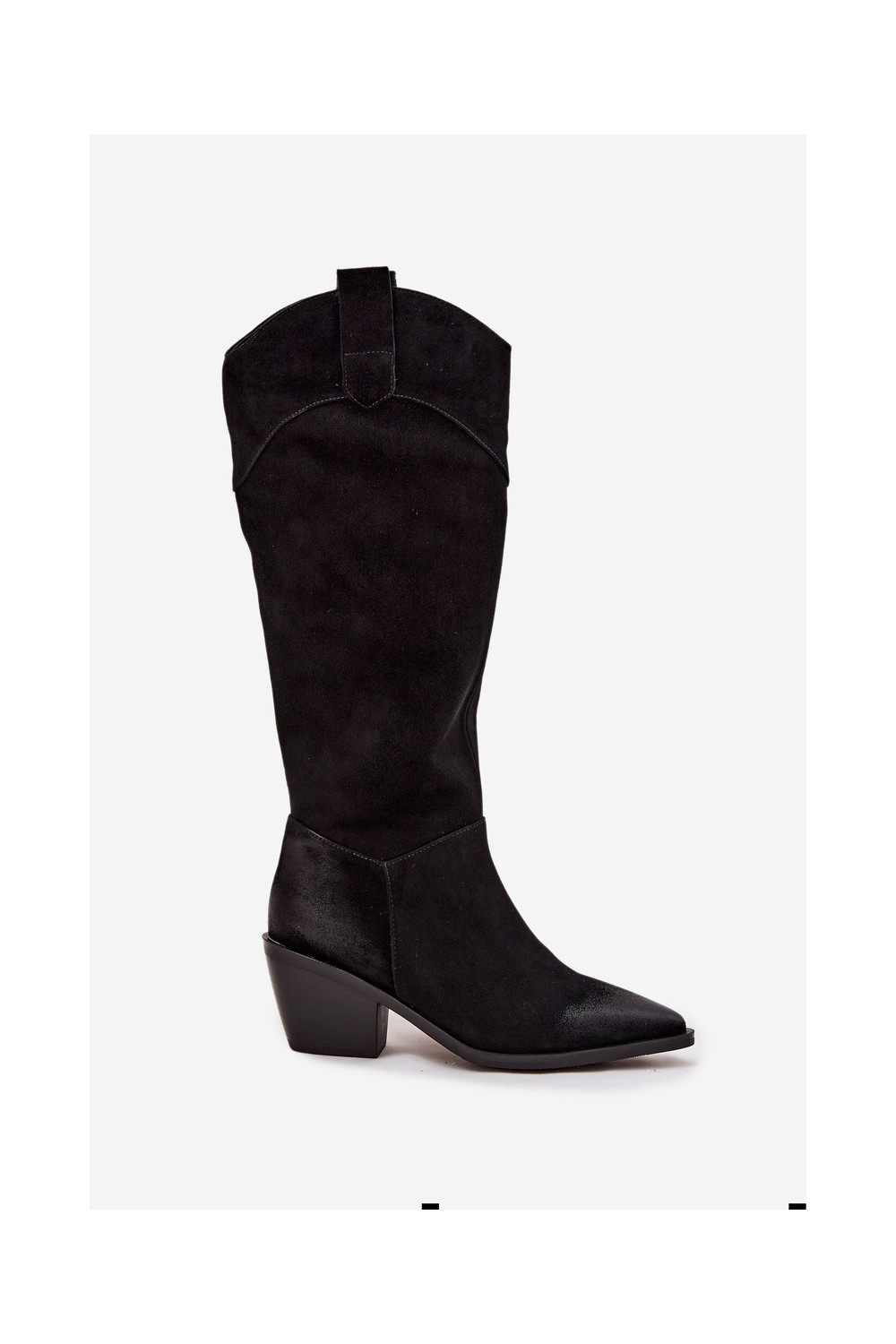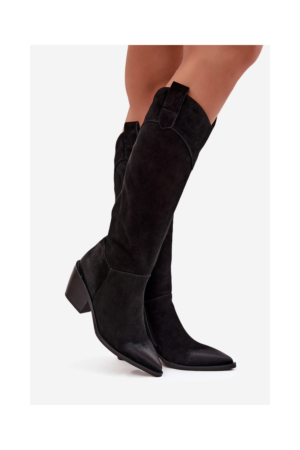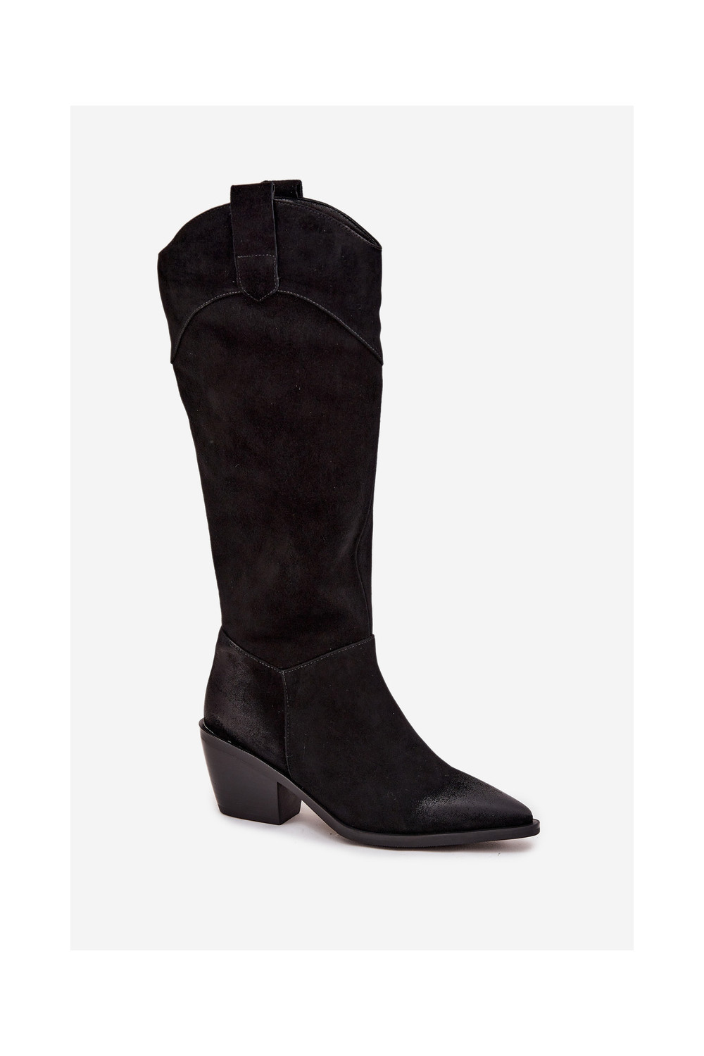 dlouhé boty kovbojský styl  s podpatky Z Naturalnego Zamszu Artiker 57C0232 Černé