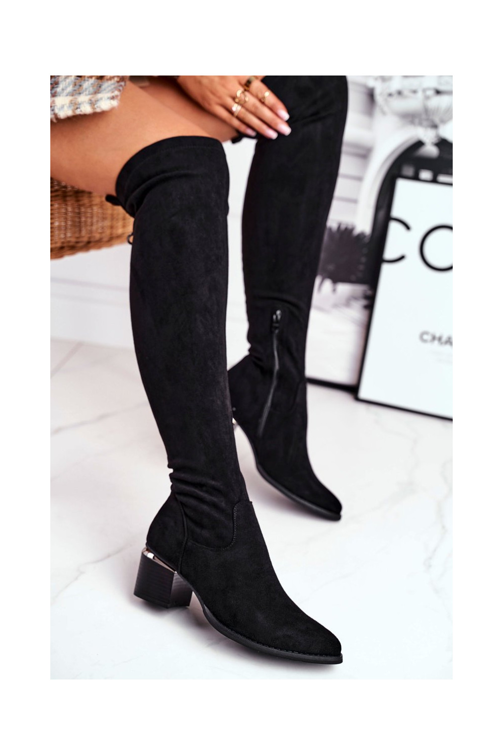 Kozačky nad kolena z eko semiše Černé Can't Stop