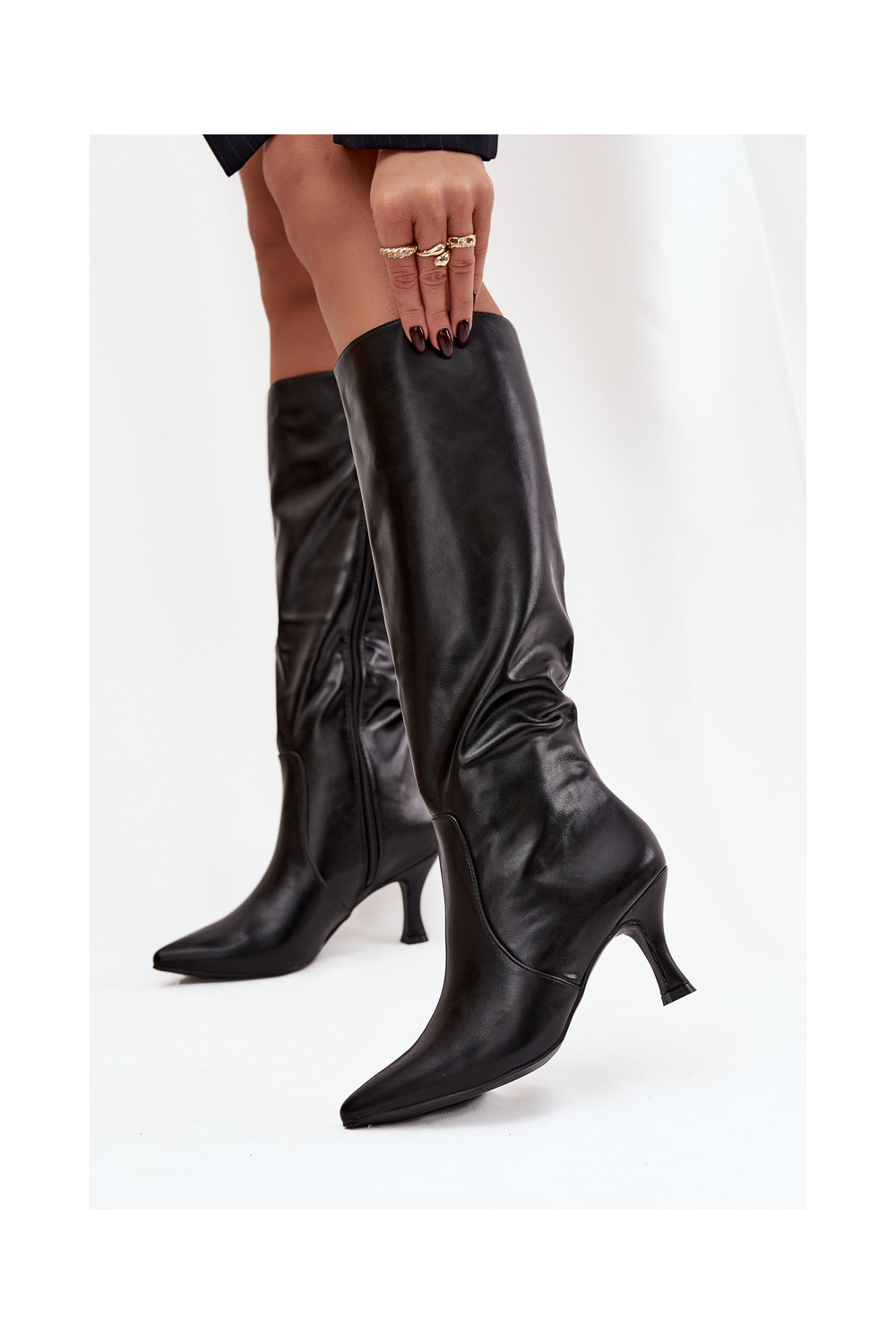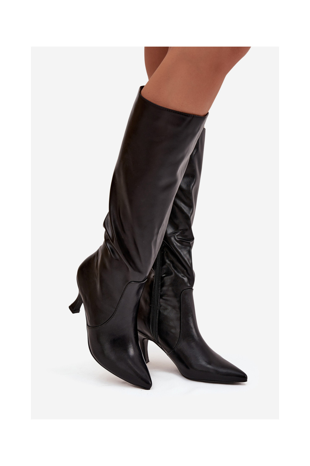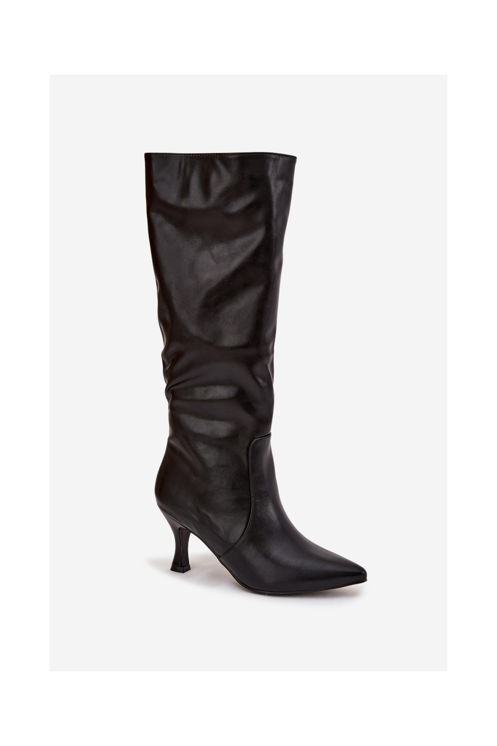 dámské dlouhé boty s tenkými podpatky z ekologické kůže Černé Karella