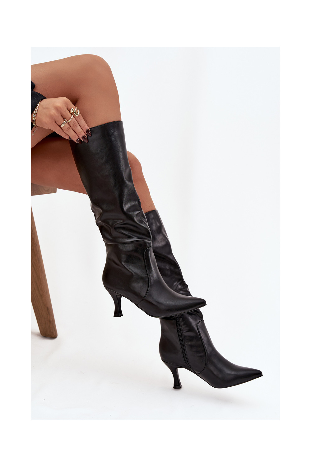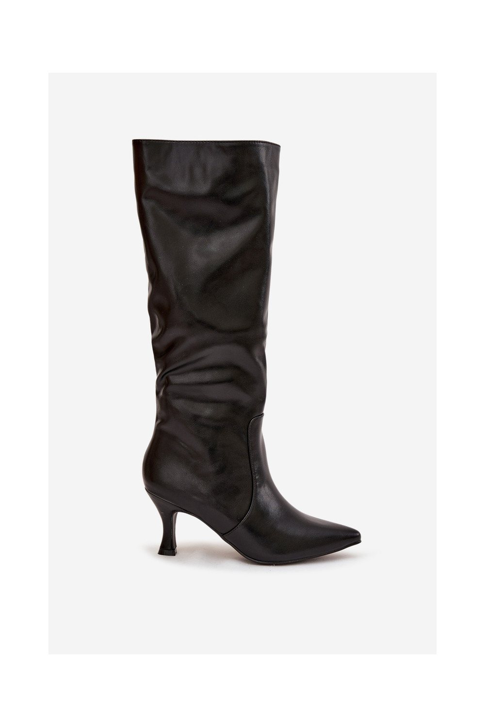 dámské dlouhé boty s tenkými podpatky z ekologické kůže Černé Karella