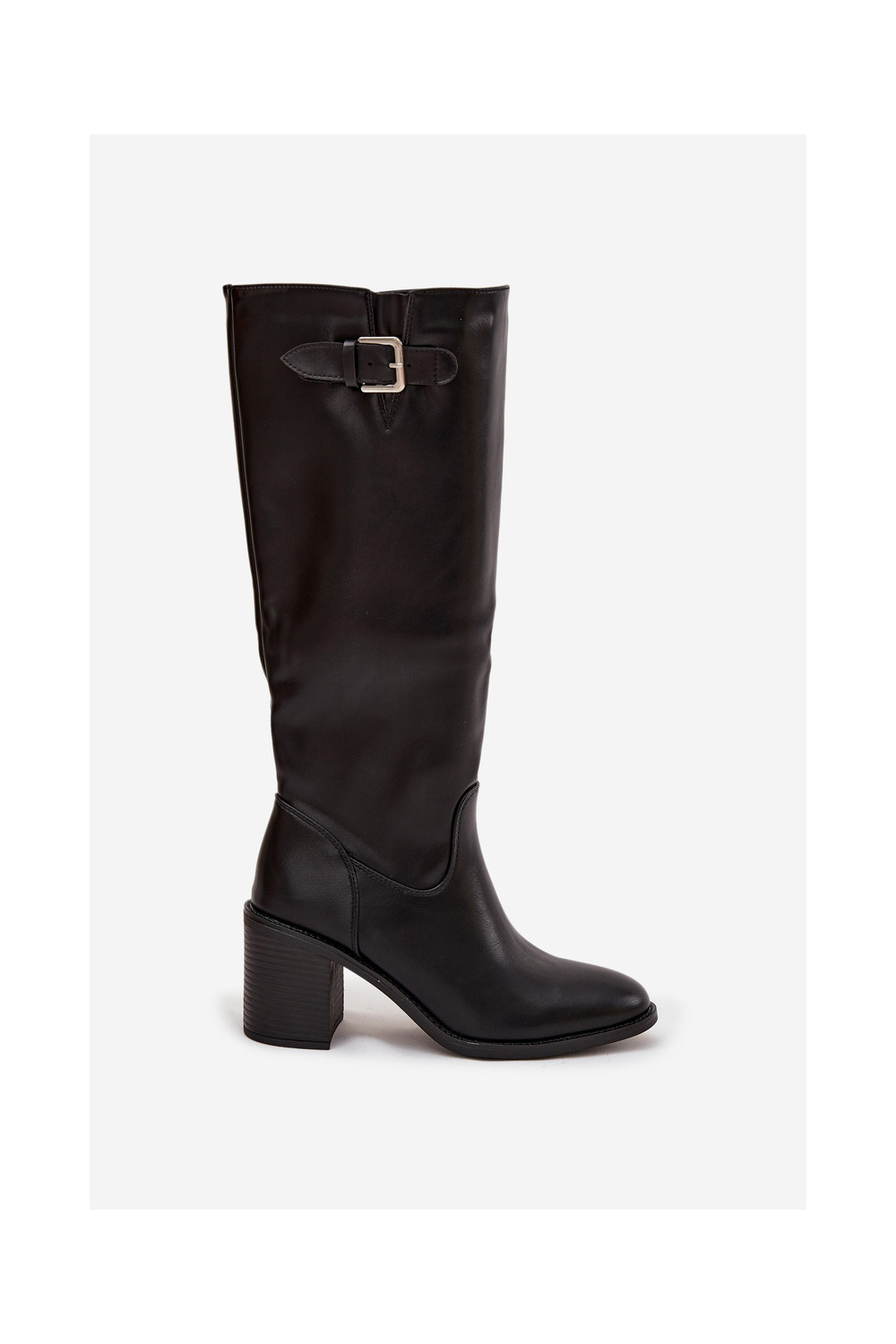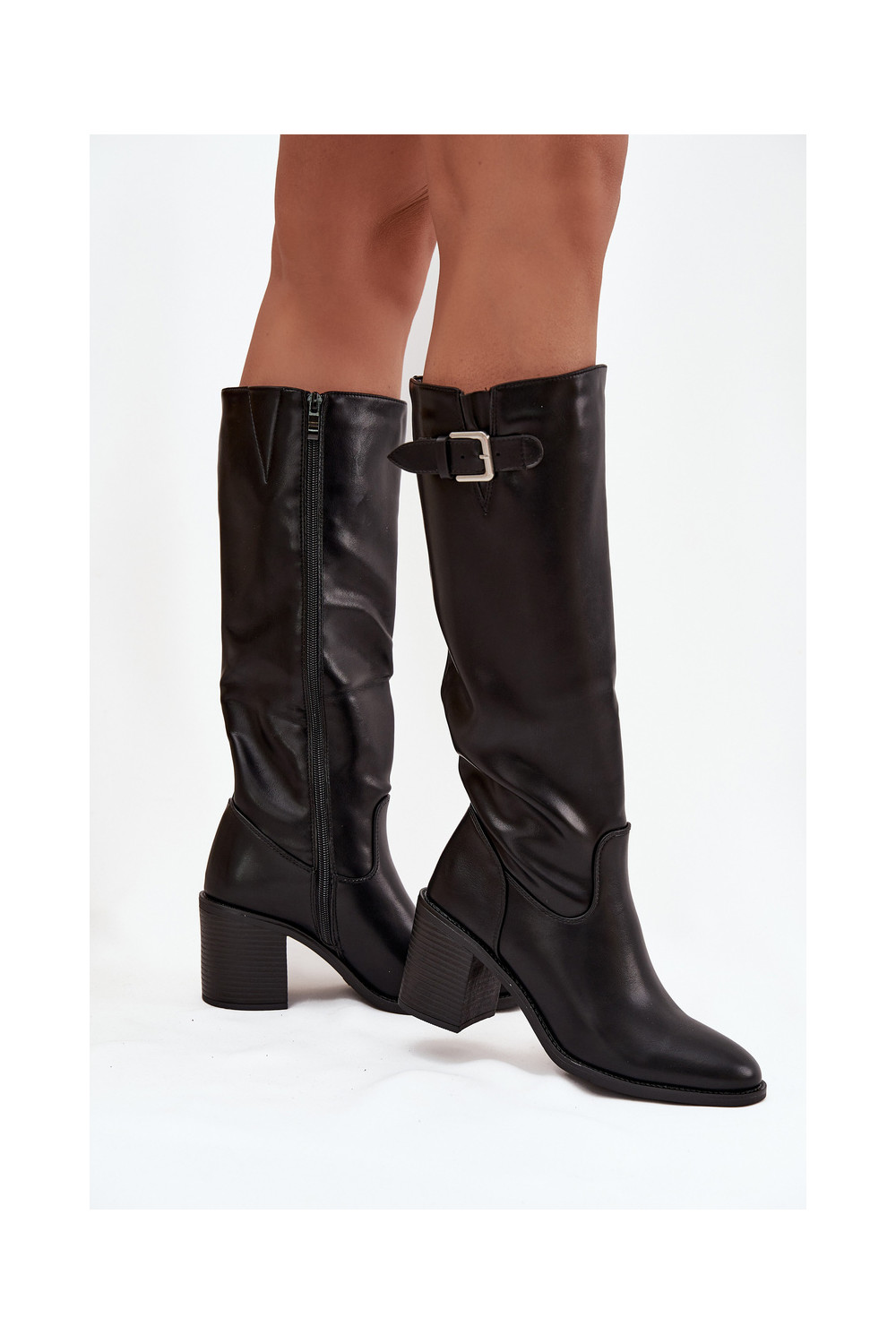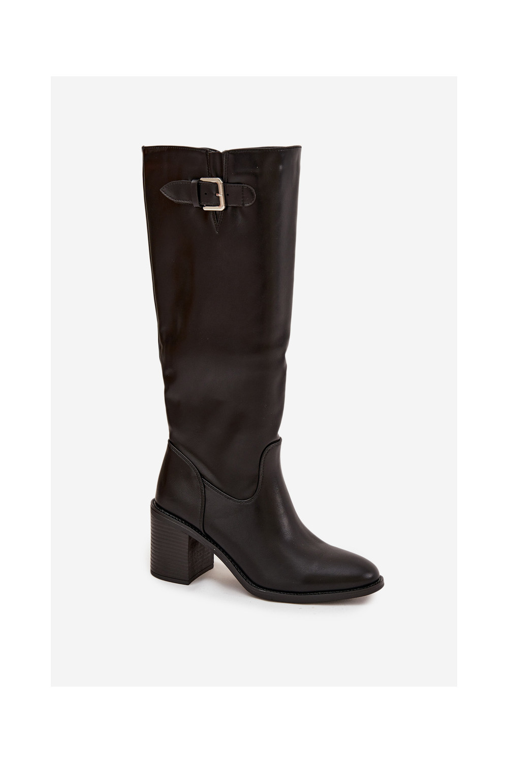 dámské dlouhé boty s podpatky s přezkami Černé Brenira