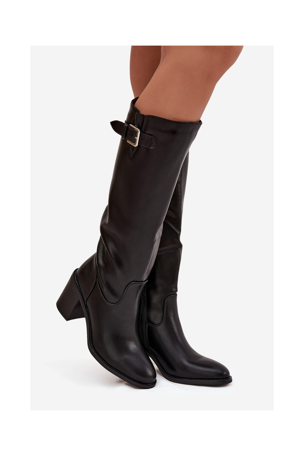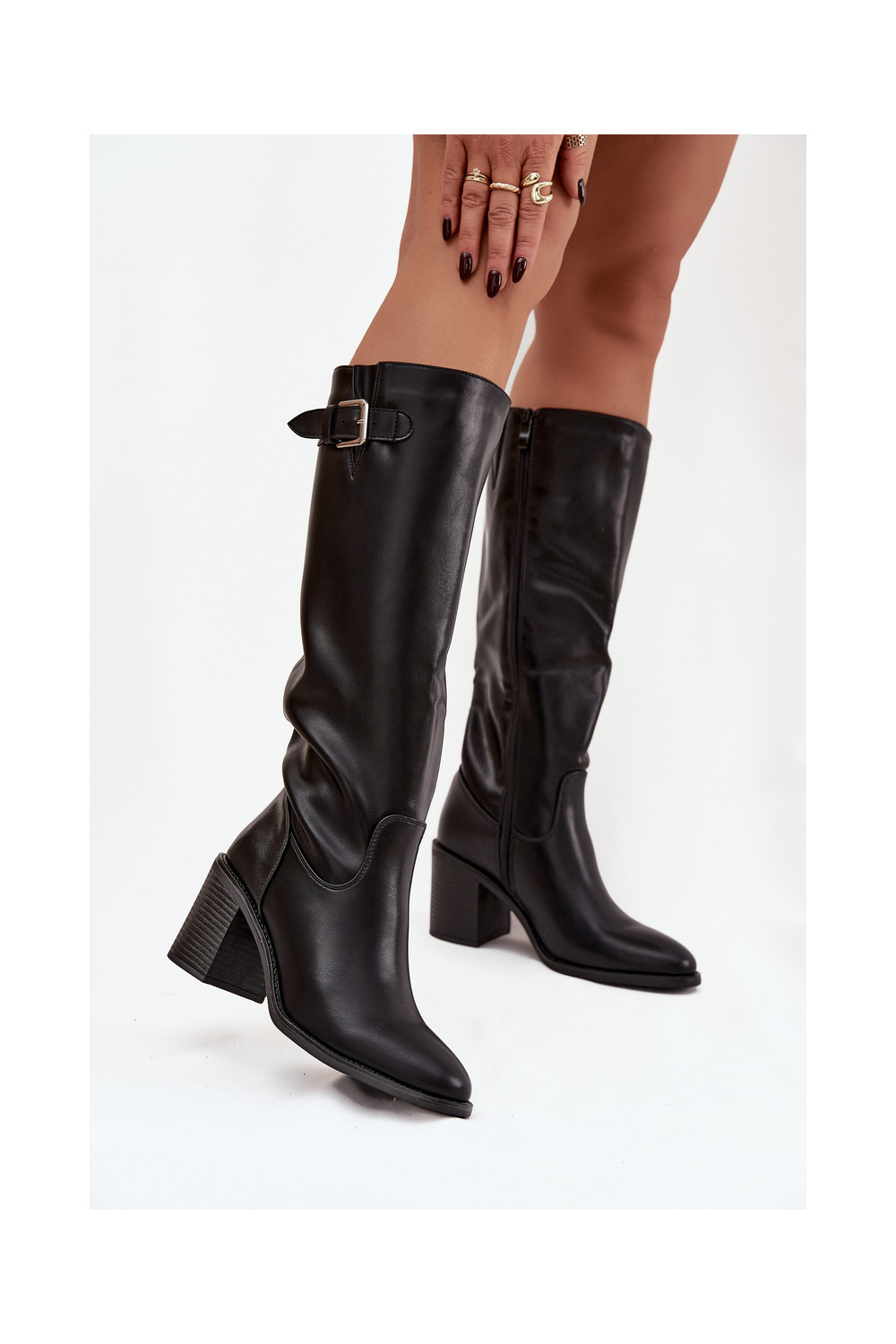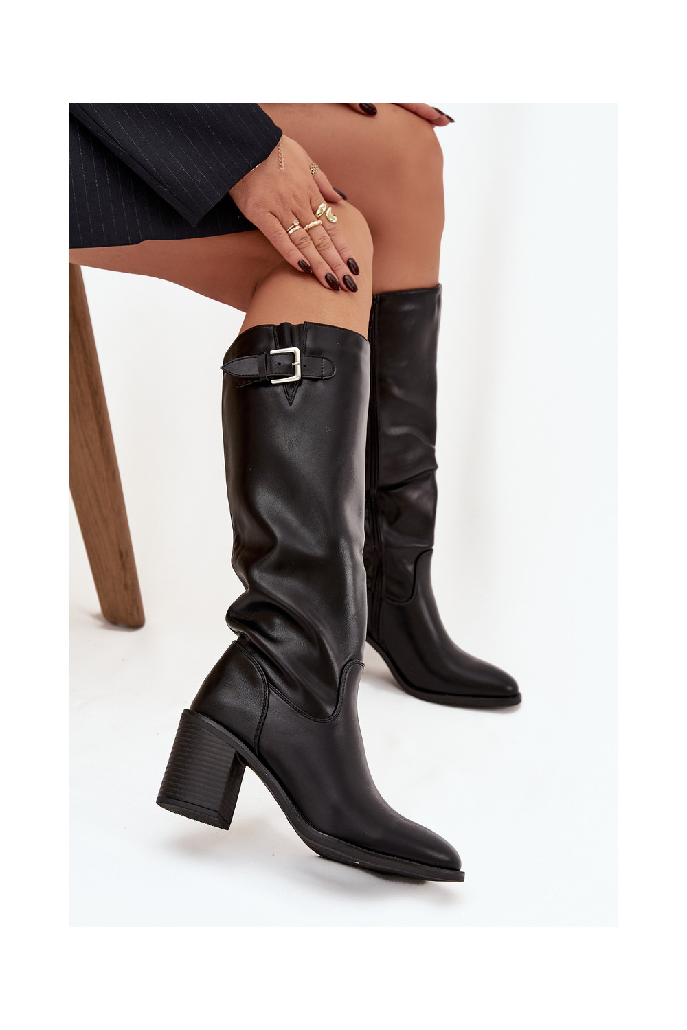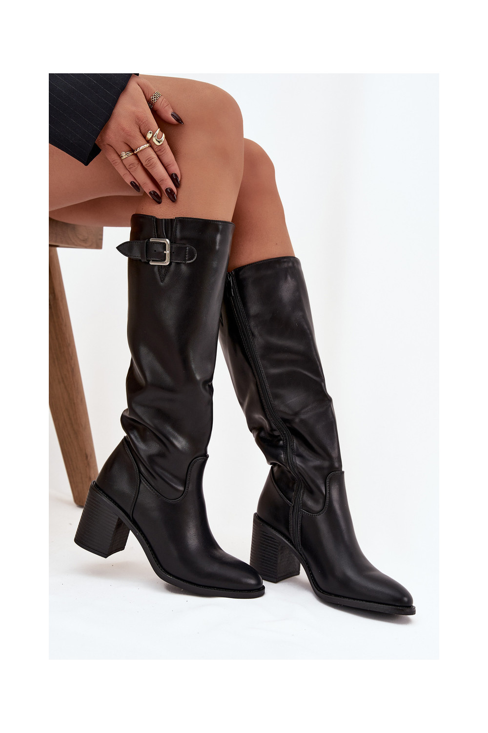 dámské dlouhé boty s podpatky s přezkami Černé Brenira