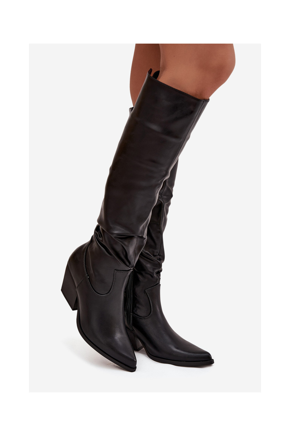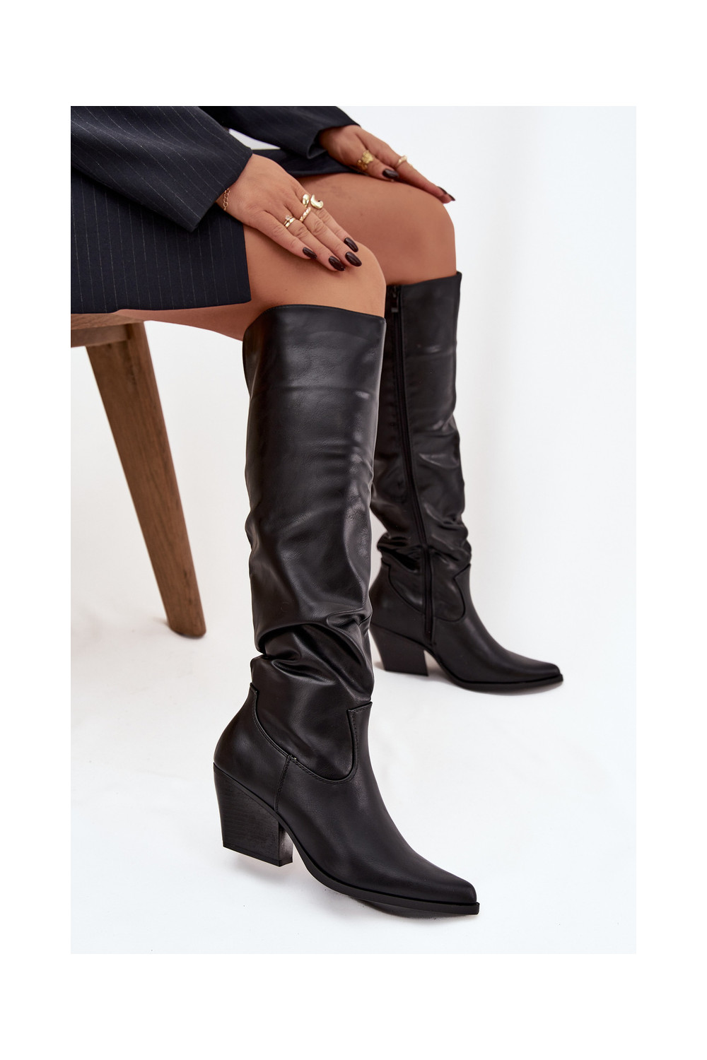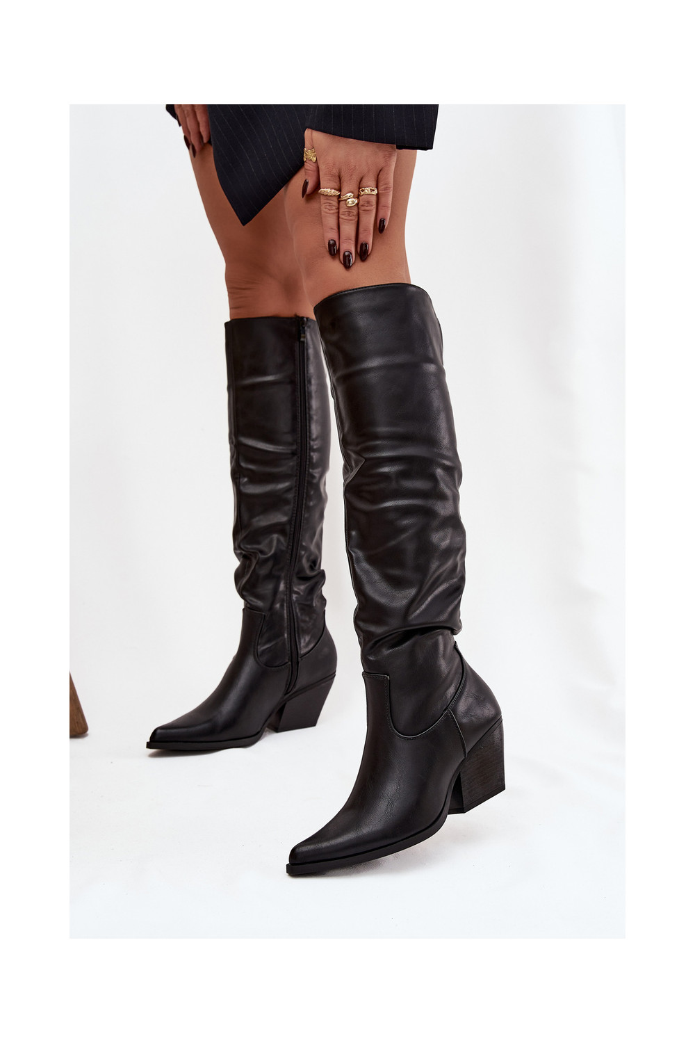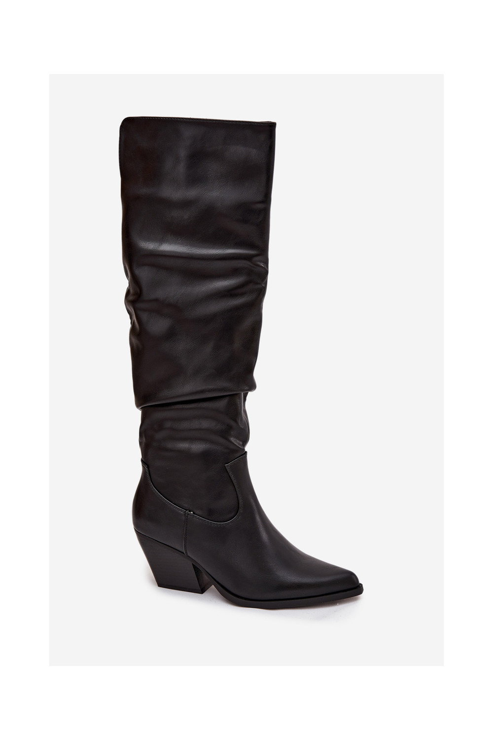 dlouhé boty kovbojský styl s podpatky zateplené Černé Rosvian