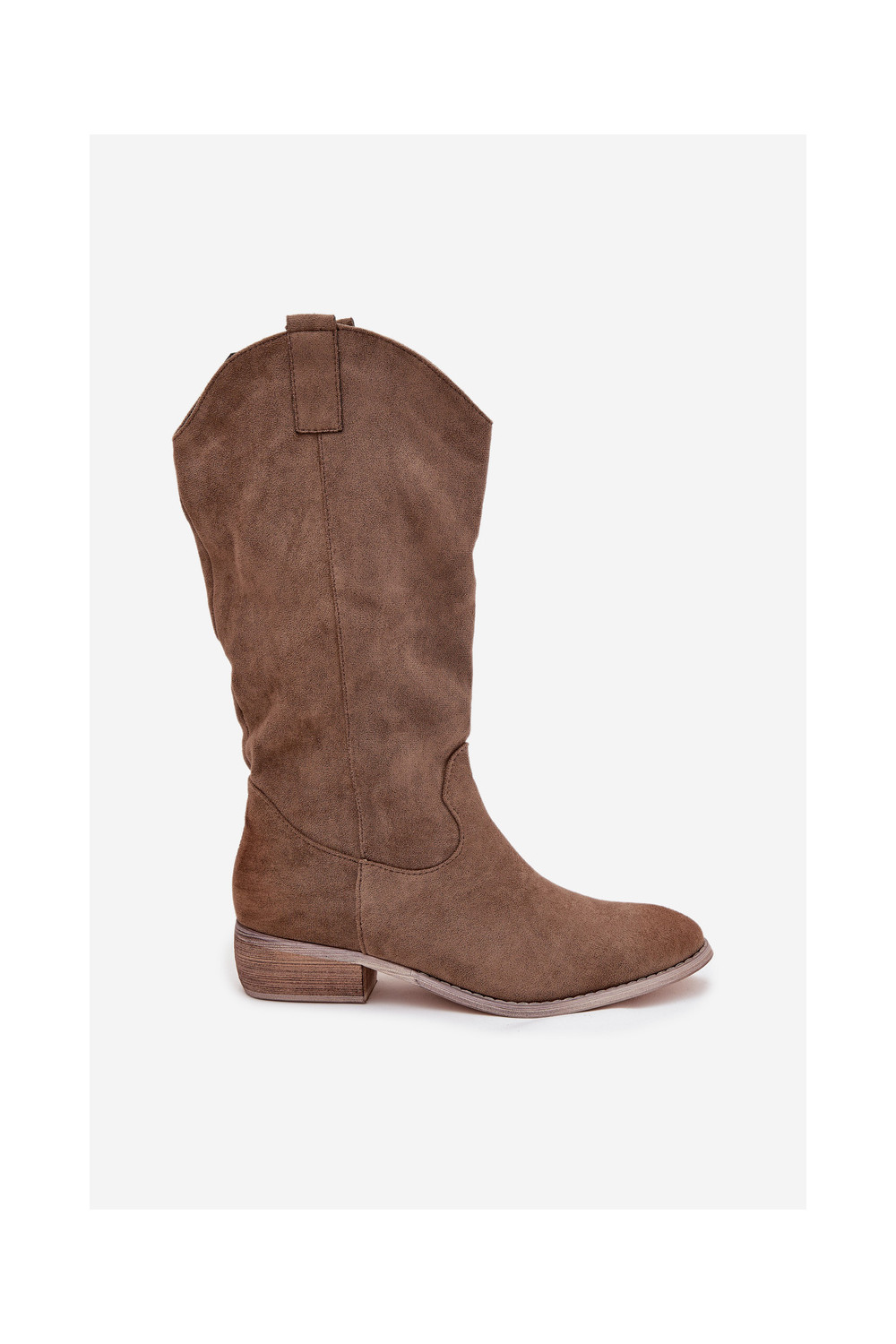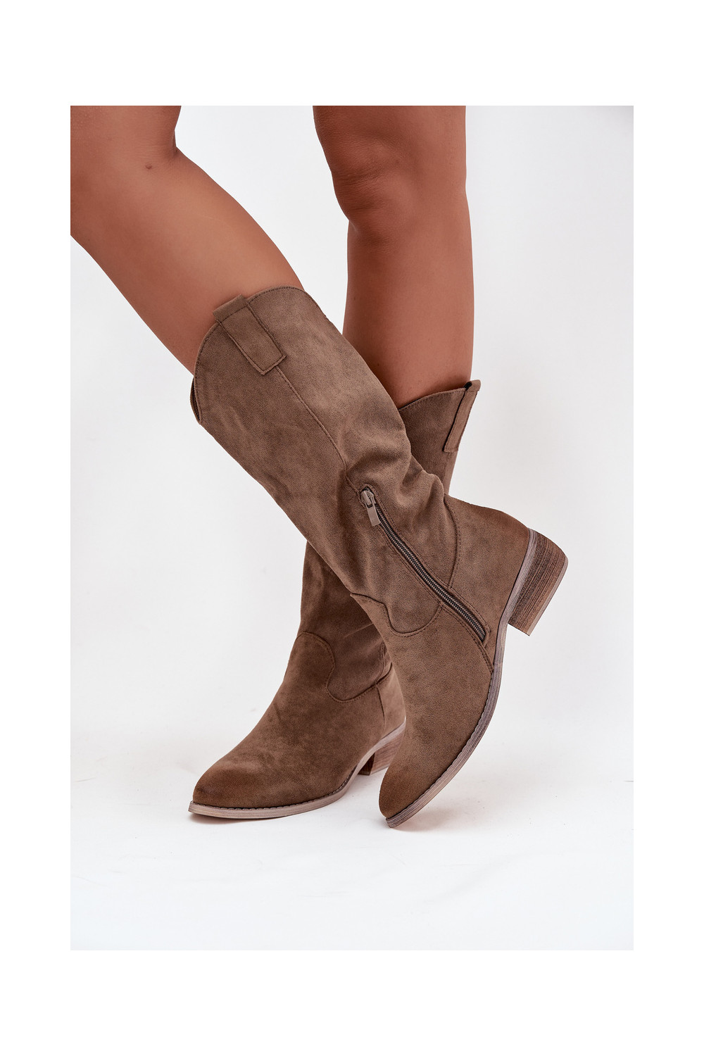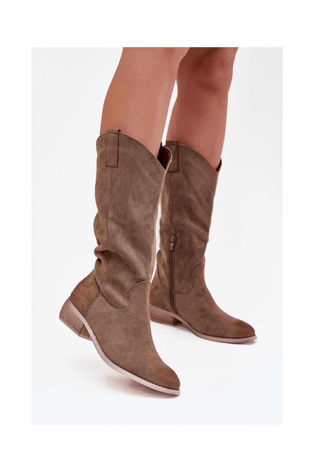 dlouhé boty kovbojský styl na nízkém podpatku Z z eko semišeu béžové Cherrie
