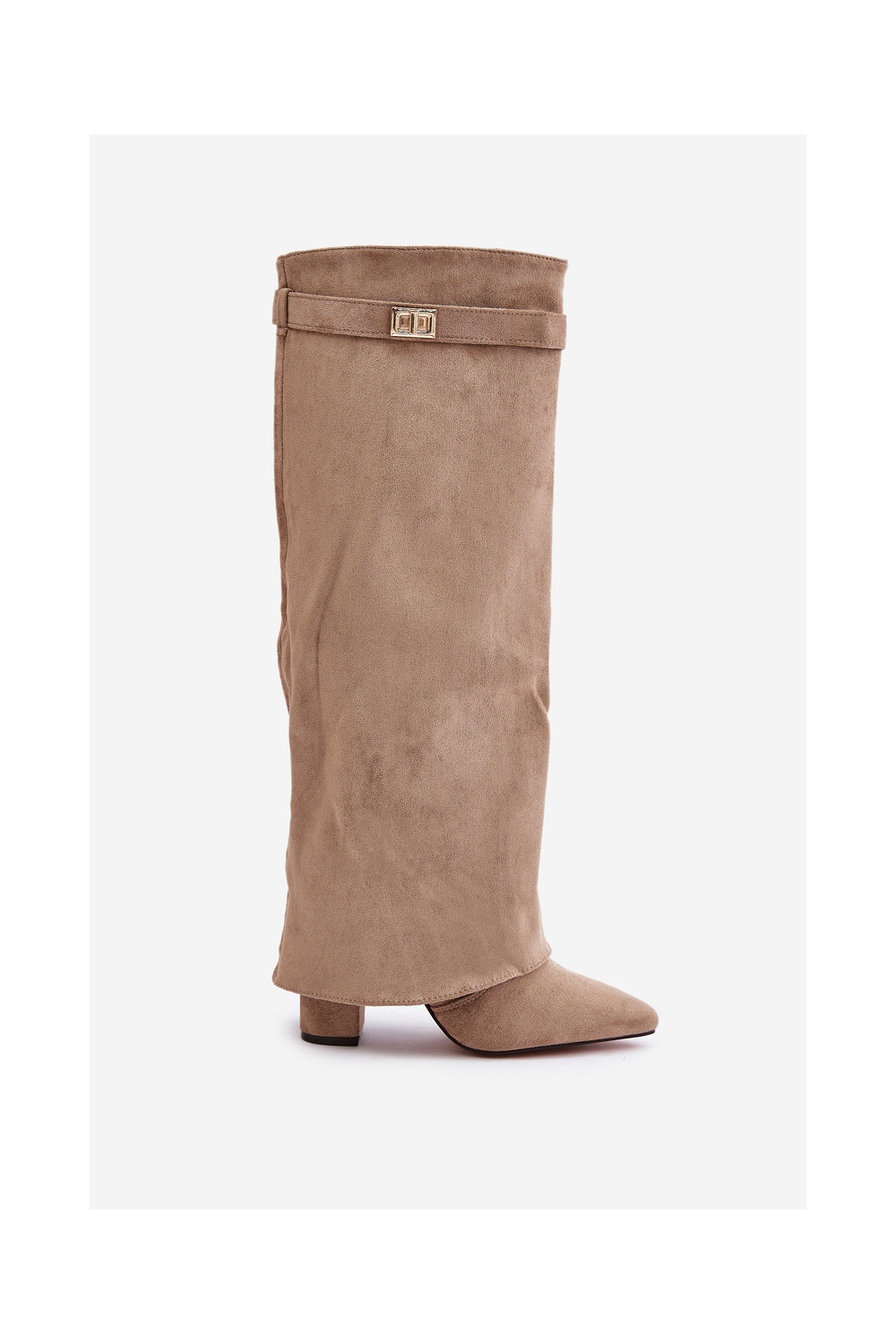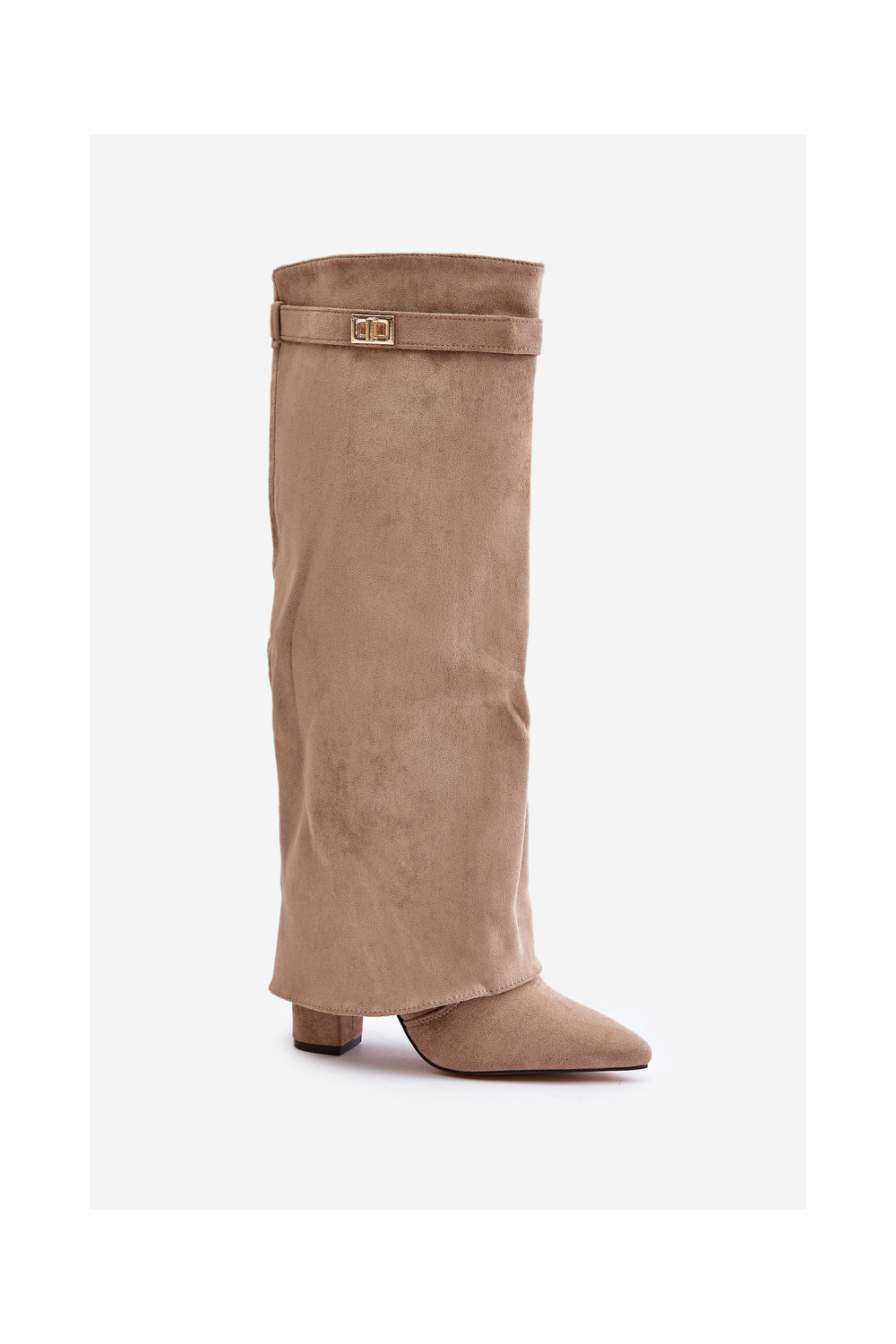 dlouhé boty s podpatky Z Wywiniętą Cholewką zateplené béžové Urelli