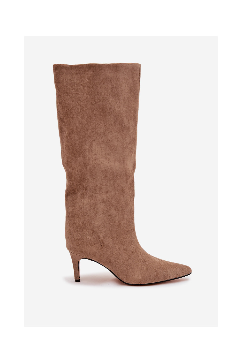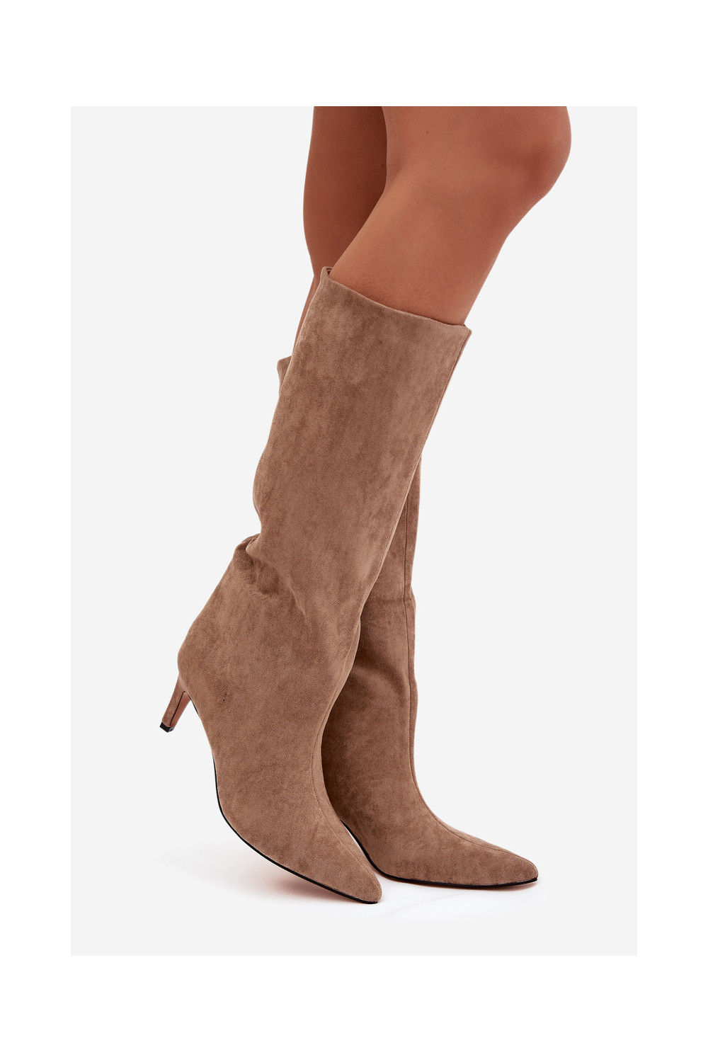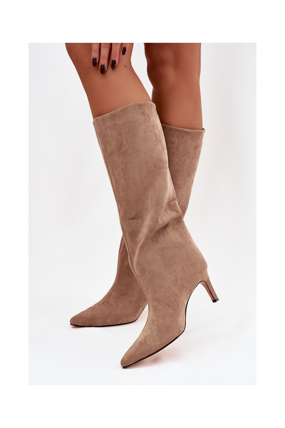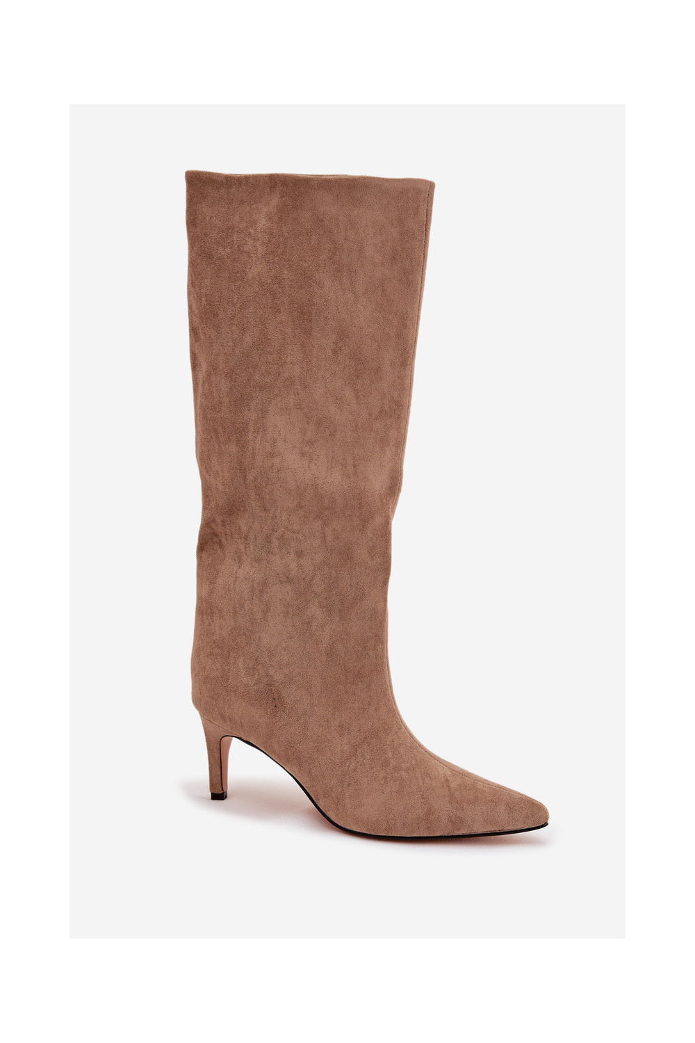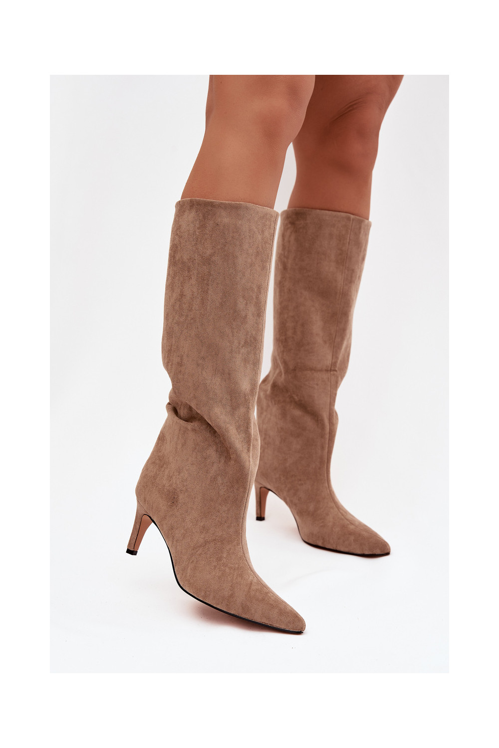 dámské dlouhé boty Slip-on vzor zateplené s tenkými podpatky béžové Olivienne