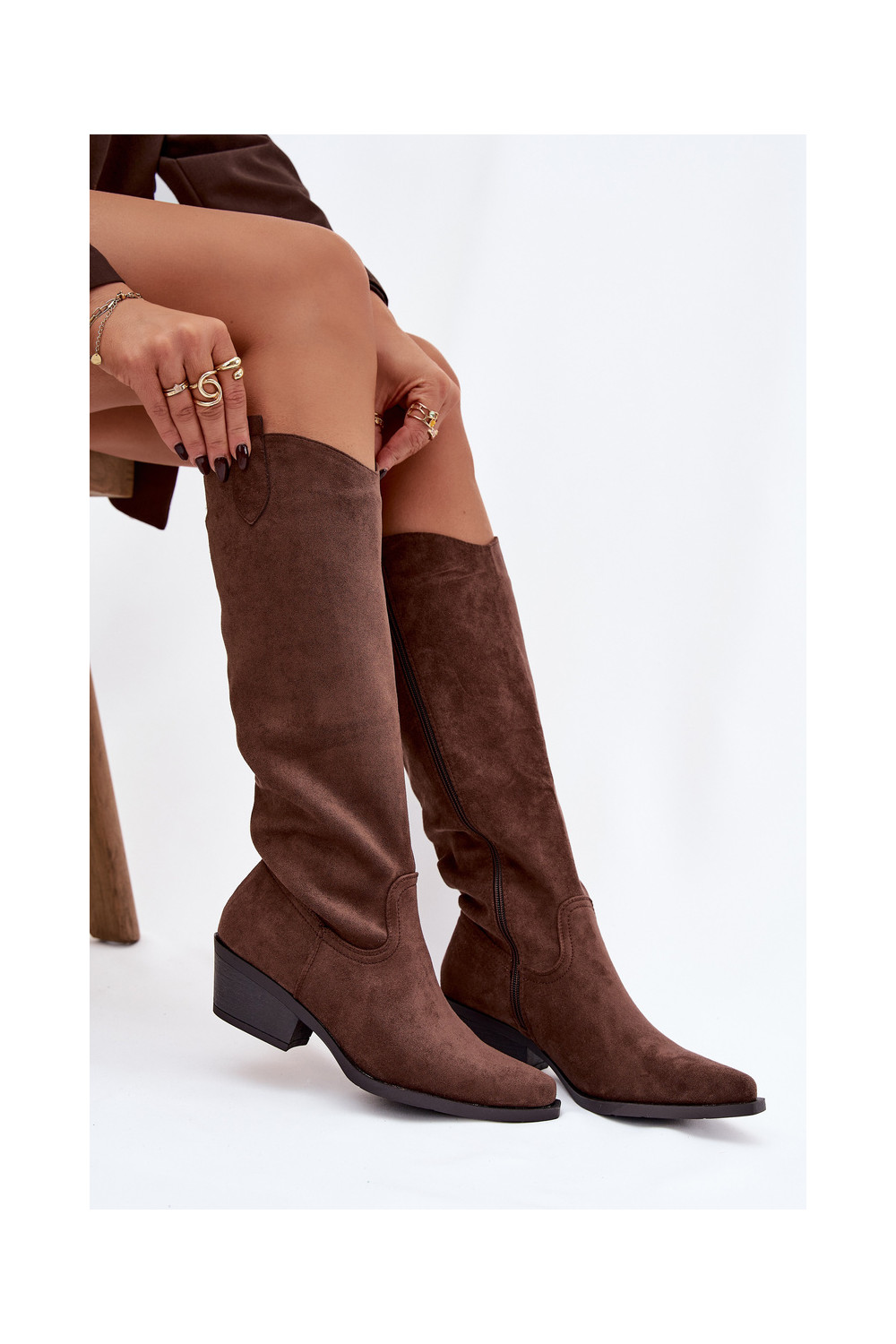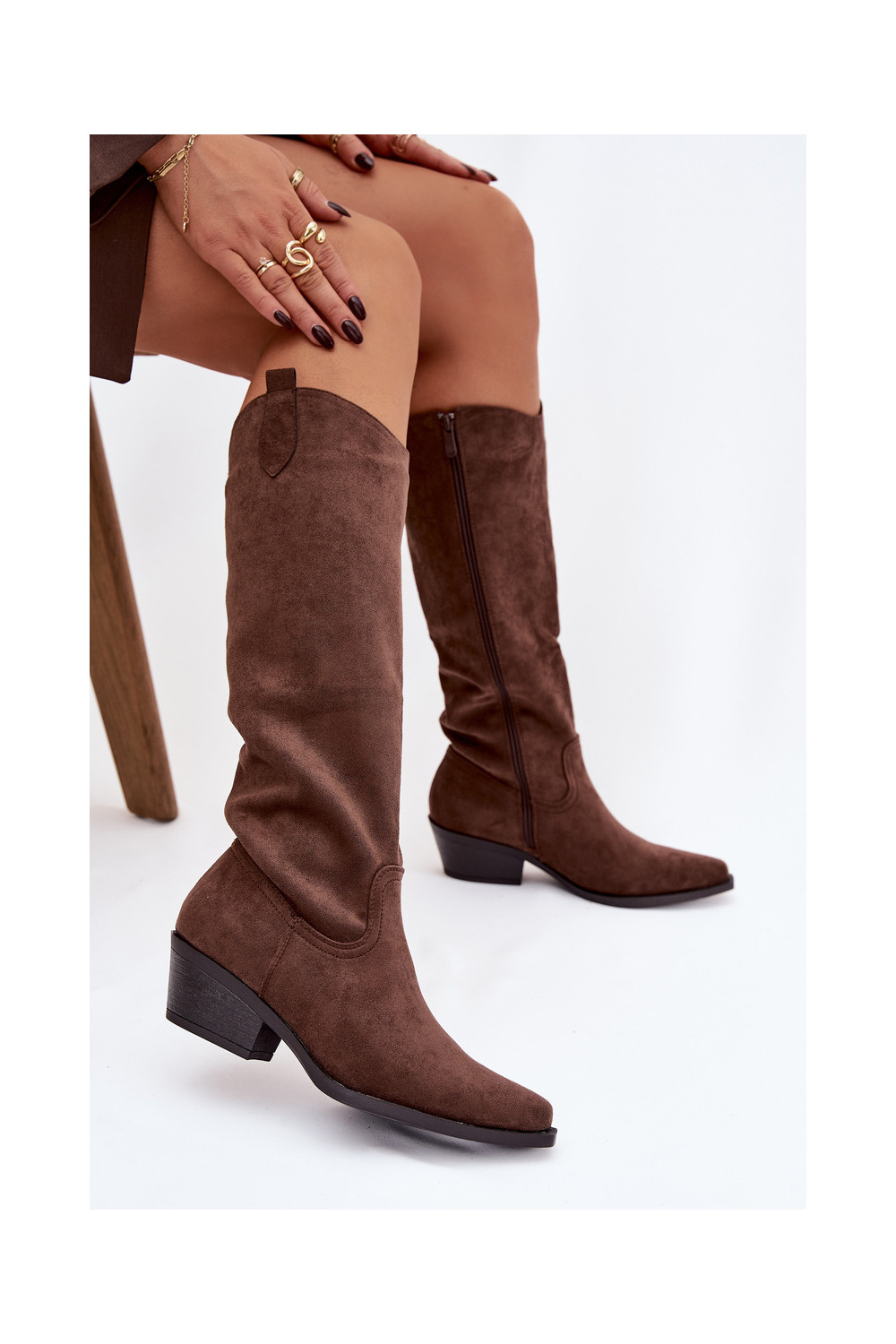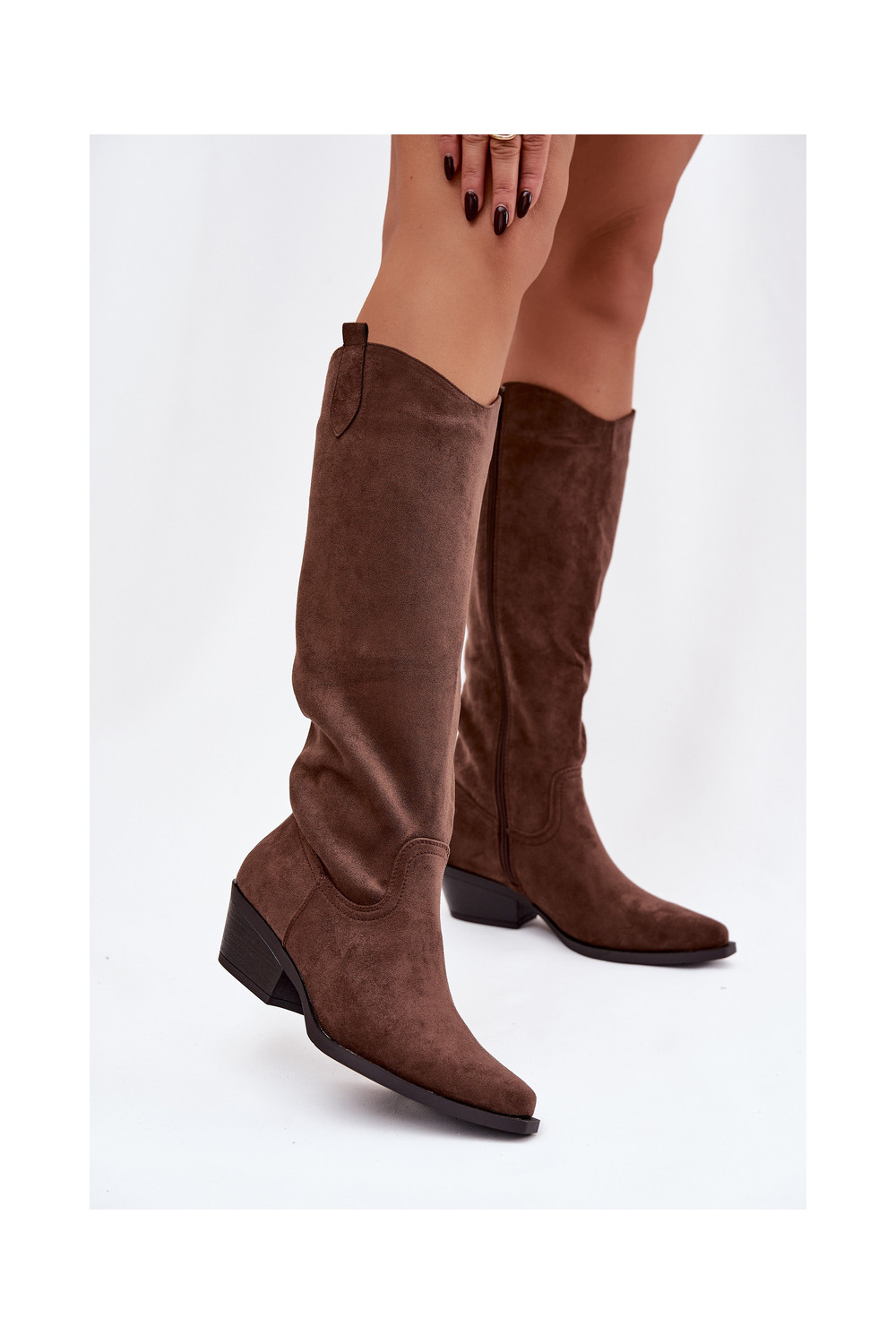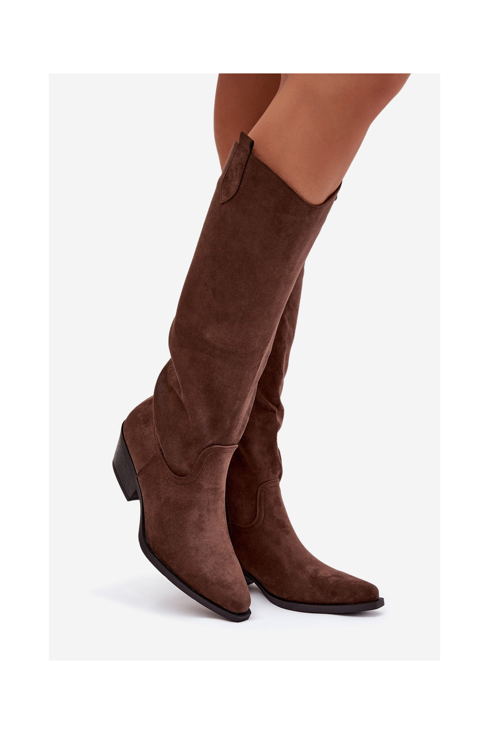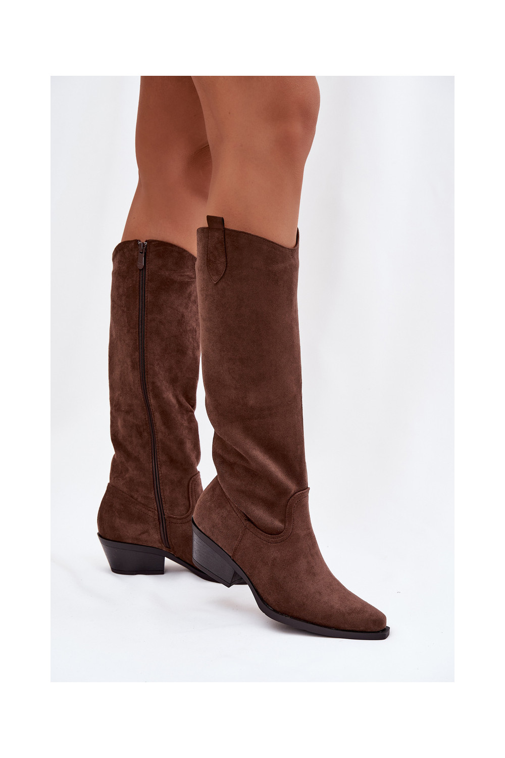 dlouhé boty kovbojský styl s podpatky Z z eko semišeu hnědá Esmira