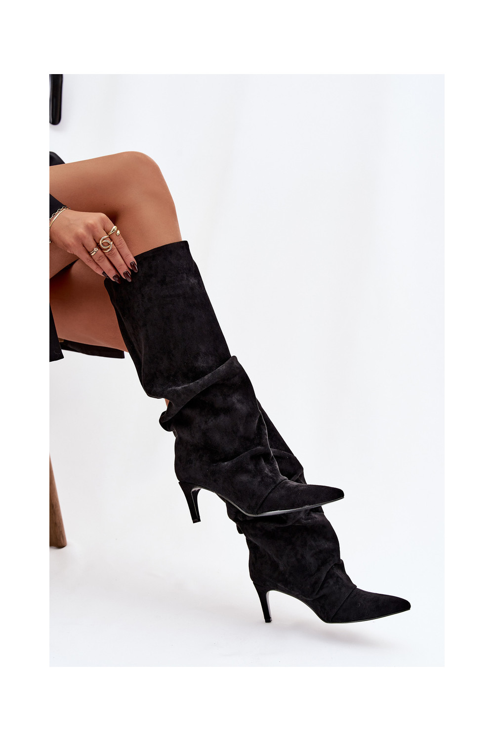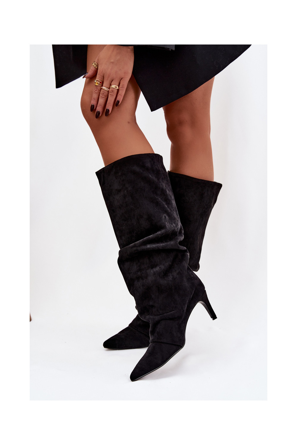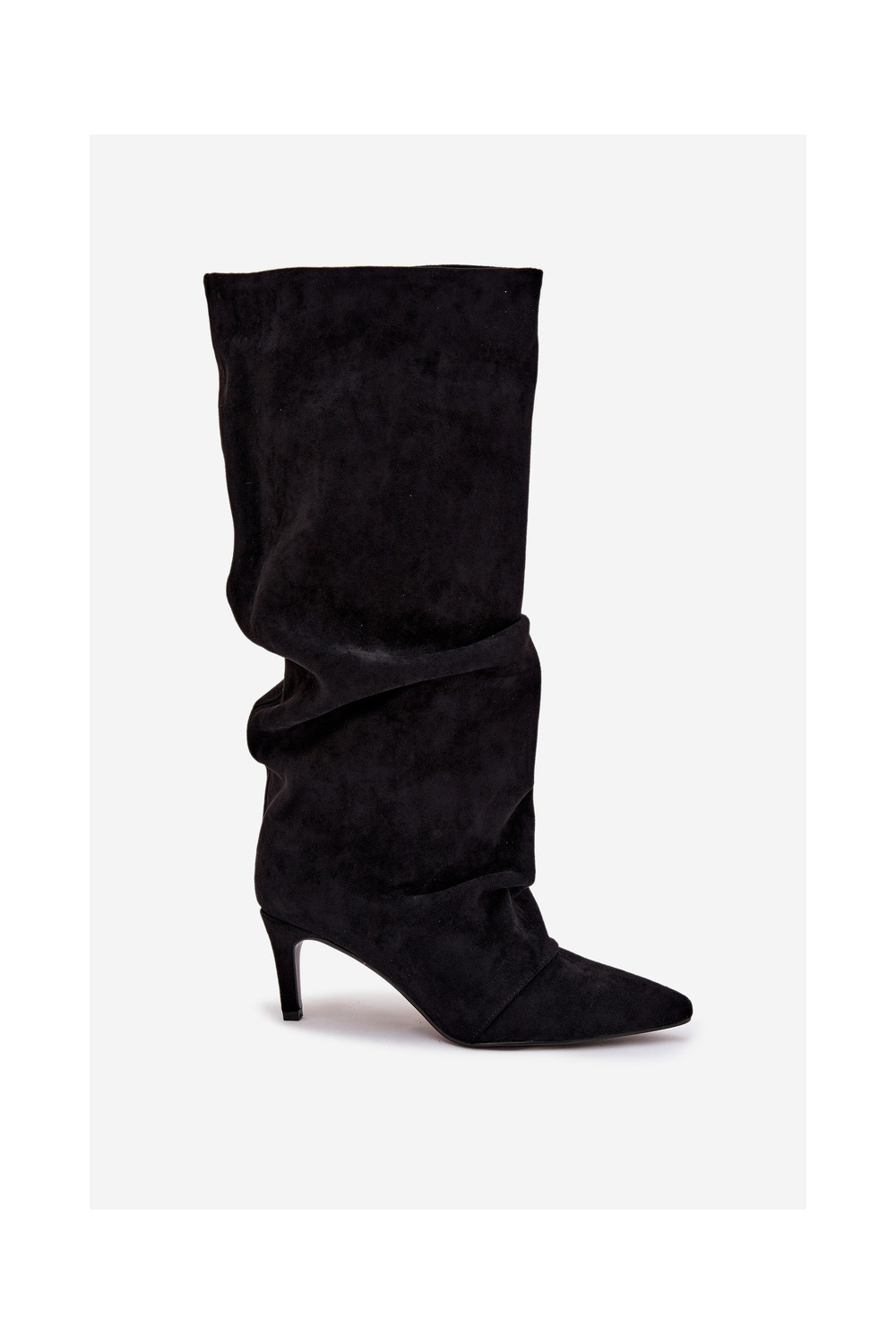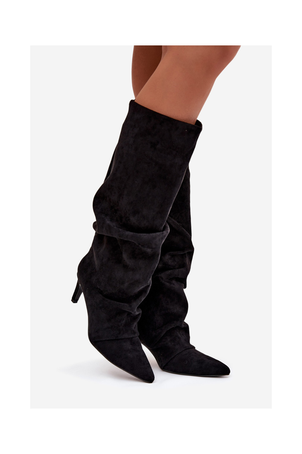 dlouhé boty s tenkými podpatky Z z eko semišeu zateplené Černé Mavella