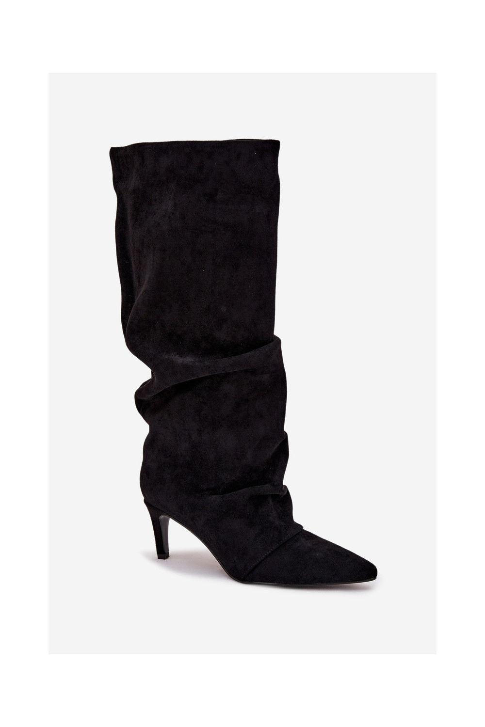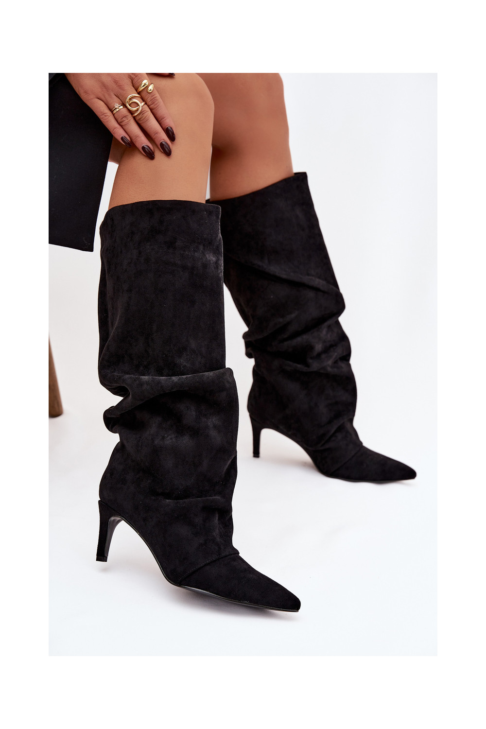 dlouhé boty s tenkými podpatky Z z eko semišeu zateplené Černé Mavella