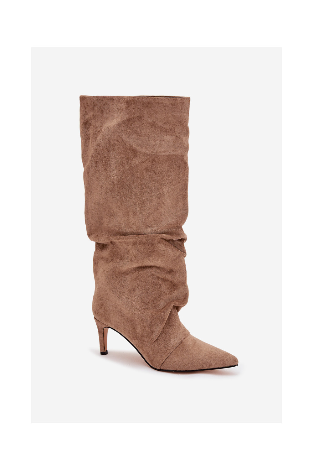 dlouhé boty s tenkými podpatky Z z eko semišeu zateplené béžové Mavella