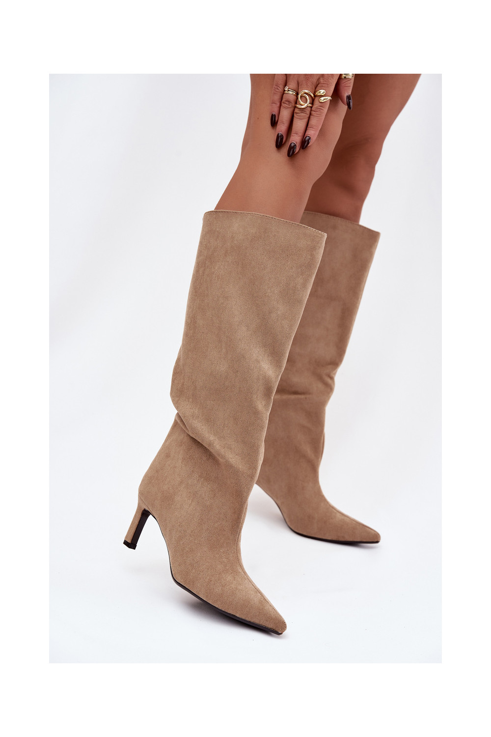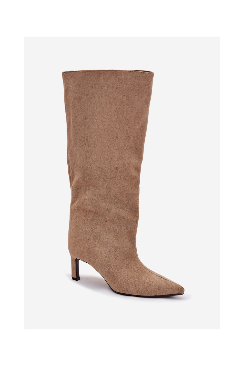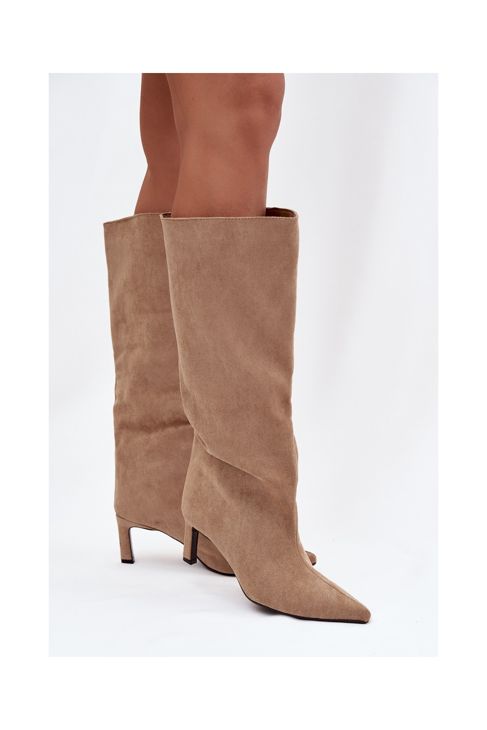 dámské dlouhé boty Z z eko semišeu Slip-on vzor s tenkými podpatky béžové Phelin