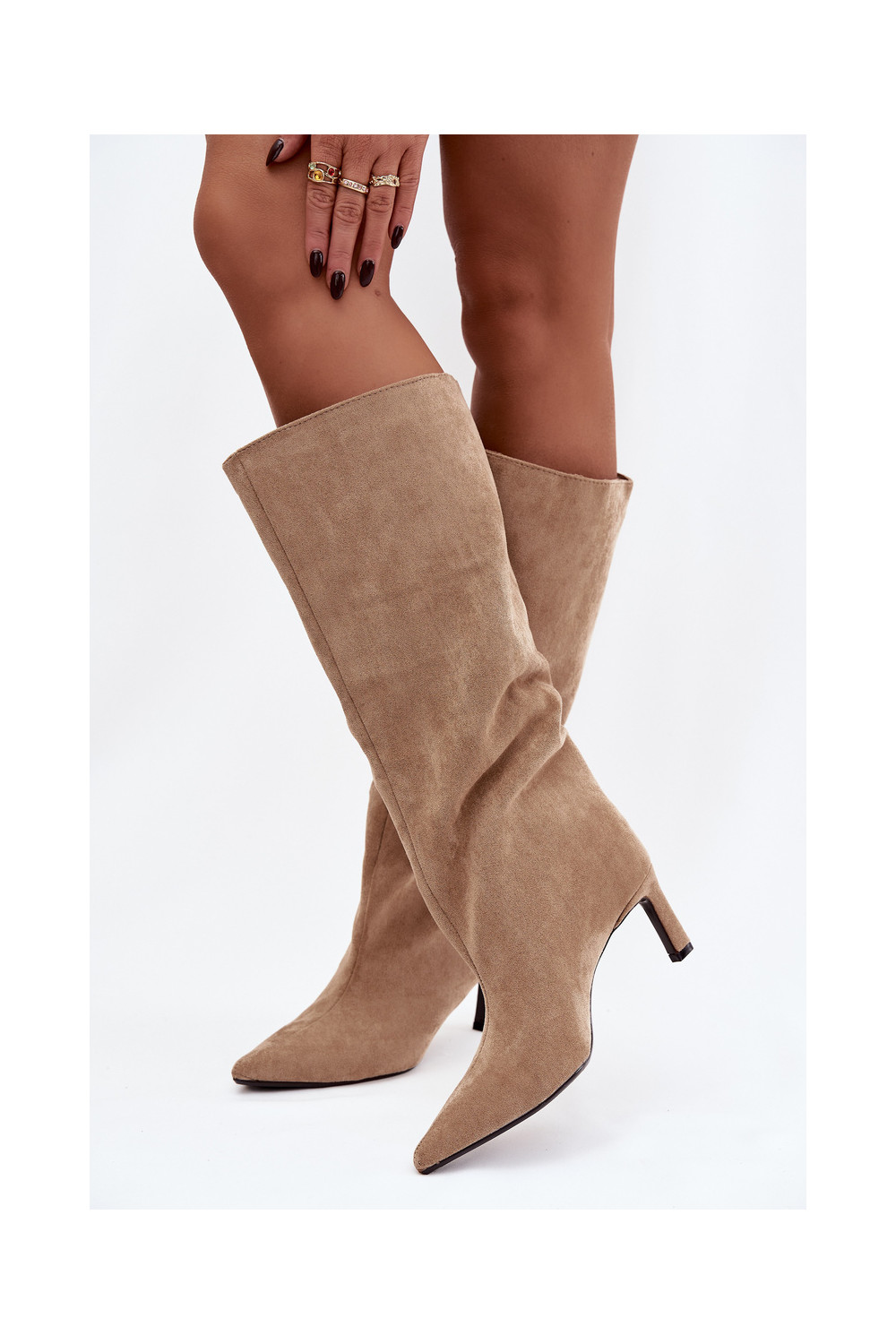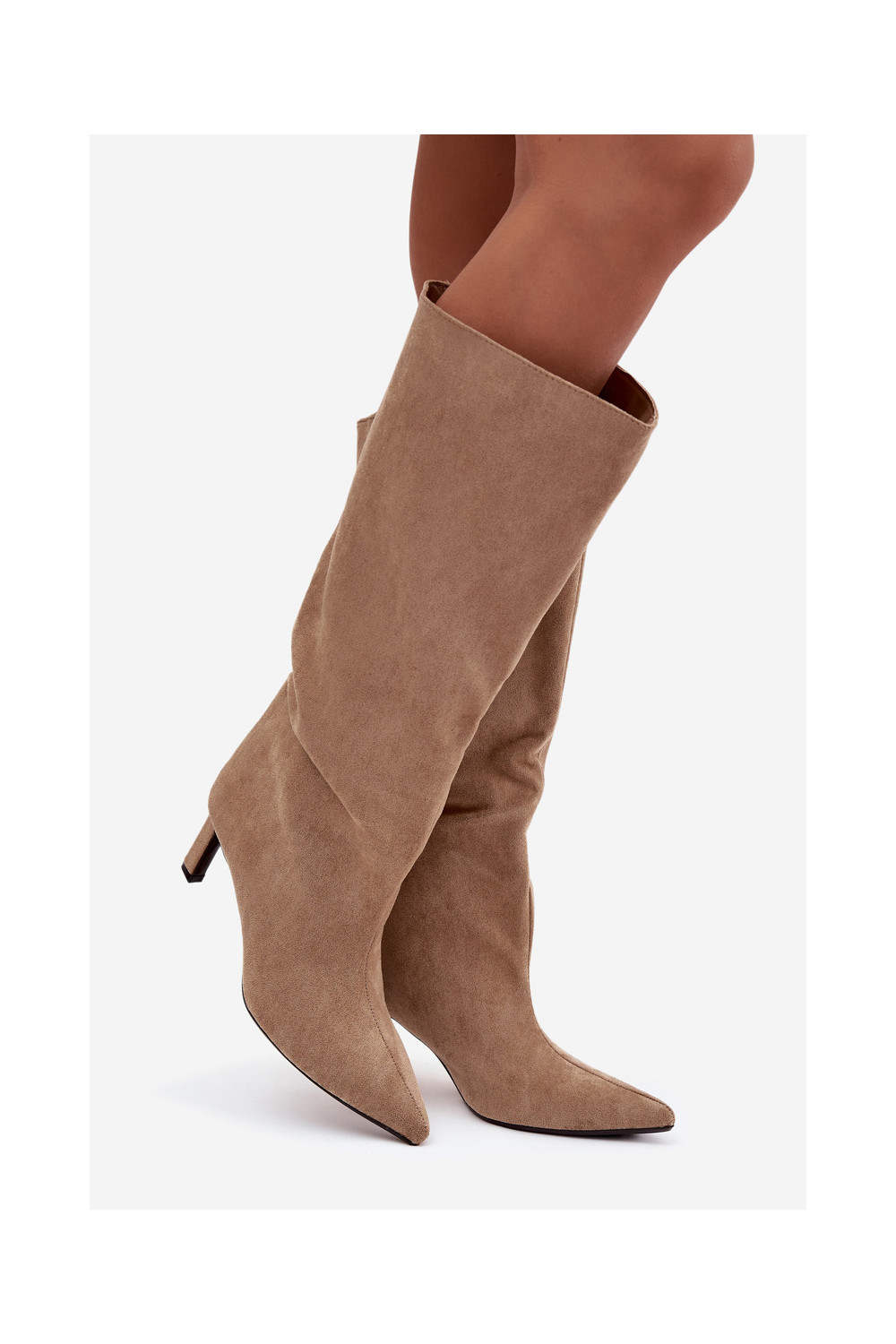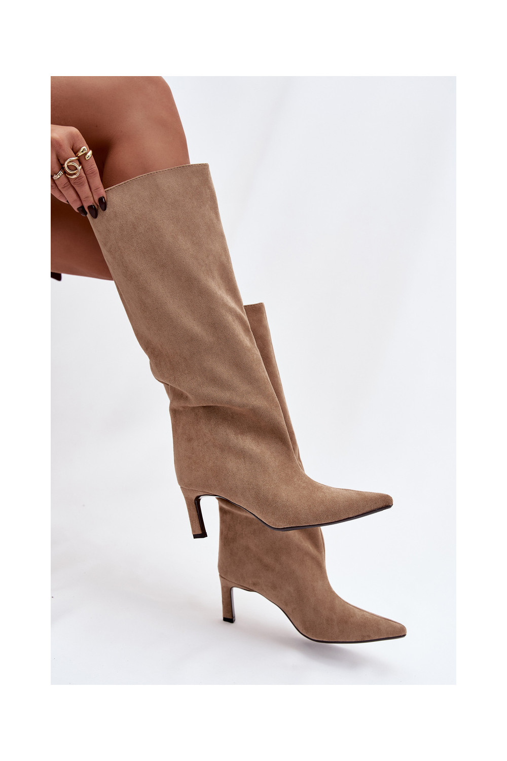 dámské dlouhé boty Z z eko semišeu Slip-on vzor s tenkými podpatky béžové Phelin