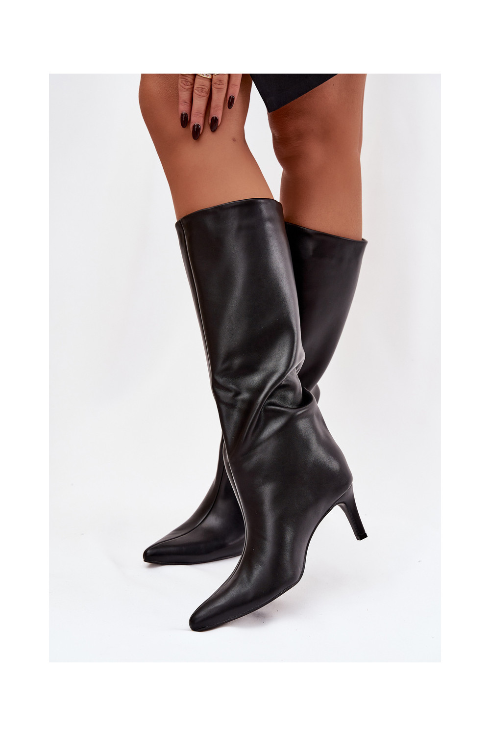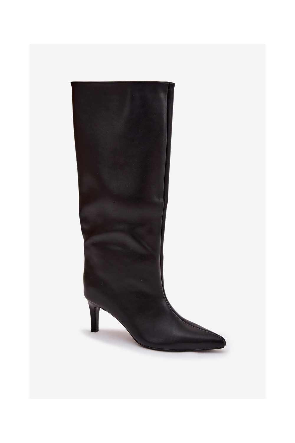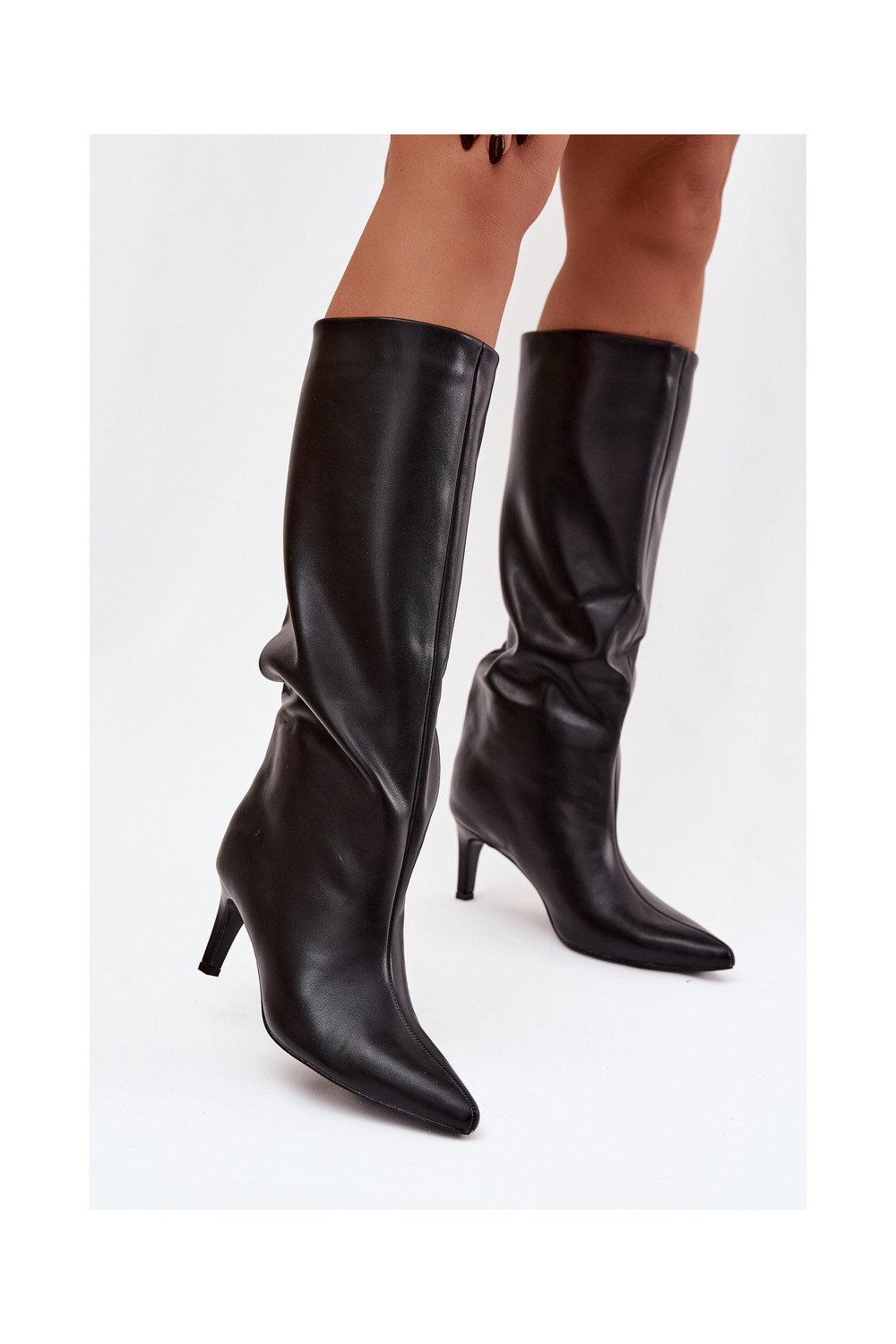 dámské dlouhé boty Slip-on vzor s tenkými podpatky Černé Olyvia
