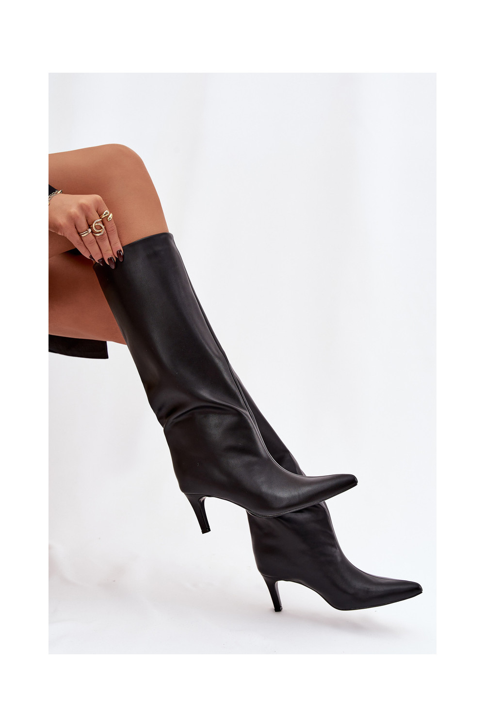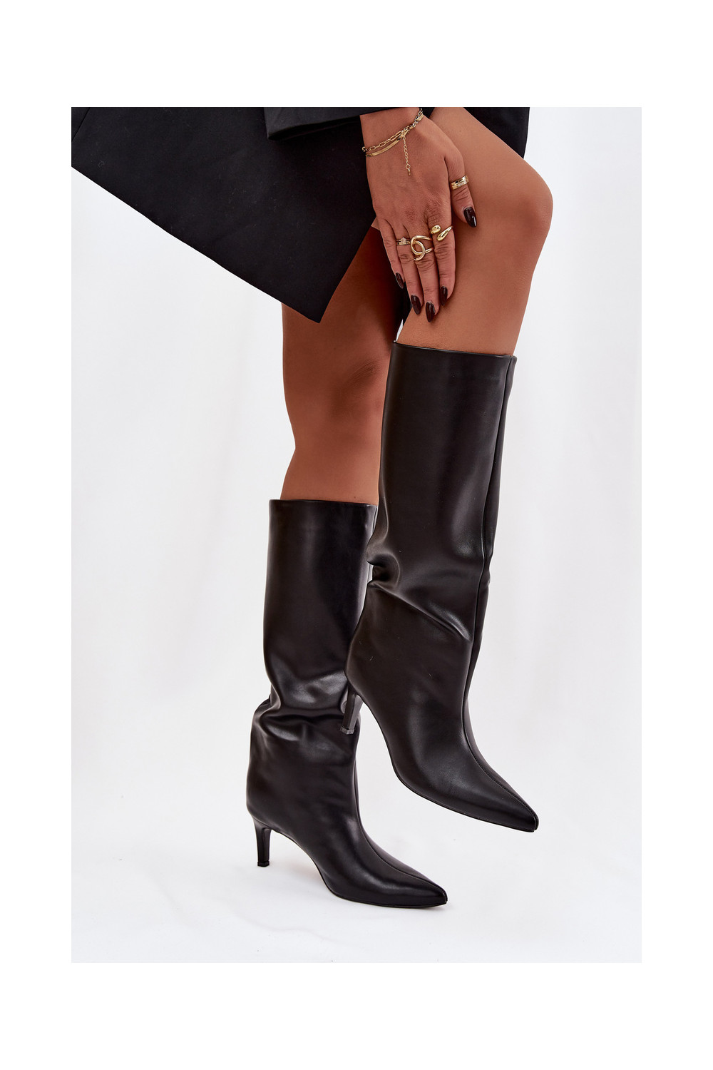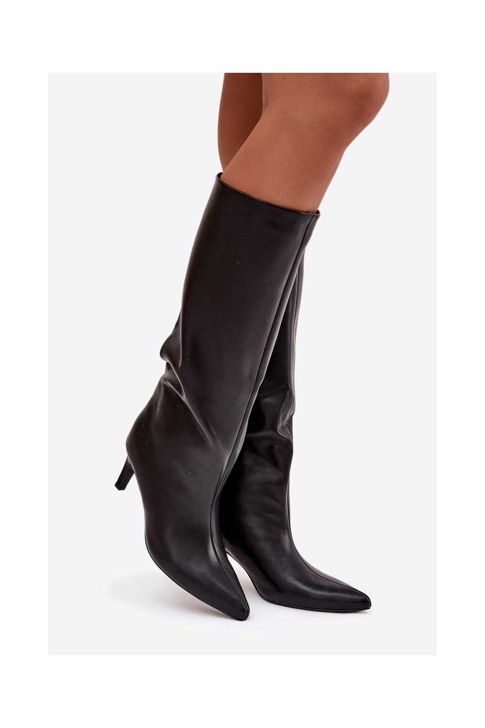 dámské dlouhé boty Slip-on vzor s tenkými podpatky Černé Olyvia