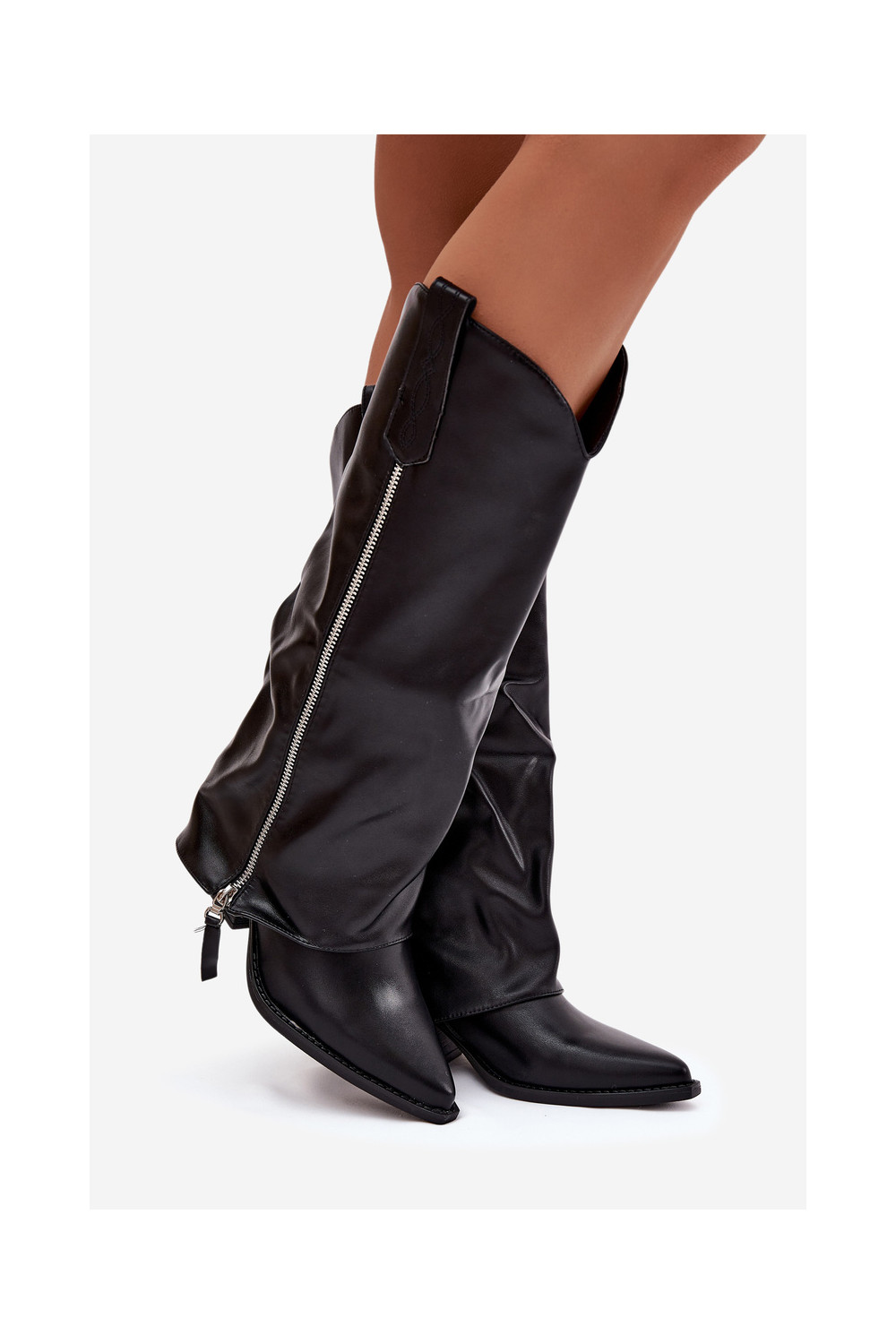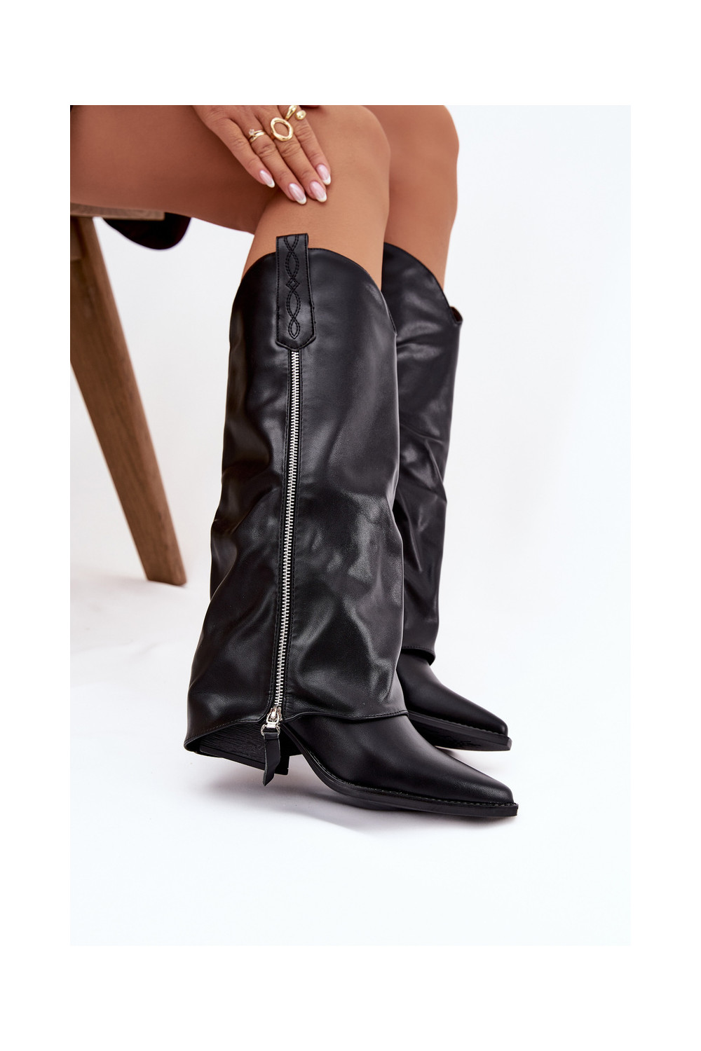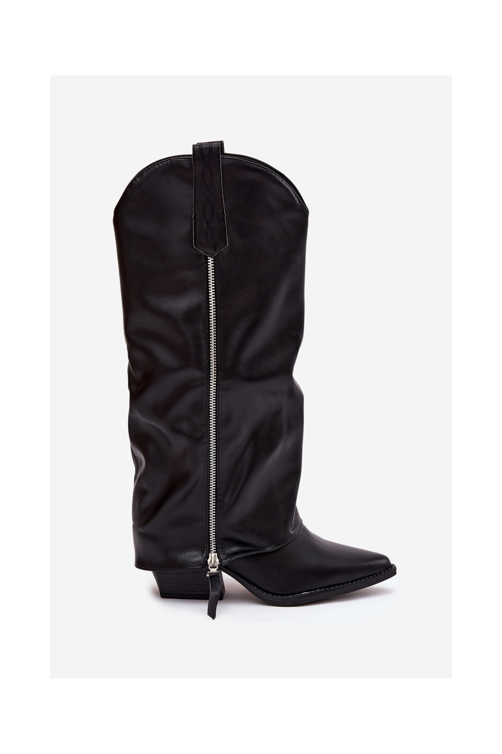 dlouhé boty kovbojský styl s podpatky z ekologické kůže Černé Palira