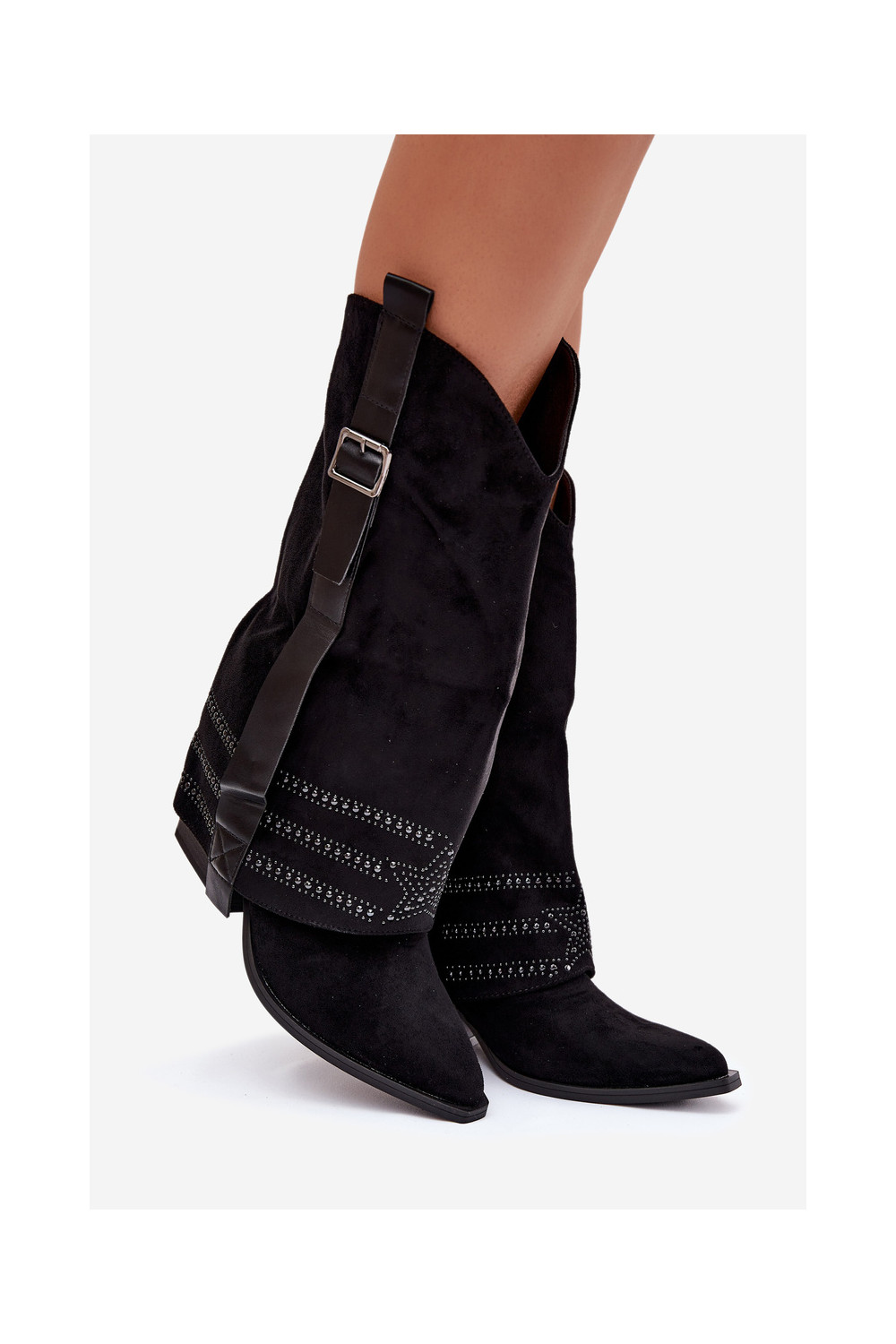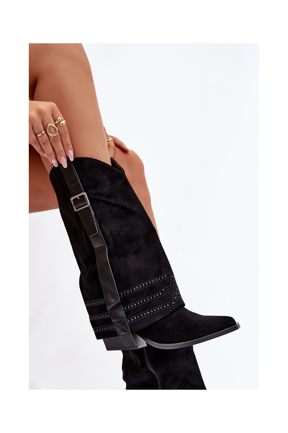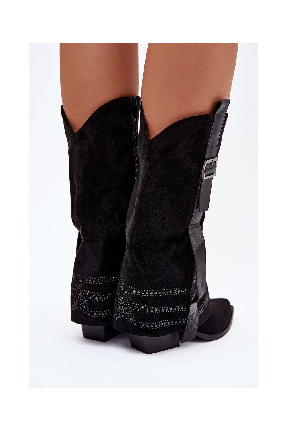 dlouhé boty kovbojský styl I s přezkami Černé Camilora