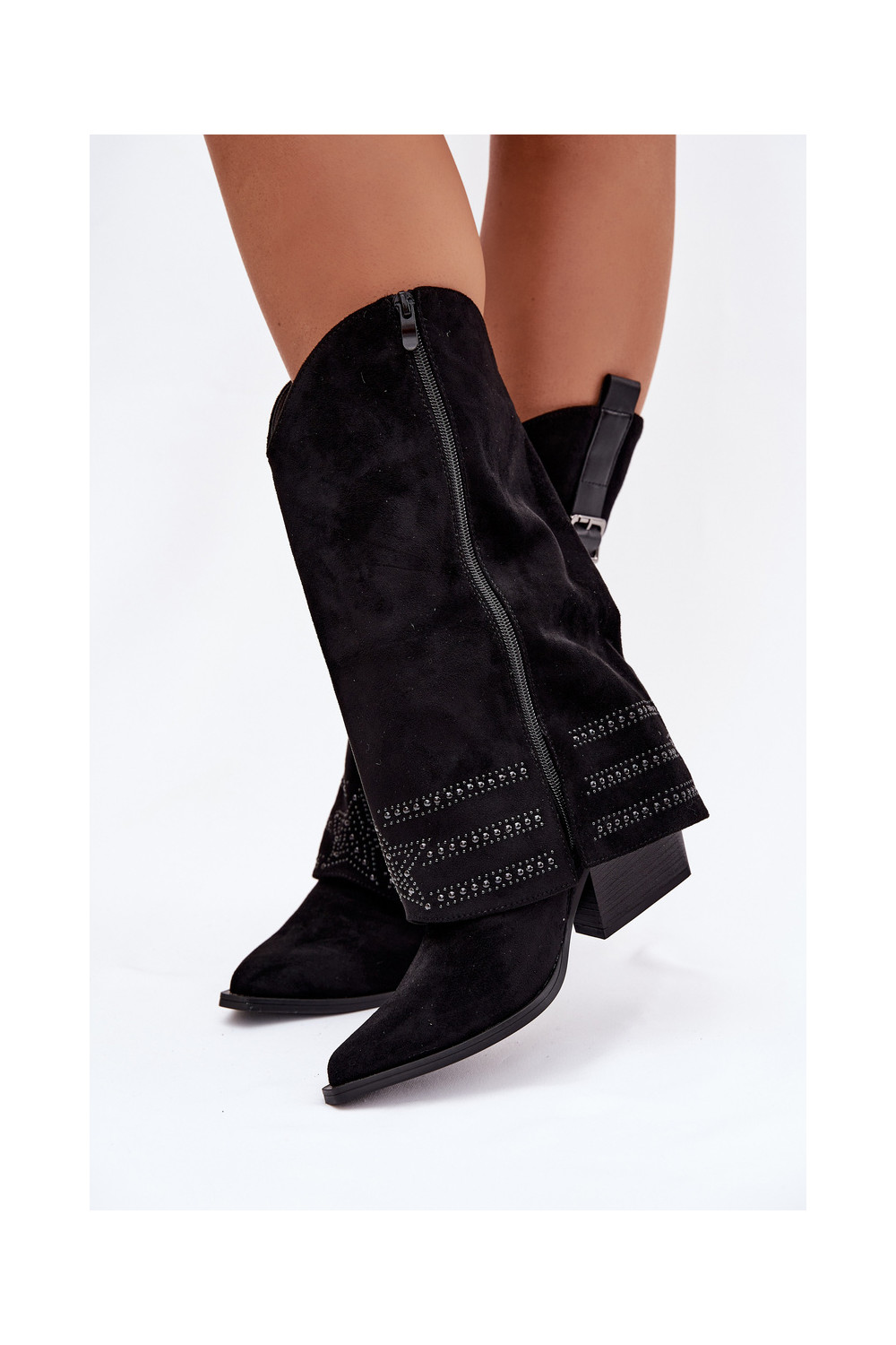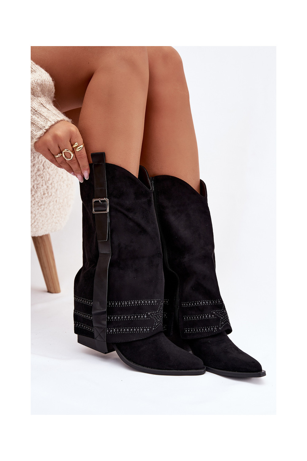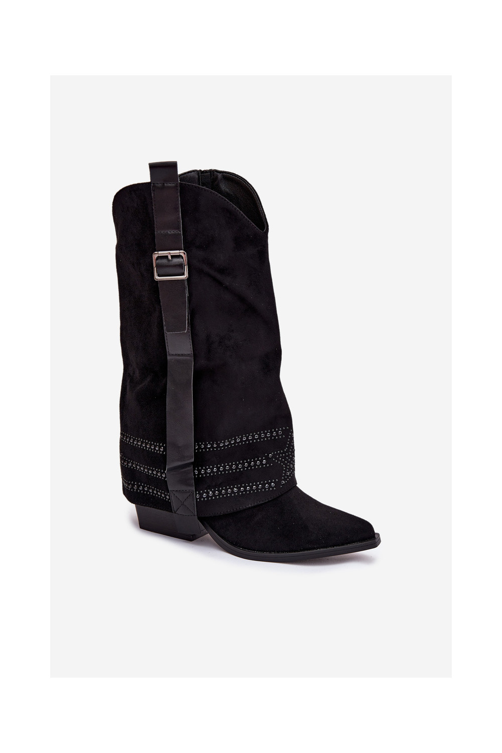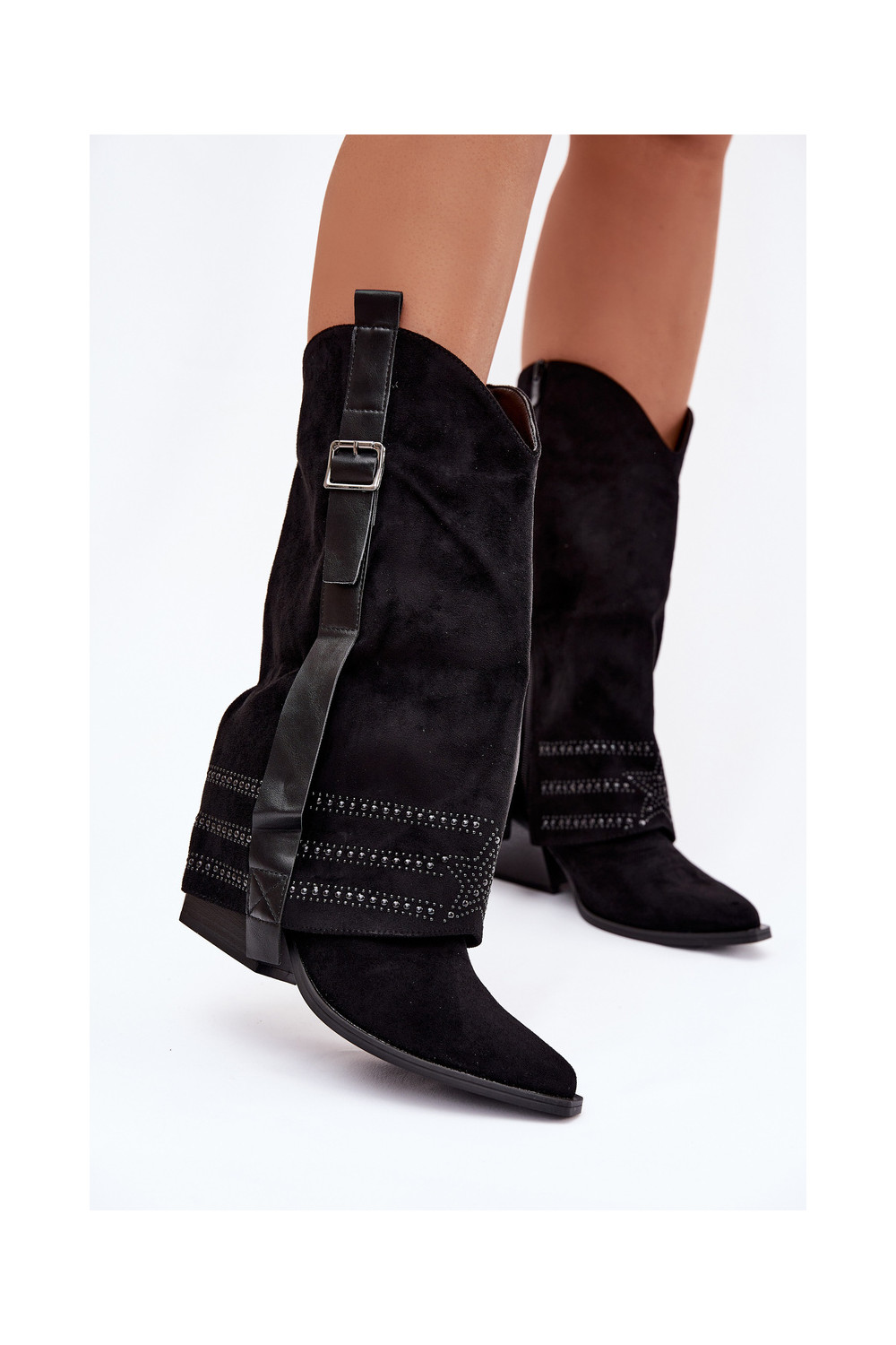 dlouhé boty kovbojský styl I s přezkami Černé Camilora