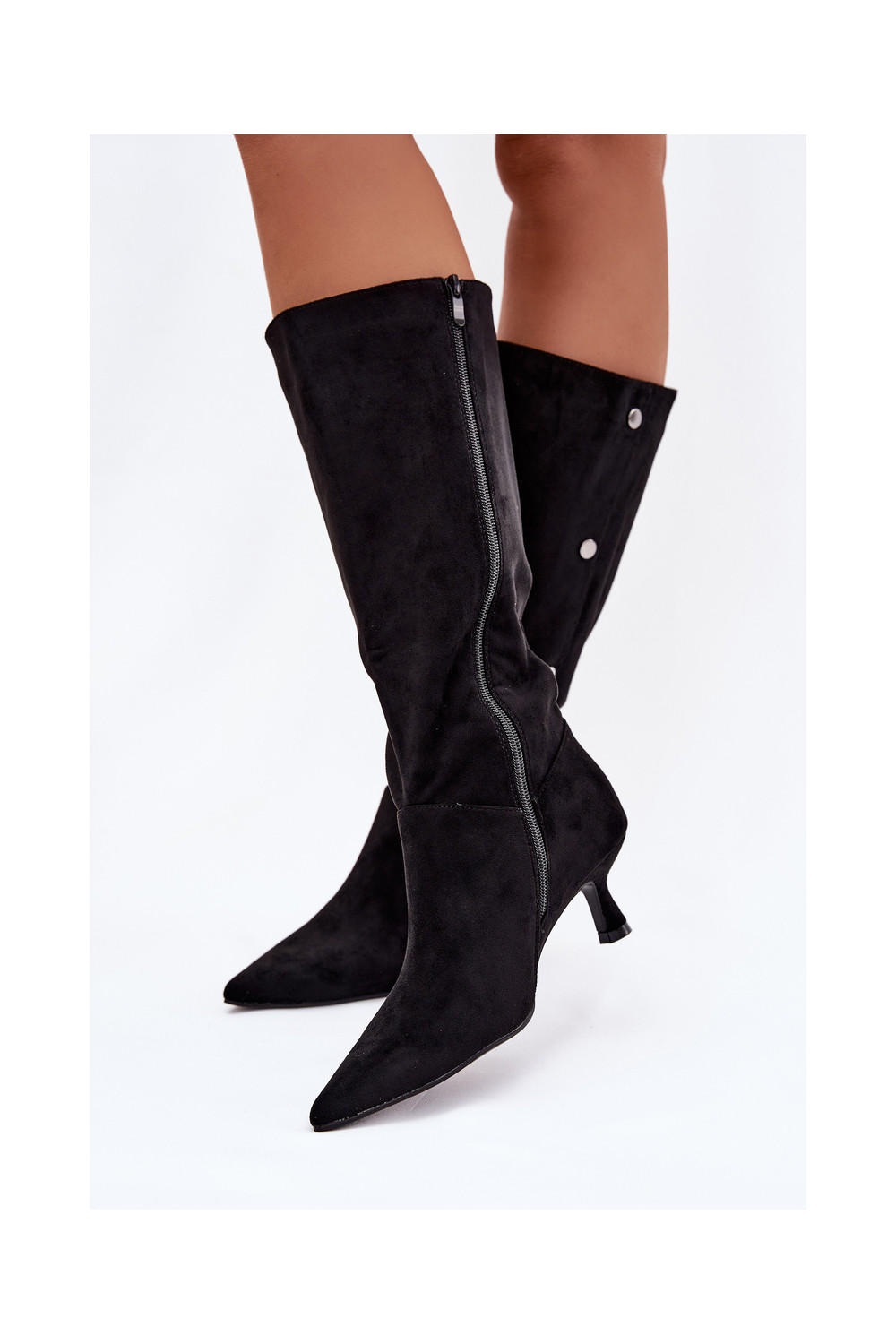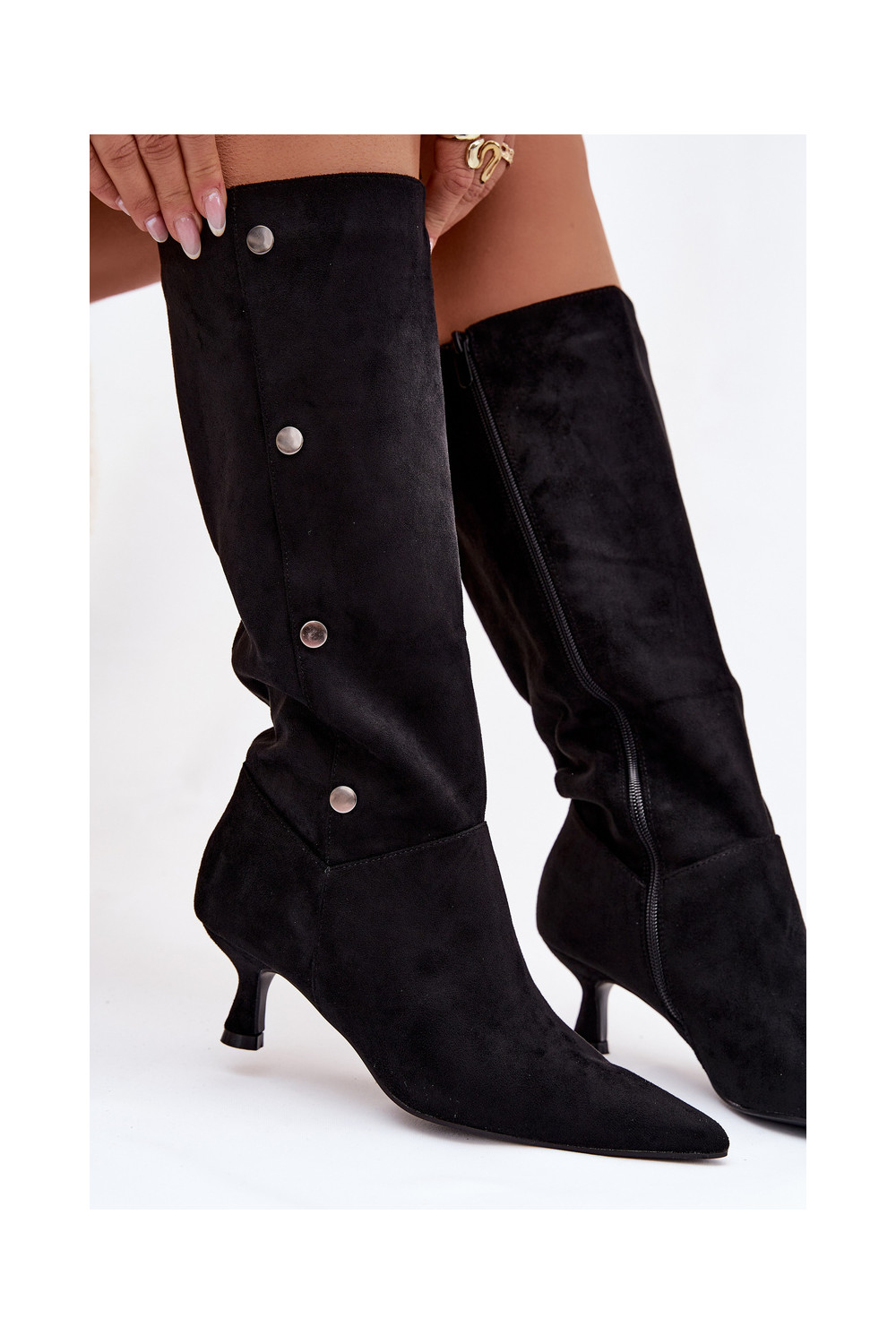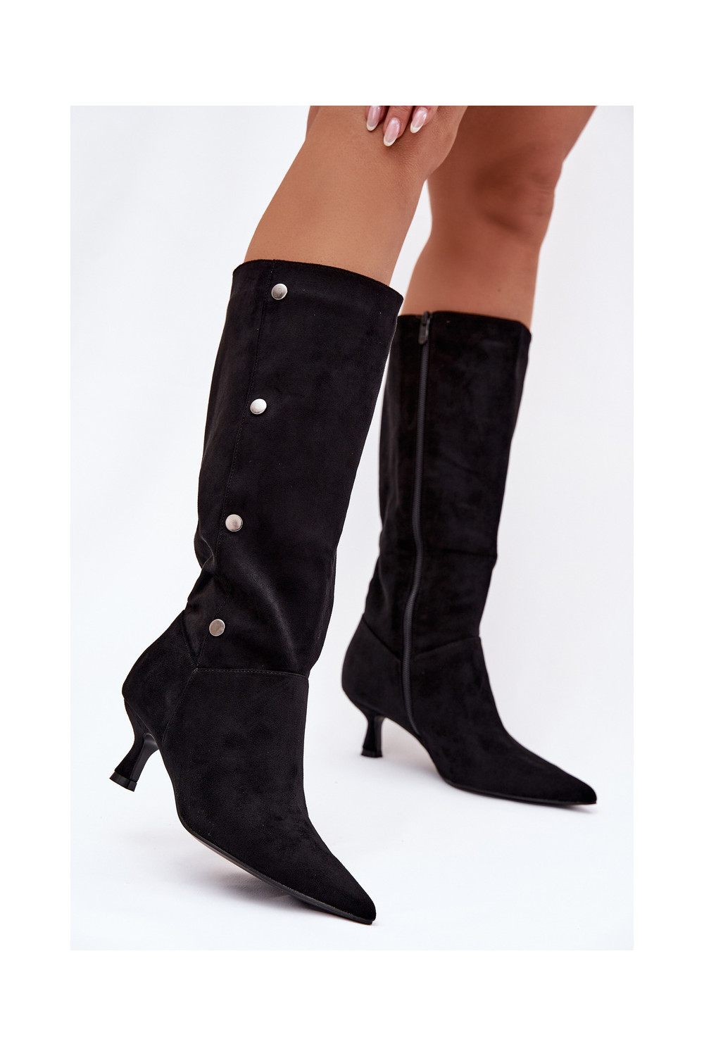 dámské dlouhé boty s podpatky Detalami Černé Hovelle