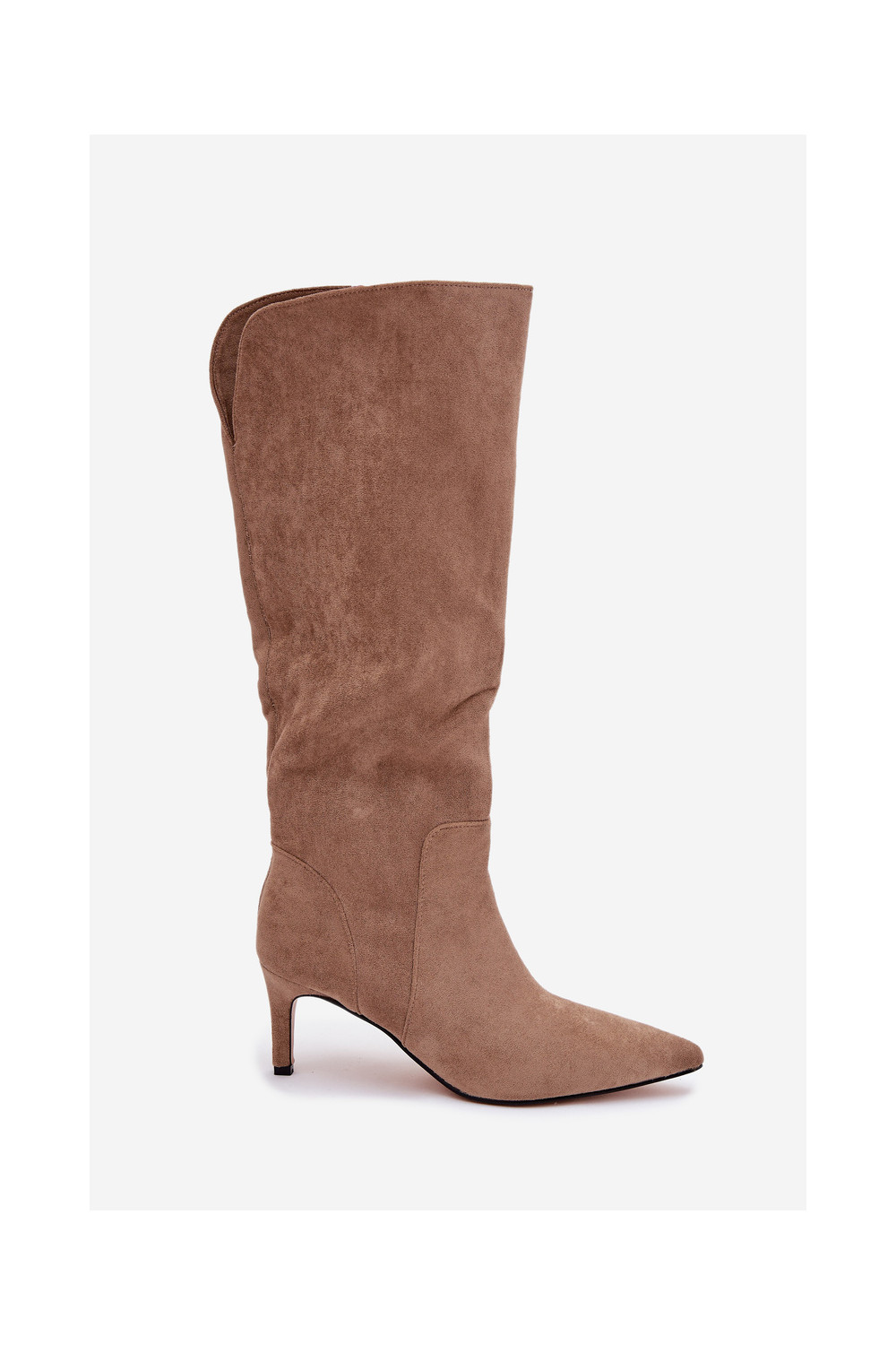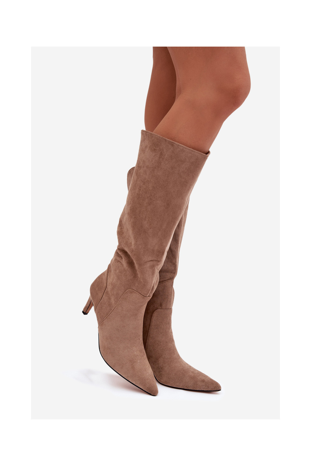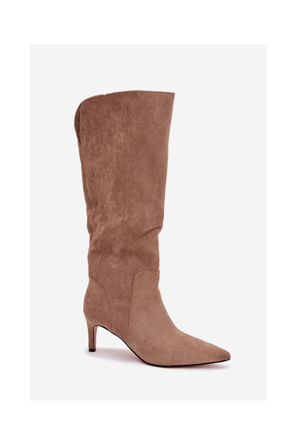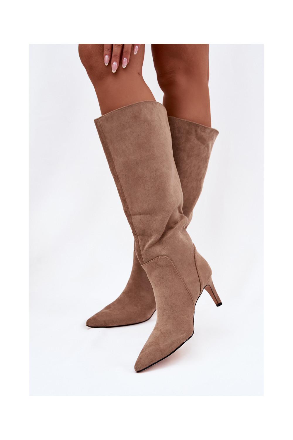 dámské dlouhé boty s tenkými podpatky zateplené Z z eko semišeu béžové Arelisse