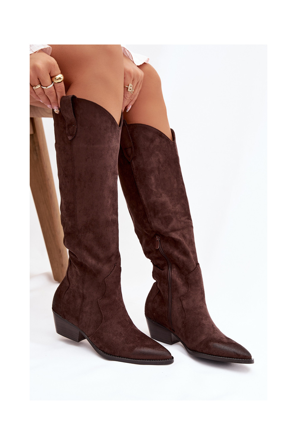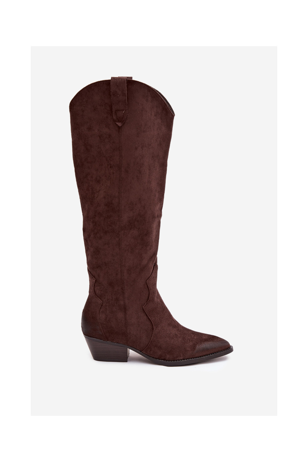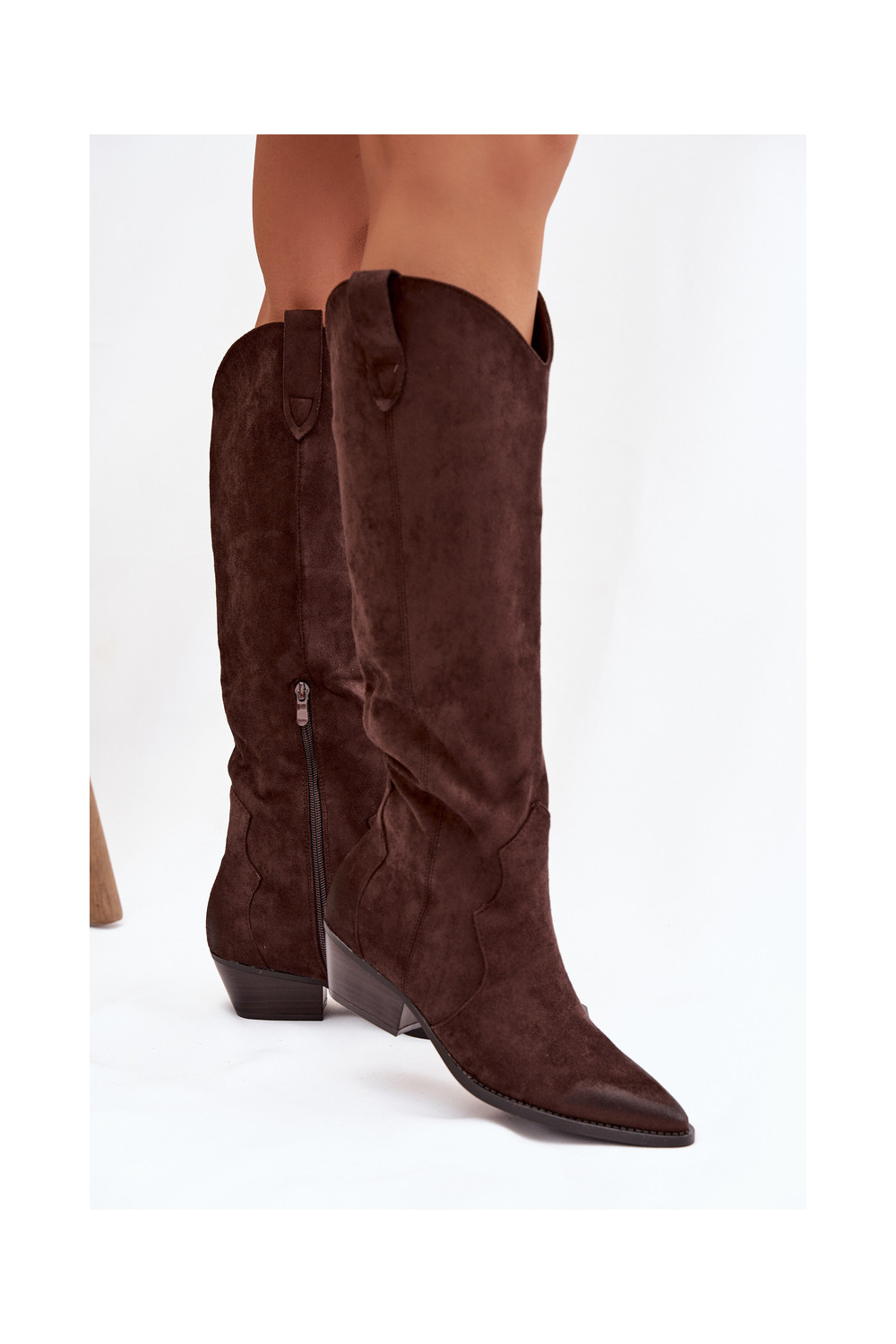 z eko semišeowe dlouhé boty kovbojský styl  s podpatky Czekoladowe Jenaya