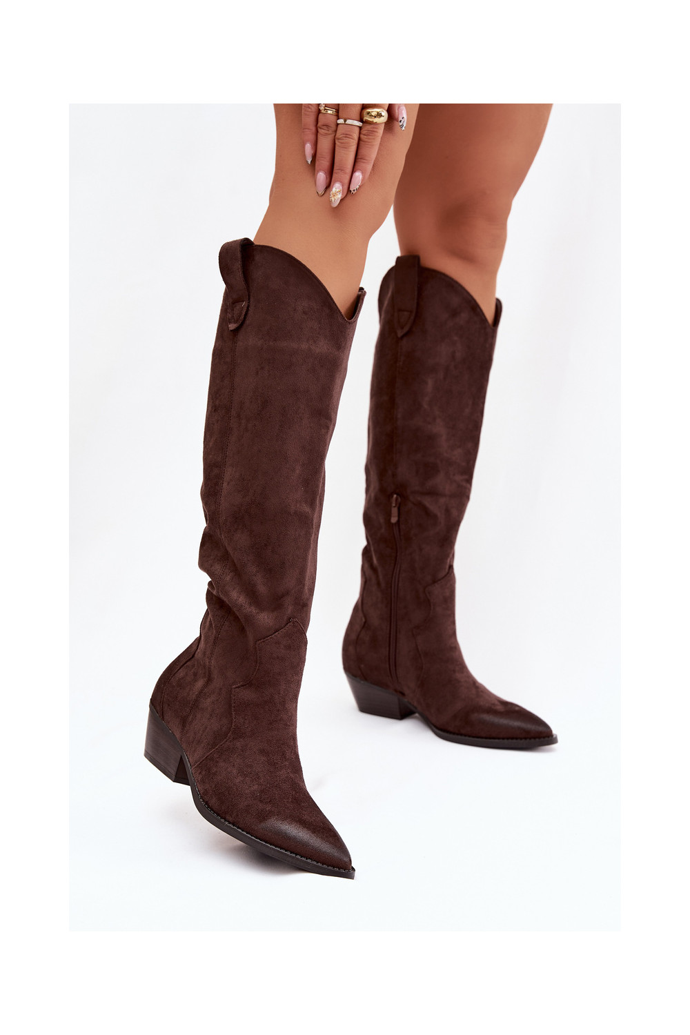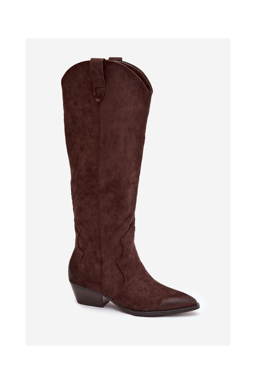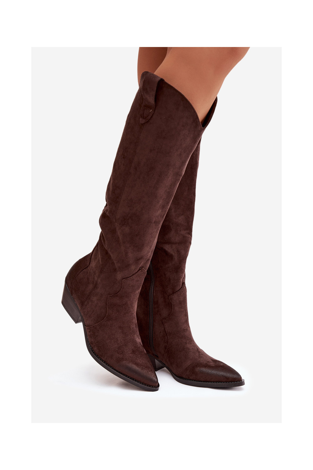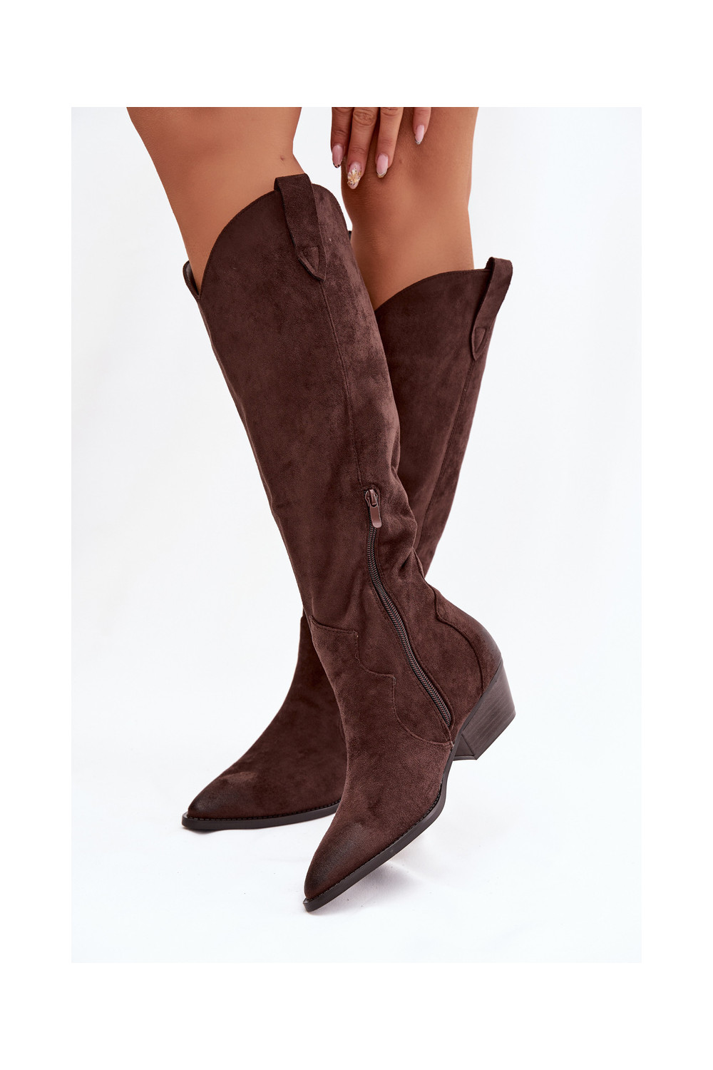 z eko semišeowe dlouhé boty kovbojský styl  s podpatky Czekoladowe Jenaya
