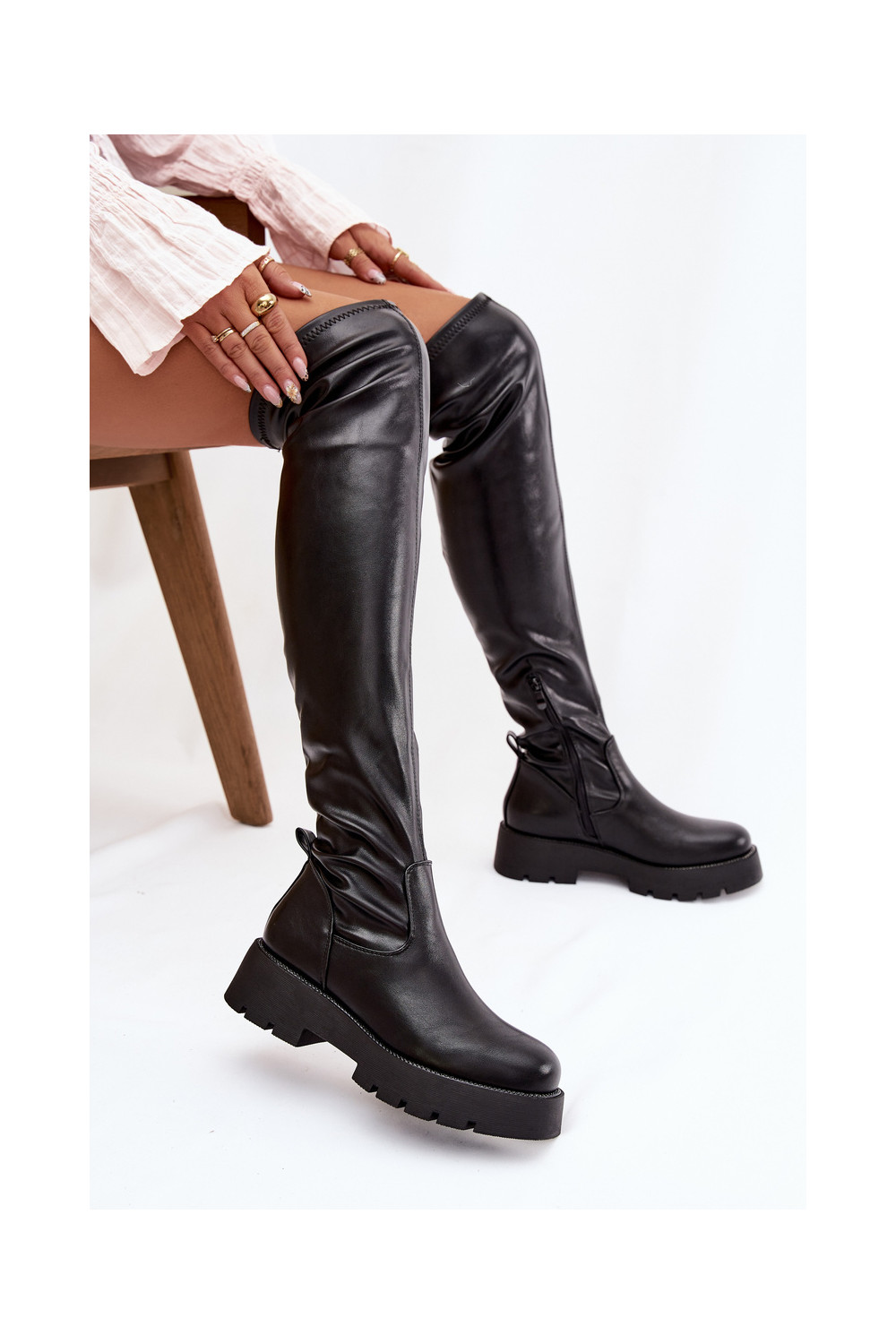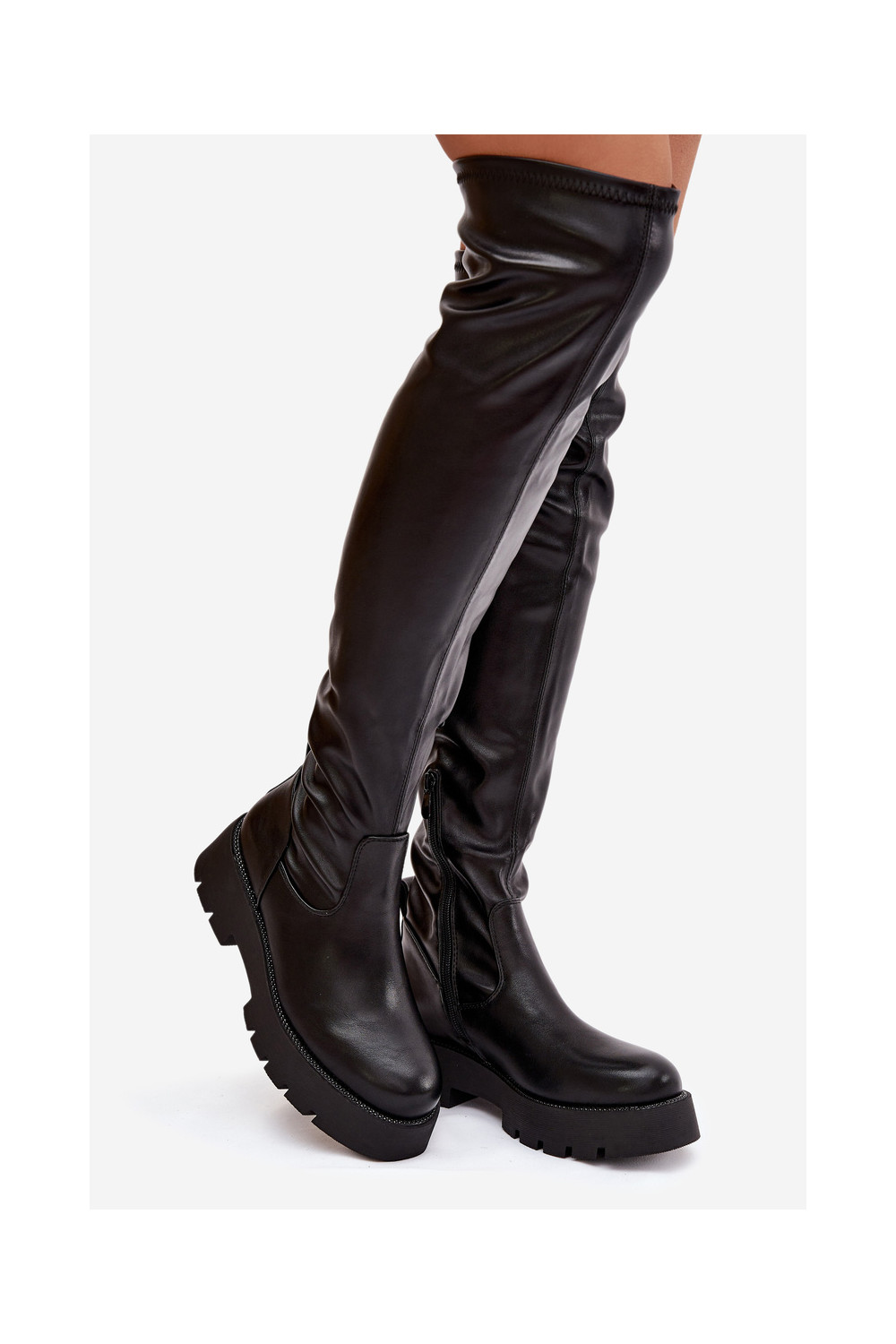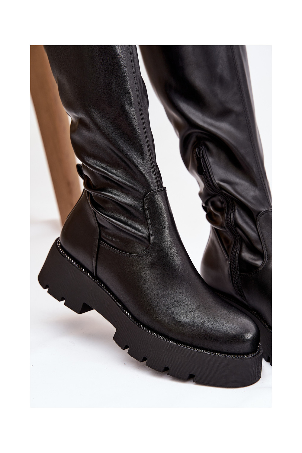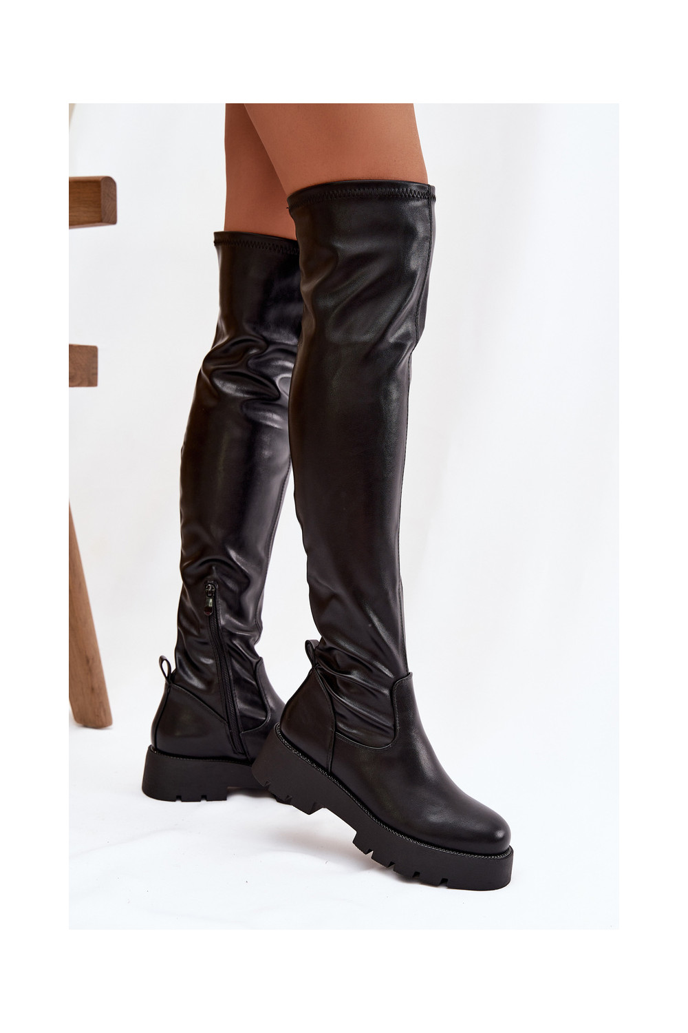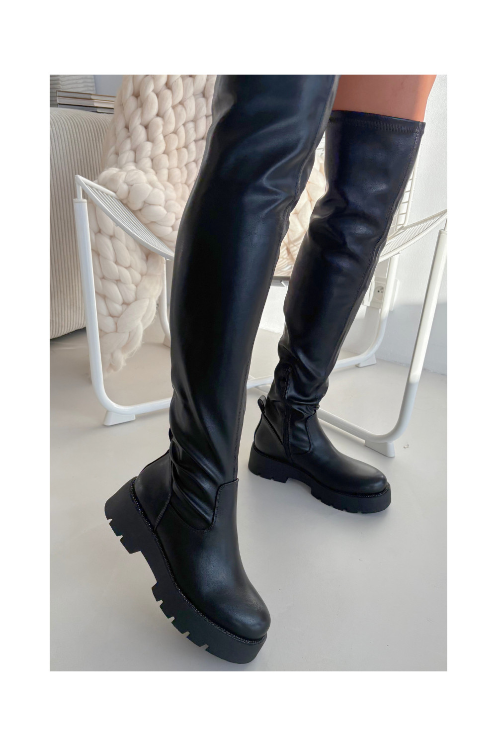 dlouhé boty nad kolena s třpytivými očky Černé Rivessa