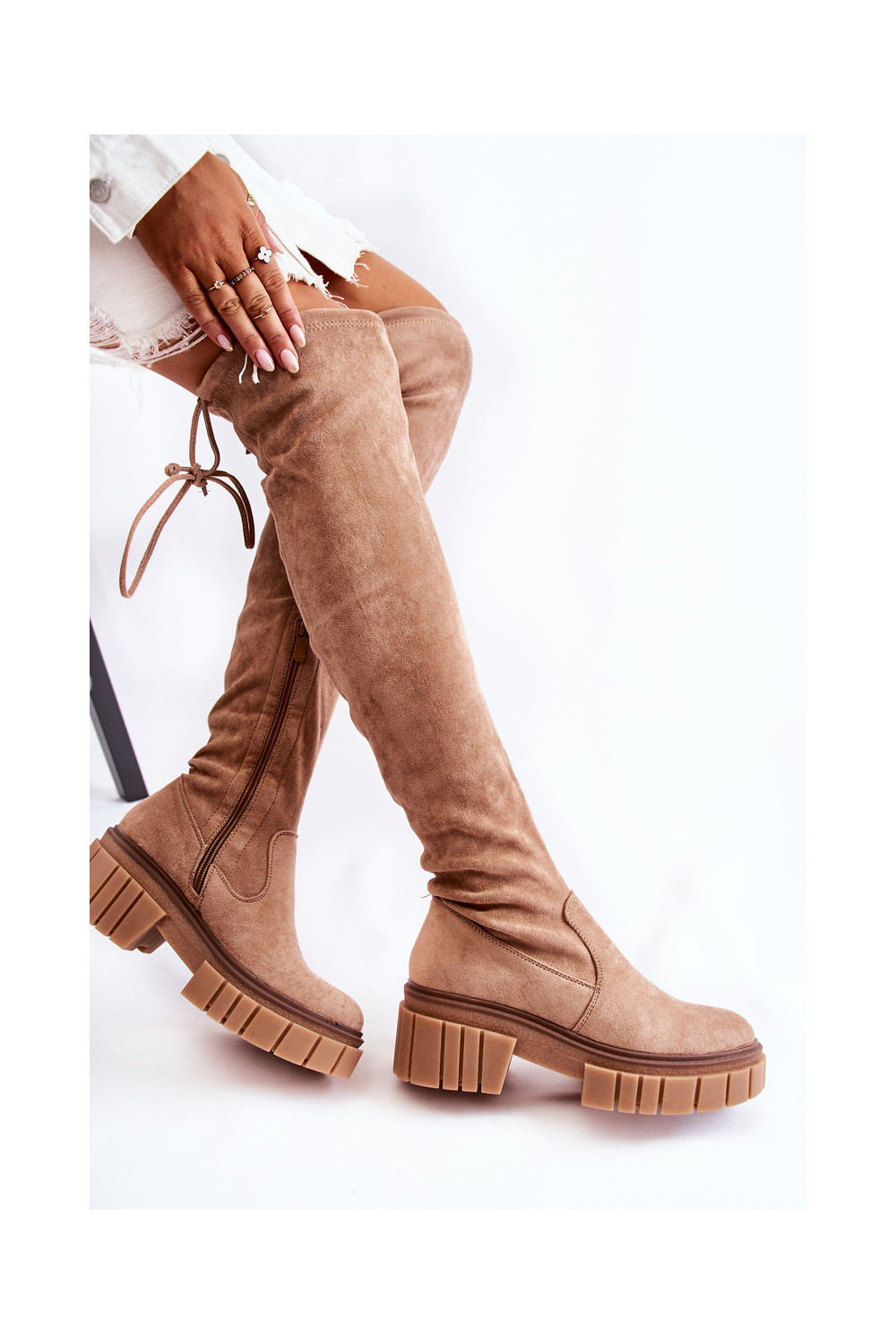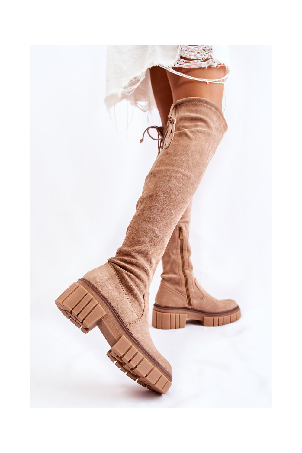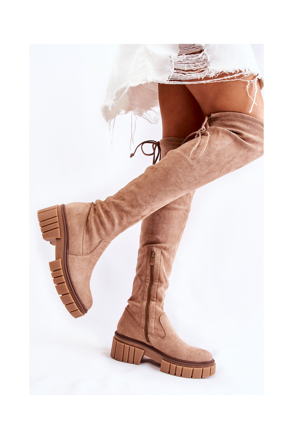 ze semiše dlouhé boty nad kolena béžové Cheera